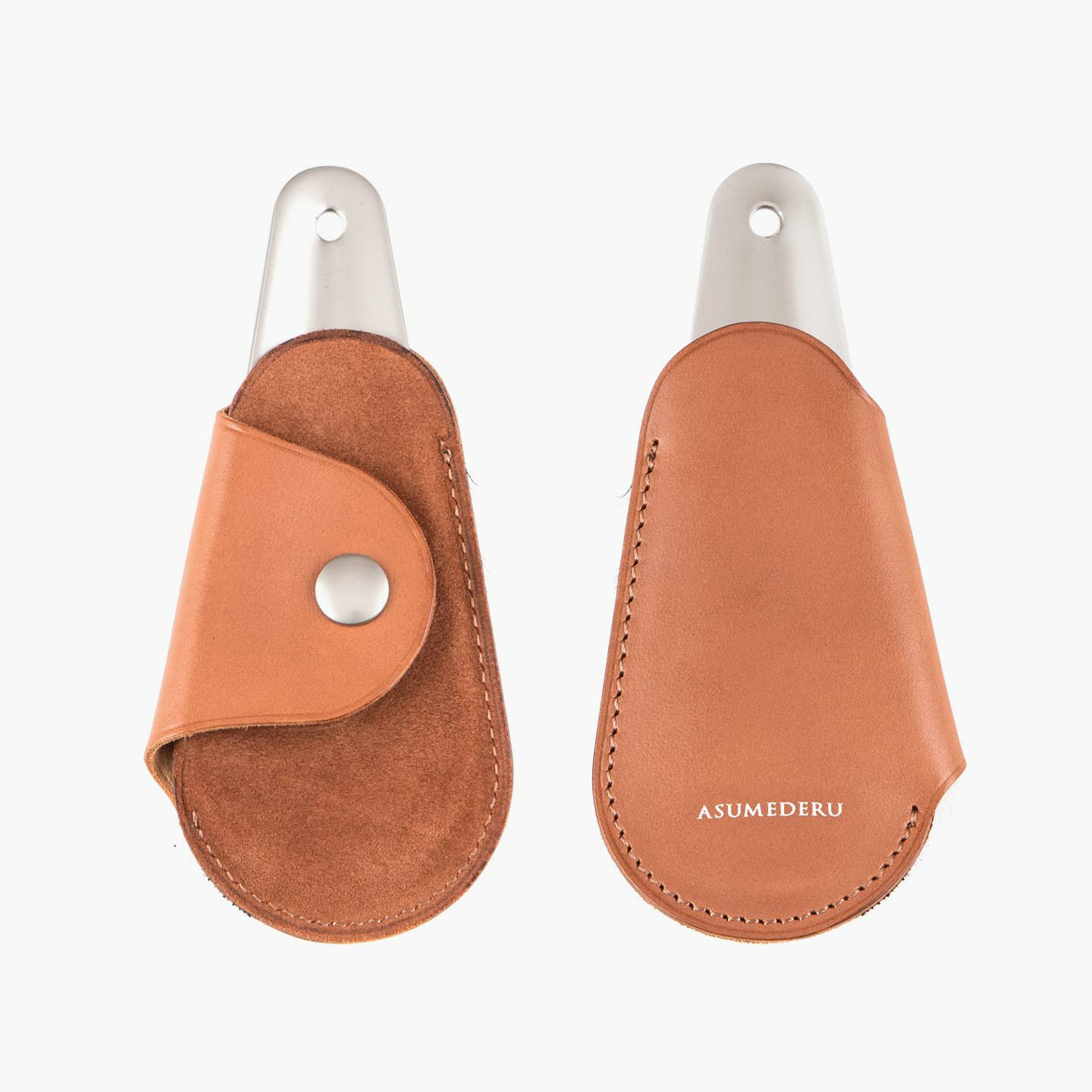自由で独創的なアイデアを実践し、革製品の常識を変える挑戦を続けているブランド『ASUMEDERU』のシューホーン(No.3)。“牛革の王様”とも言われるカーフレザーの希少な最高級素材「ベビーカーフ」を、脱着式カバーとして付属した贅沢なアイテム。携帯にも最適なコンパクトなサイズ感で、洒落た佇まいが大人の小粋さも演出でき、5カラーから選んで自分用としても贈り物としても活躍してくれる。
