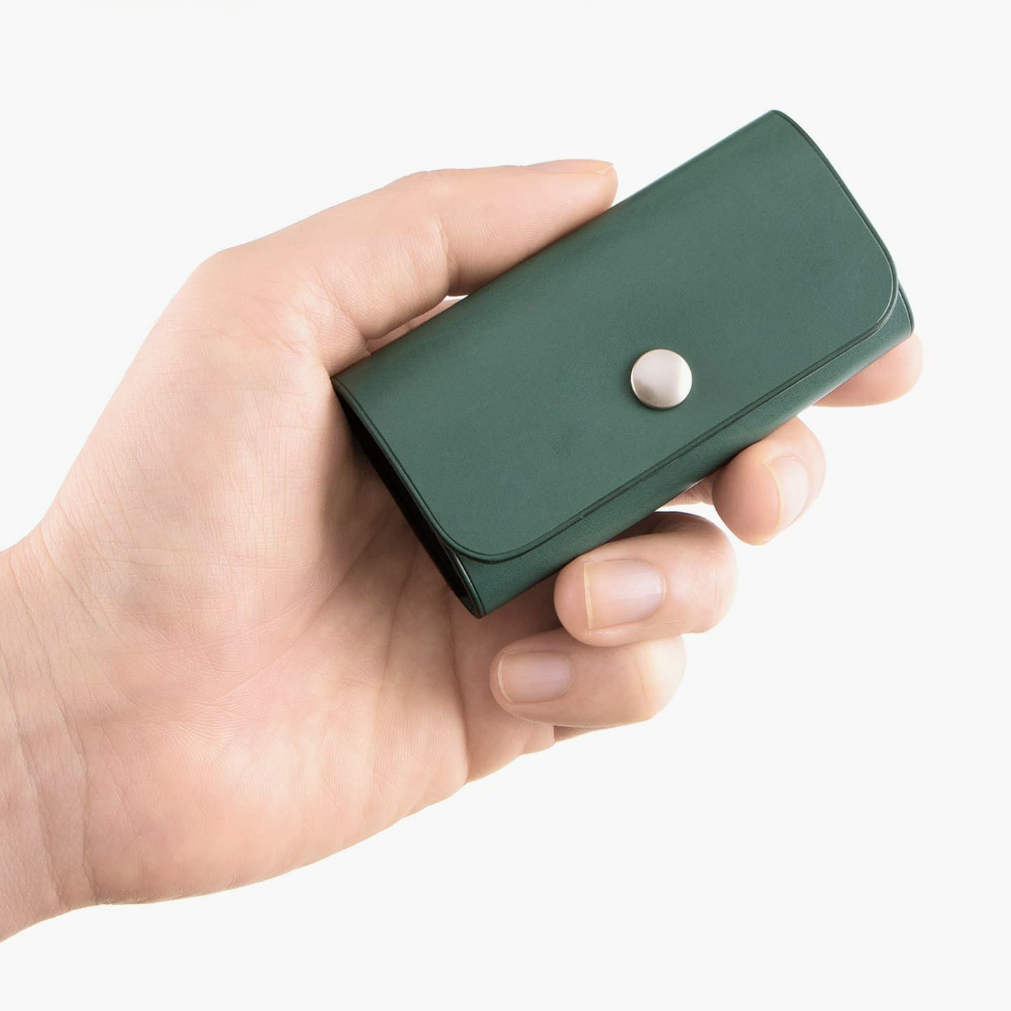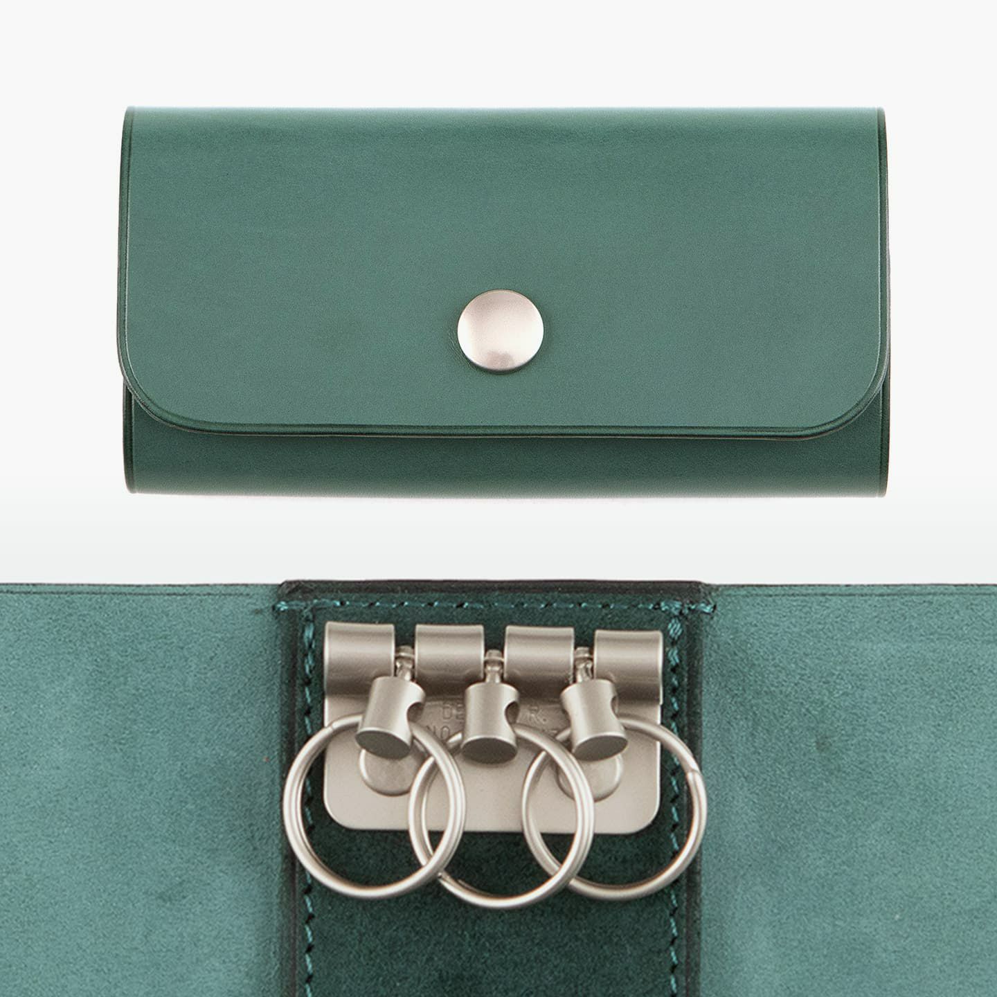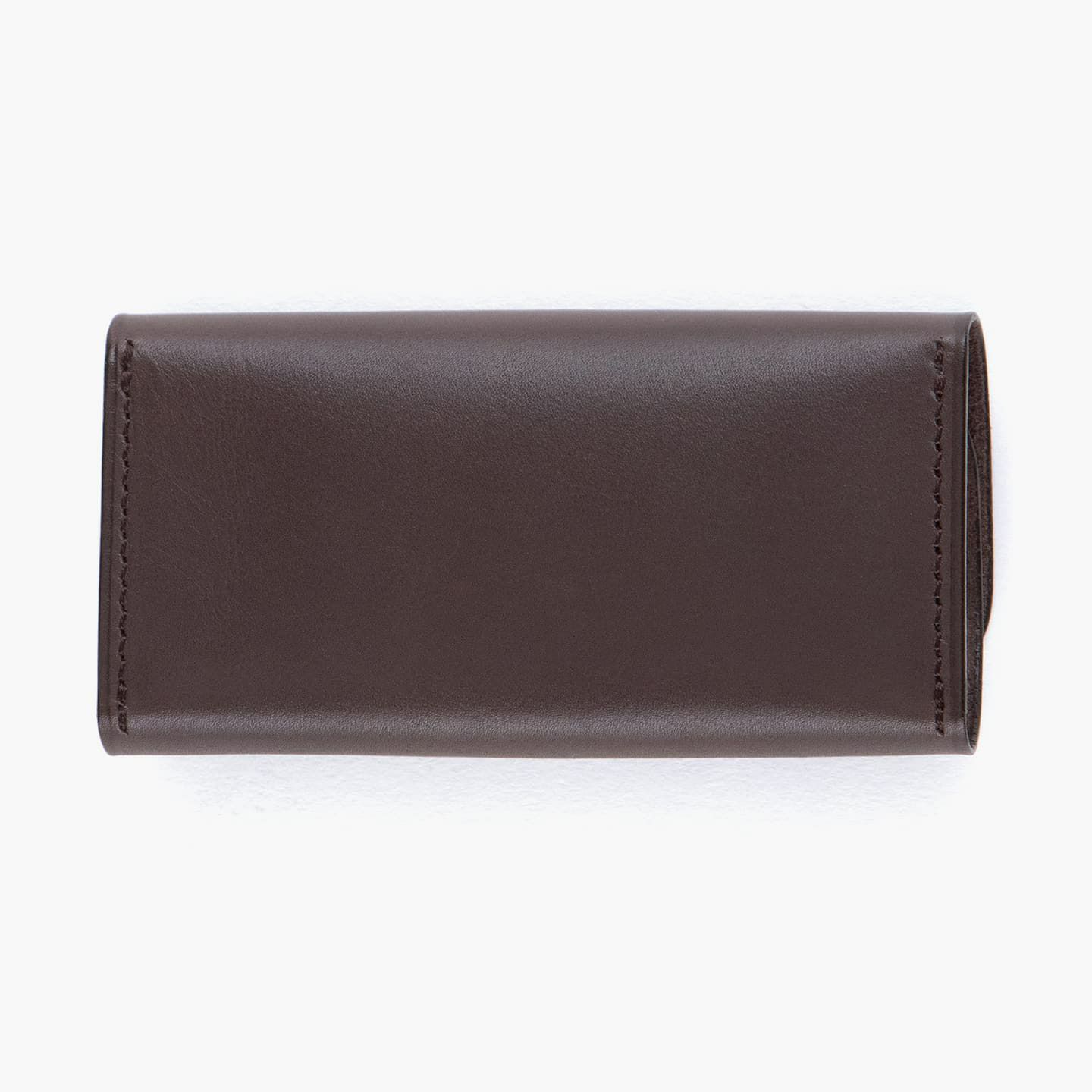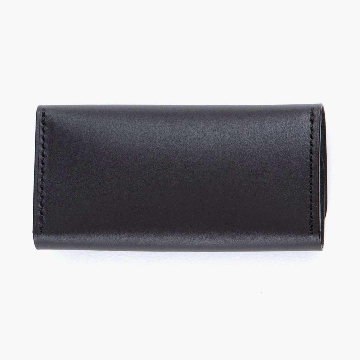 繊細なアーチカットが施された「ベビーカーフ」に、ホックをポイントにしたデザイン。キーケースのセオリーを継承しながらも、洗練された細身のシルエットに仕上げています。可能な限りパーツを分割せず、革が繋がるように設計し、滑らかな質感・しなりが感じられる丁寧な折りによる造形。裏面の上下のみに施された外装の縫製は、外装を縁取るように念入れされたラインとともに、上質なアクセントになっています。