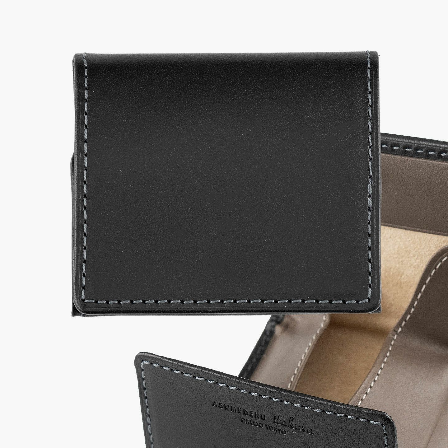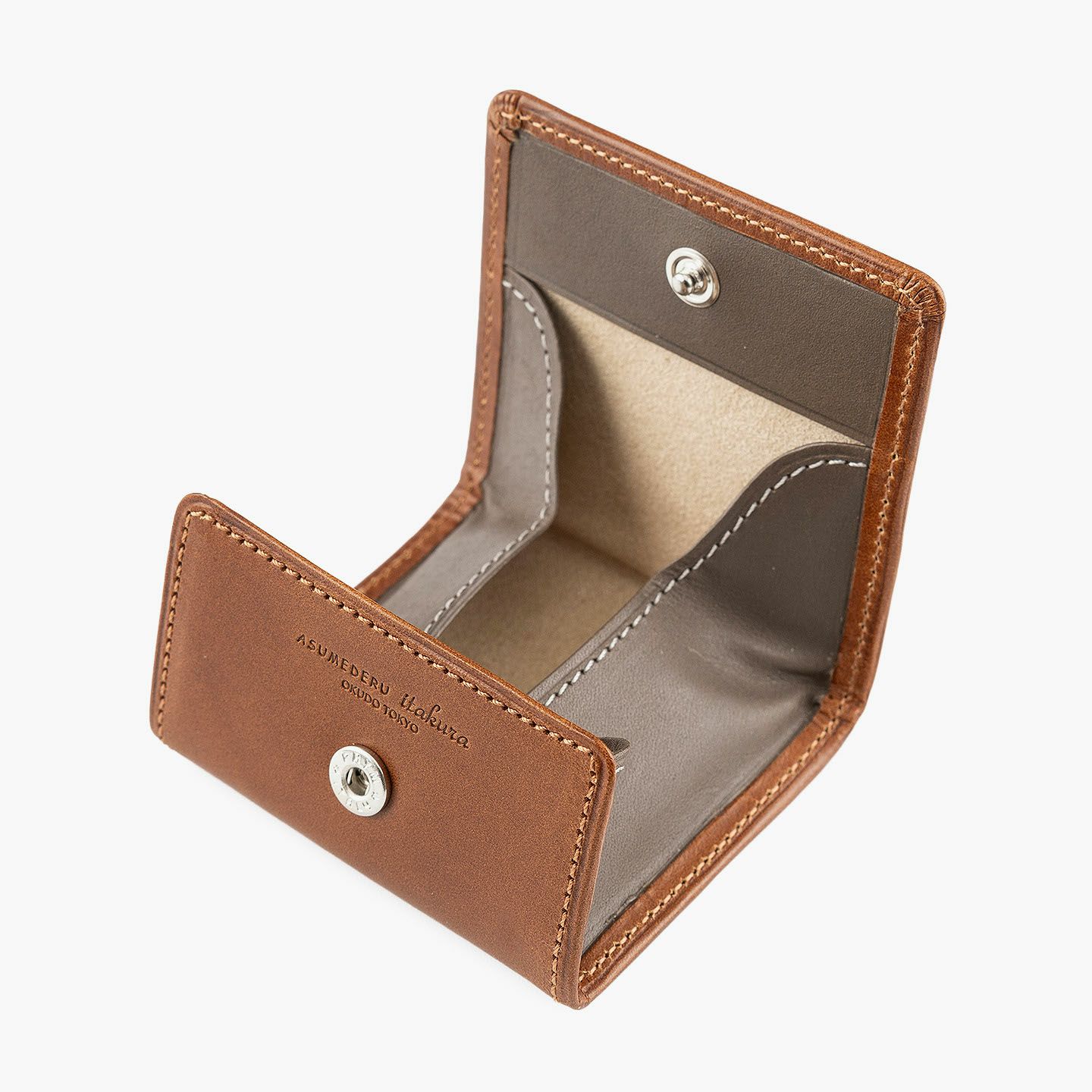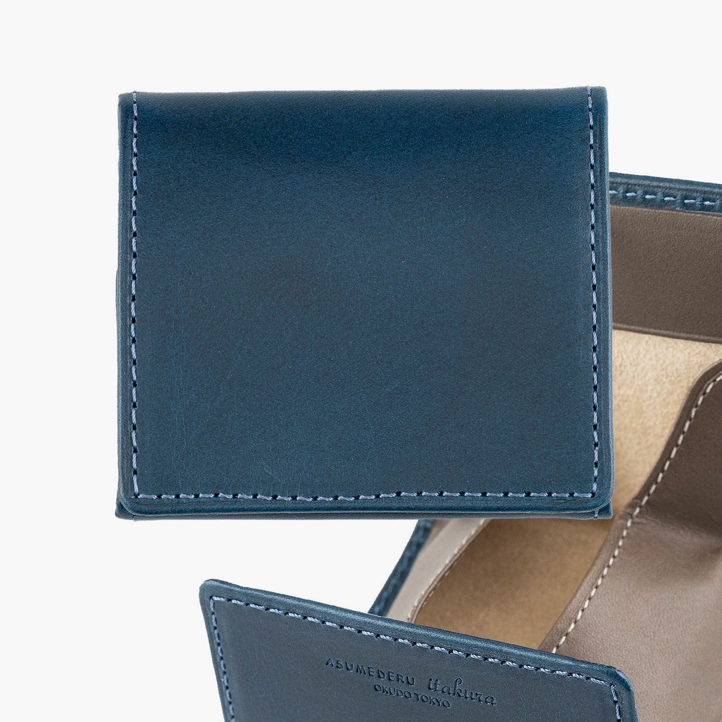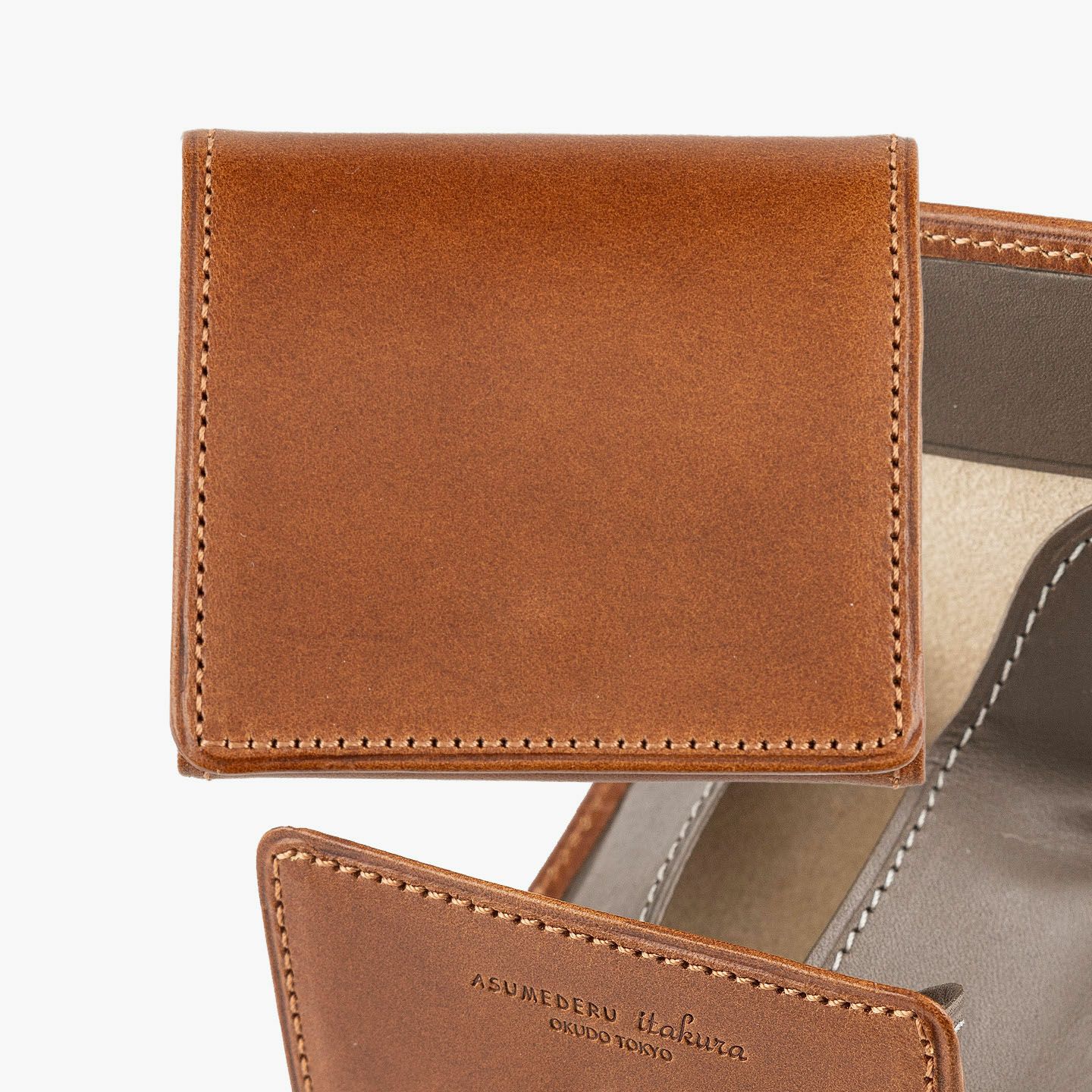挑戦し続けるという想いや技術・感性を注ぎ込みながら試行錯誤を重ね、40年以上も財布を作り続けている革製品ブランド『ASUMEDERU』のコインケース。収納物の出し入れしやすさを徹底的に追求したボックス型小銭入れは、垂直ではなく斜めに大きく開く舟形の設計にすることで、とても小さいサイズ感ながらマチも倒れず扱いやすい機能美を実現。パンツのサイドポケットにも楽に入れて軽やかに携えられるスマートな外装として、イタリア・ワルビエ社の伝統的な技法による最高級ヌメ革「ブッテーロ」を贅沢に纏わせ、しっかりとした手触りと新鮮なツヤ感による上質感あふれる魅力で、愛らしいフォルムを際立たせてくれる。