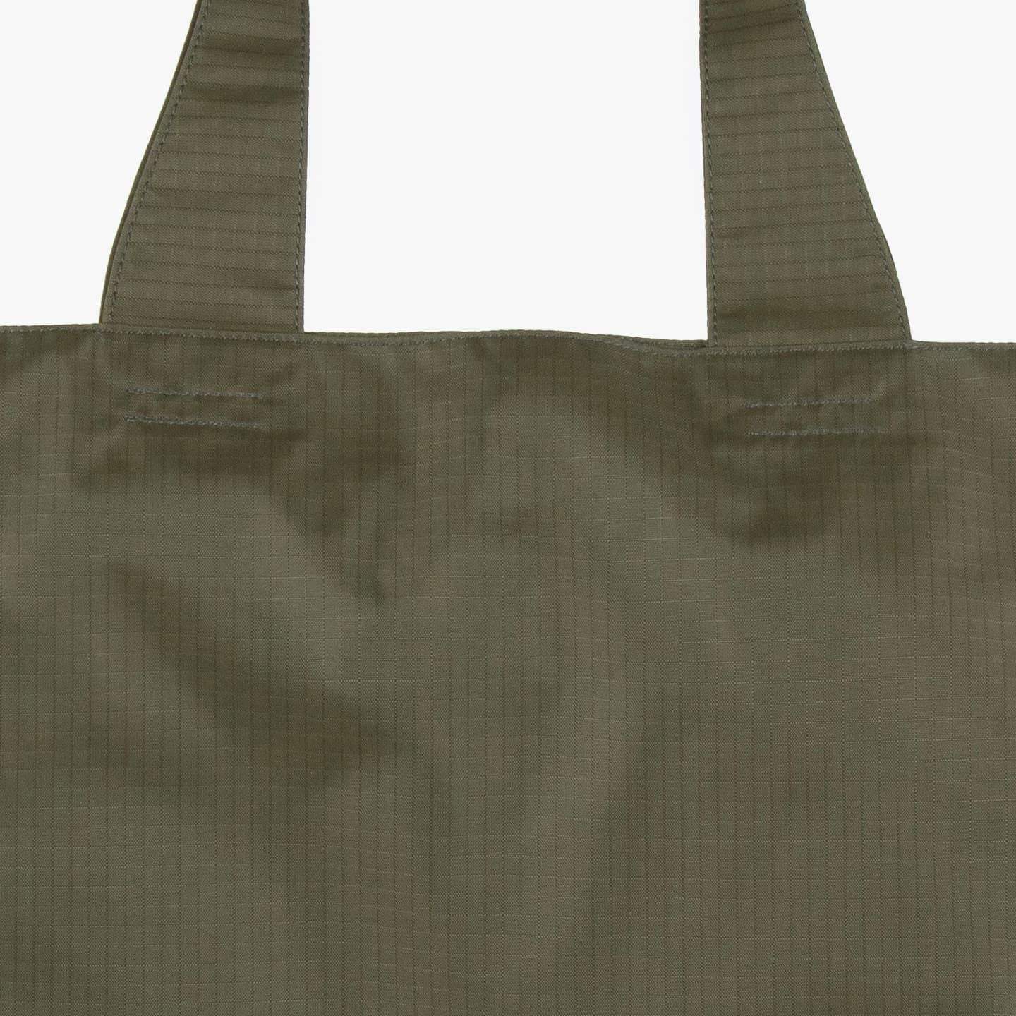 一般的なエコバッグは、14Kgの荷重に耐えれば遜色ないレベルですが、この『パラシュートクロス エコバッグ』は、科研での検査の結果、その約7倍の荷重に耐えられることを証明(JIS L 1093 A-1,JIS L 1096A)。これは、優れた強度の「パラシュートクロス」だけでは成立せず、高級革バッグなどを長年製作してきた熟練職人の縫製などによる仕上げの賜物です。優れた素材と手仕事による驚異的な耐荷重性とともに、幅広で使いやすいメインコンパートメントの実用性や、格好良く使えるデザイン性も兼ね備えています。