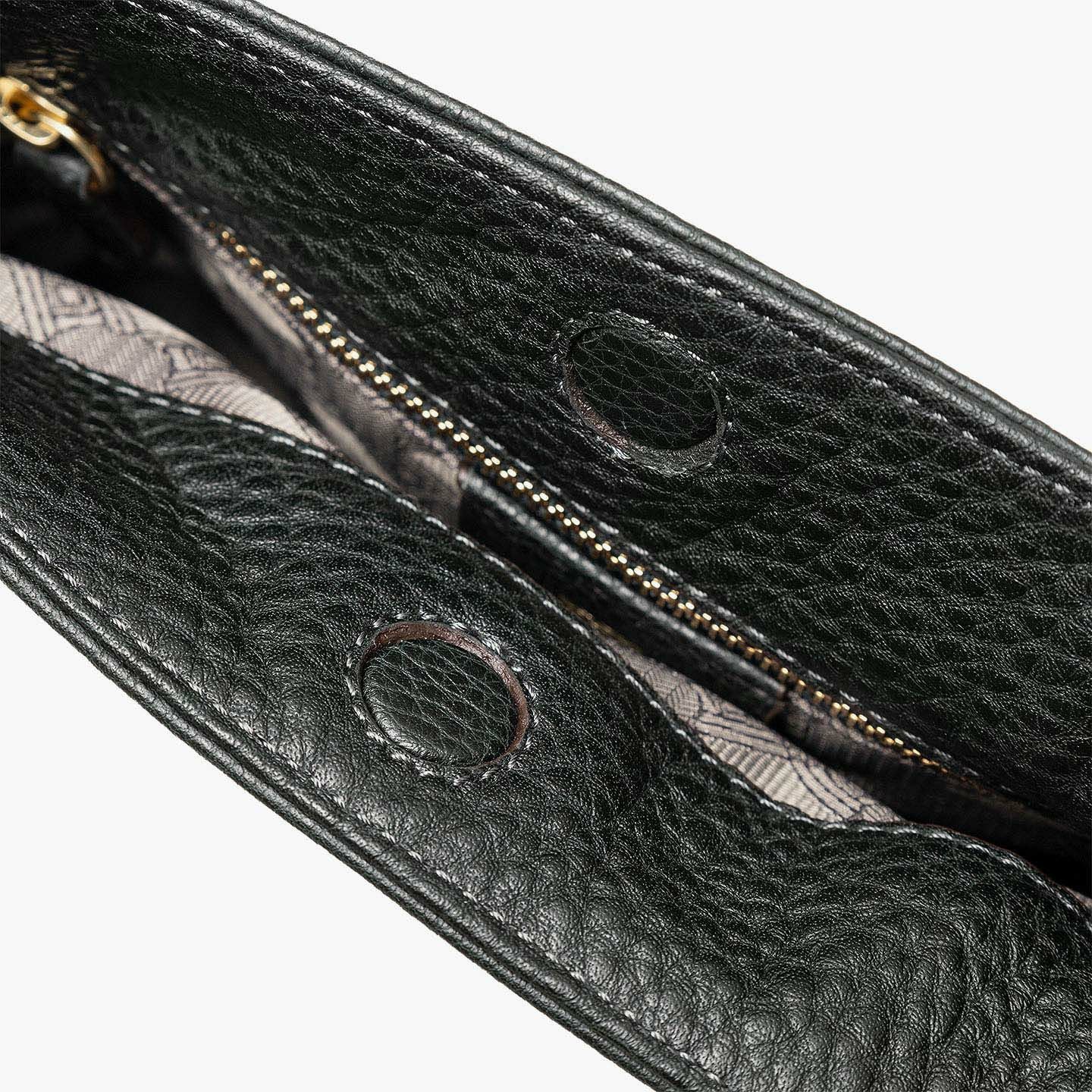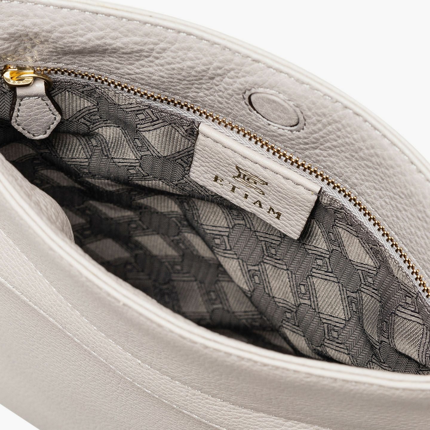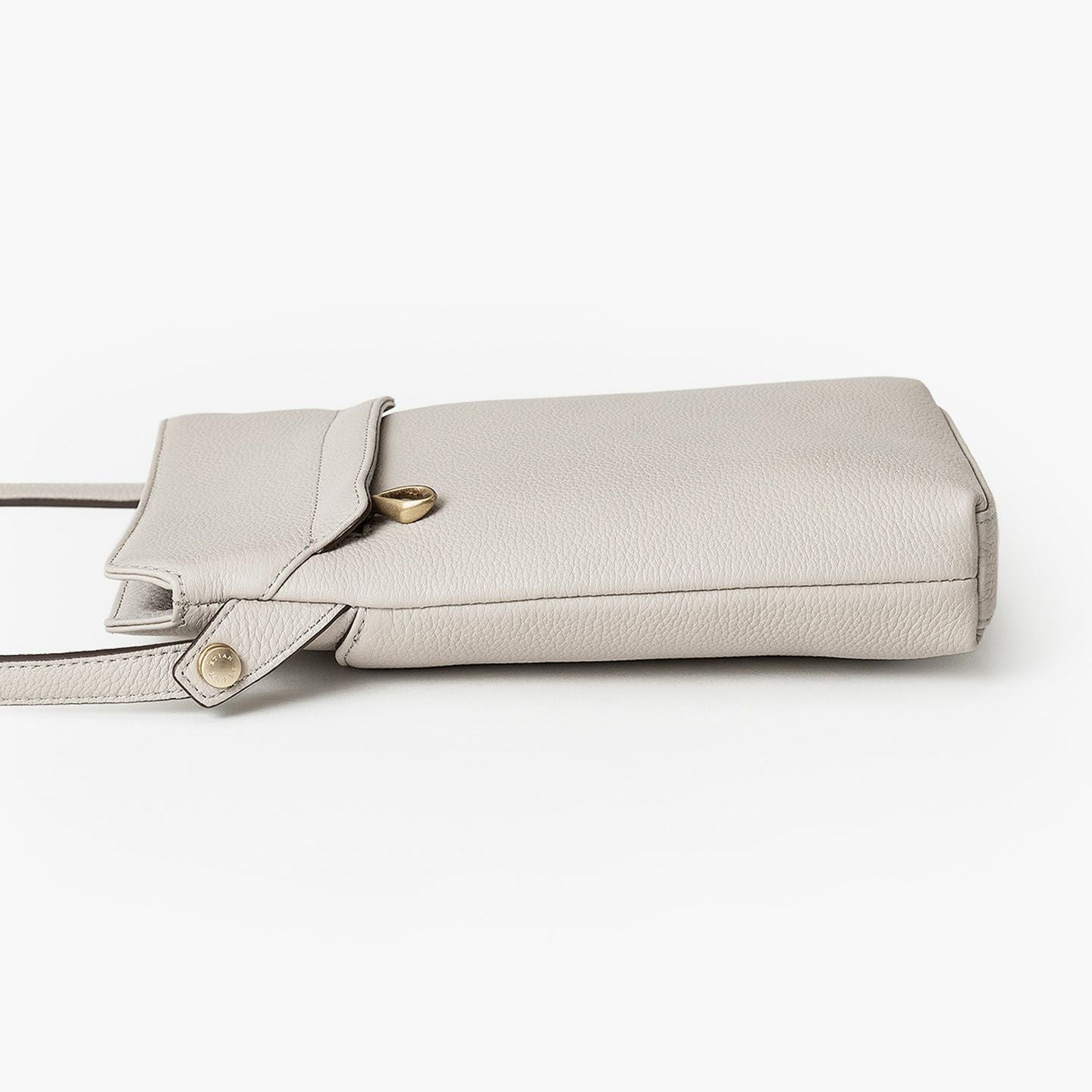 コーディネートを追求した流線形の立体的なデザインが、持ち歩く人たちのスタイリングを際立たせる、バッグブランド『ETiAM』の縦型ショルダーパック“Grace”。マグネット式のメインポケットをワンアクションで開閉して、バッグを見ずに出し入れできる利便性と、体に寄り添う程よいサイズ感ながら、しっかりと長財布を入れられる収納性が、ポケット感覚で優美に使いこなせる機能性へと昇華。シボ感が魅力的な外装「シュリンクレザー」から、ちらっと見えるオリジナル「真鍮金具」によるチャームの佇まいが、細めのショルダーベルトやカフスボタンのような接続金具とともに、さり気ない存在感でエレガントな印象を演出してくれます。