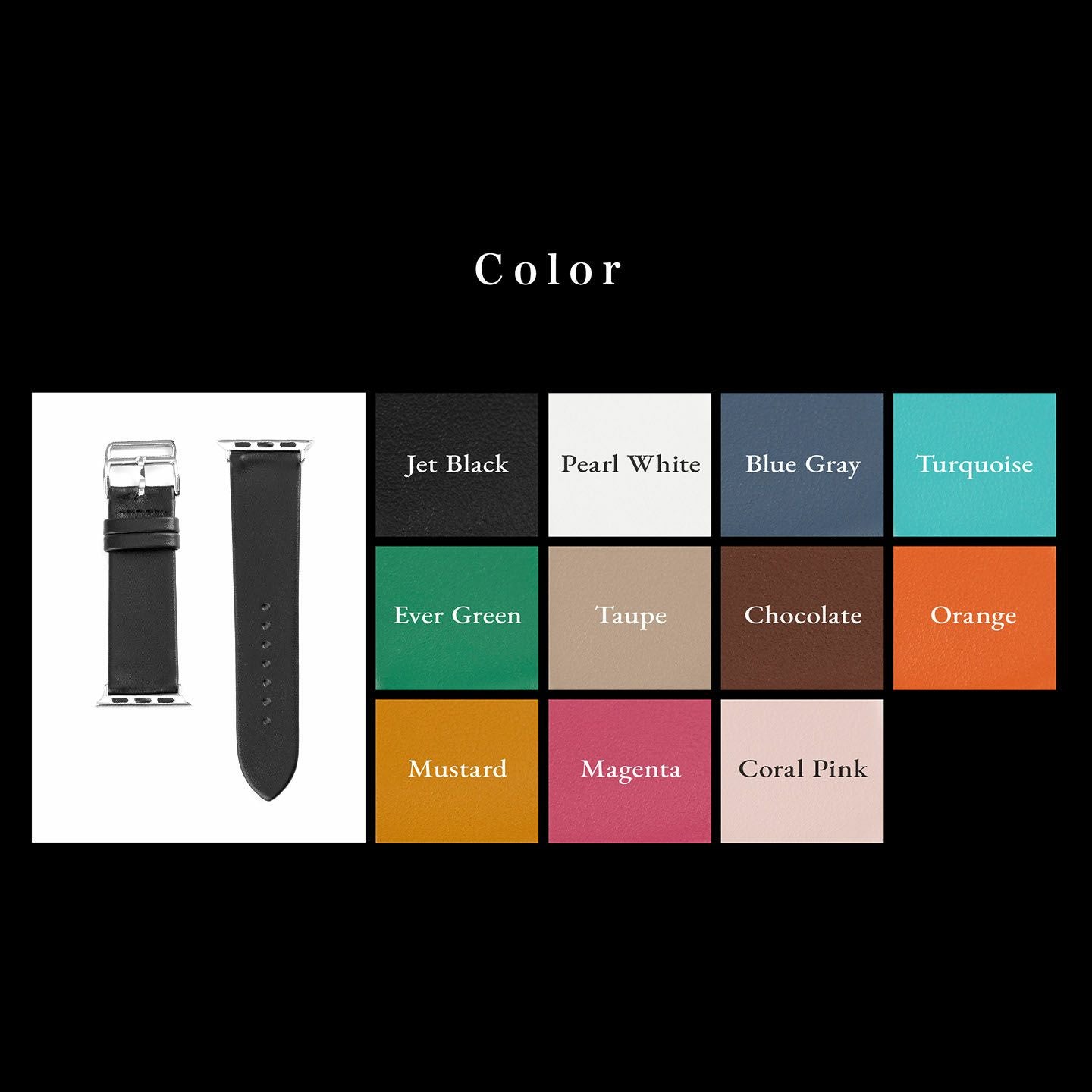 約70年の実績・歴史を誇る時計ベルトメーカー・MIMOSA(ミモザ)による、カスタムメイドブランド『Manetta di mela』の、アップルウォッチ専用バンド。イタリアの老舗タンナー・ファエダ社の代表作であるスムース牛革「トレソー」を表革に採用し、イタリアンレザーならではの発色の美しさと高級感あふれる風合いを併せ持ち、柔らかな質感とステッチレスのスタイリッシュで、アクセサリーのように装着できるのも魅力的。その虜になるほどのカラーは、豊富な11色からセレクトでき、アダプター&尾錠も、Silver/Gold/Black/Rose Goldの4カラーから選べるので、好みに合わせて腕周りを飾ることができ、自分らしい個性を演出してくれる。