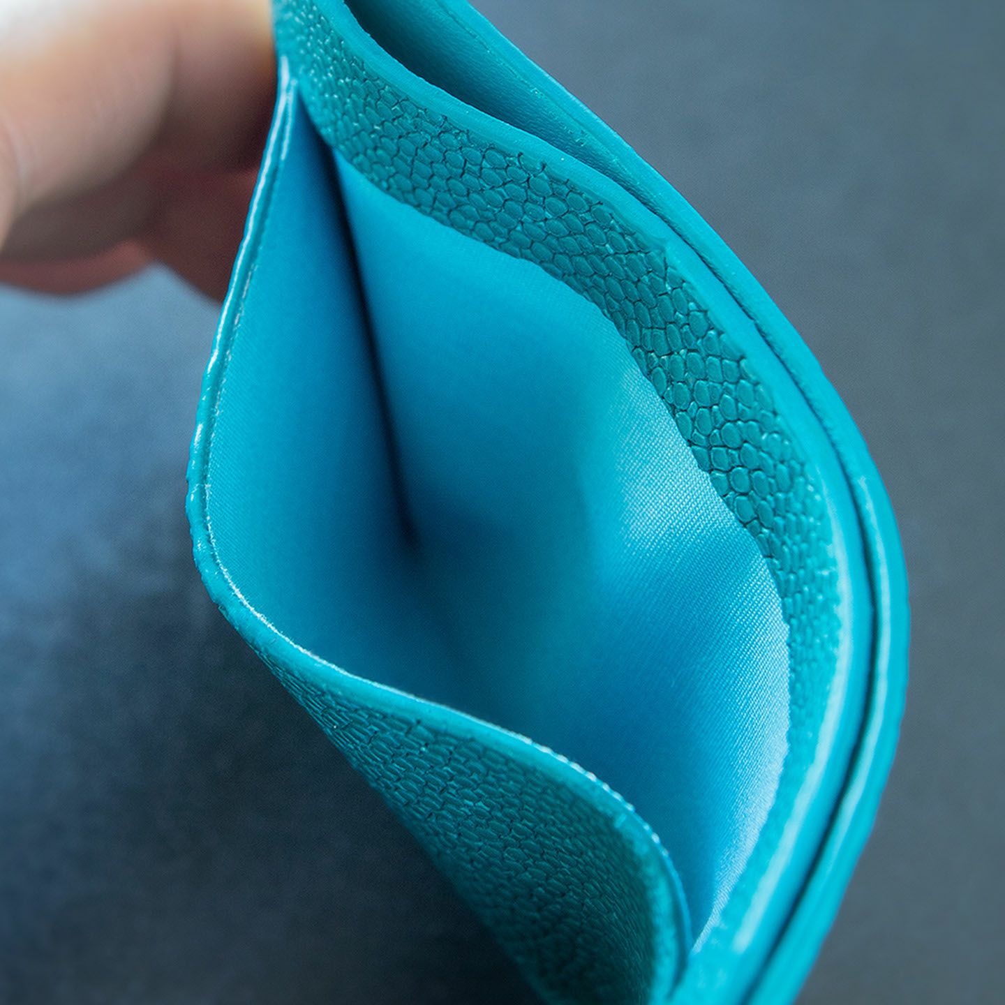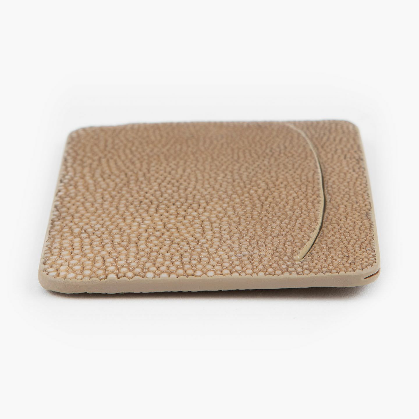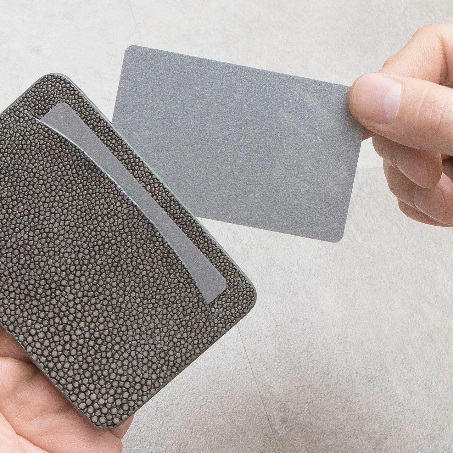 いつも一緒に人生の旅の時間を刻んでいく革製品でありたいと、“Cuirs D'ailleurs 〜旅するレザー〜”を掲げているブランド『Atelier AKNAS』の単パスケース。古来より“幸福の魚”と呼ばれて縁起が良いとされるエイ革「ガルーシャ」が、ガラスビーズを散りばめたような美しい高級感で魅了。その外装色と統一させたカラーによるコバ塗り仕上げを細部まで施すことで、シームレス(無縫製)ながらも耐久性に優れ、ジャケットの内ポケットなどから出し入れする際にも、引っ掛かりにくいフラットさを実現。フレンチならではのモノ作りへのこだわりが込められた、究極的にスリムなフォルムが、大人のスマートさを格上げしてくれる。