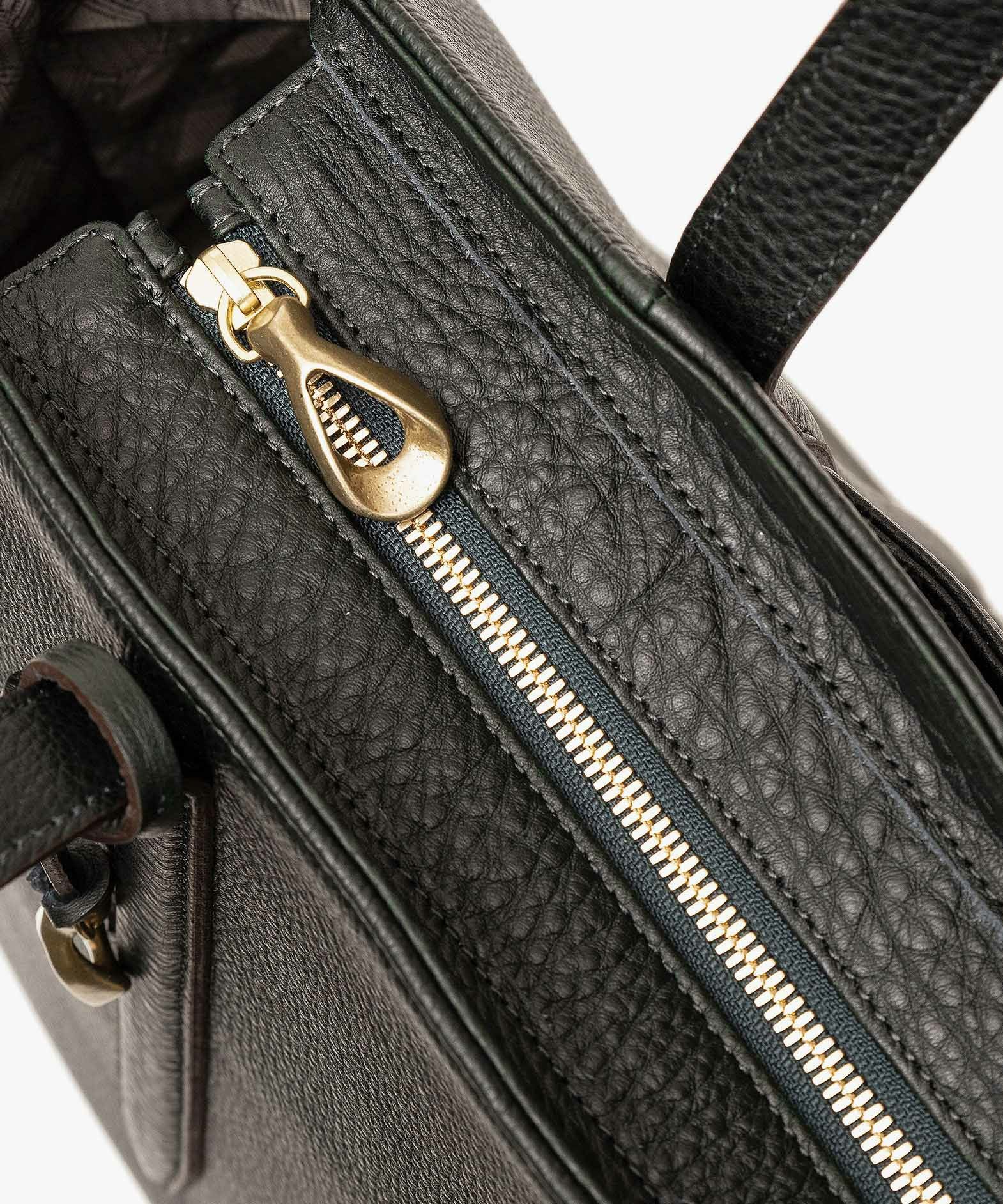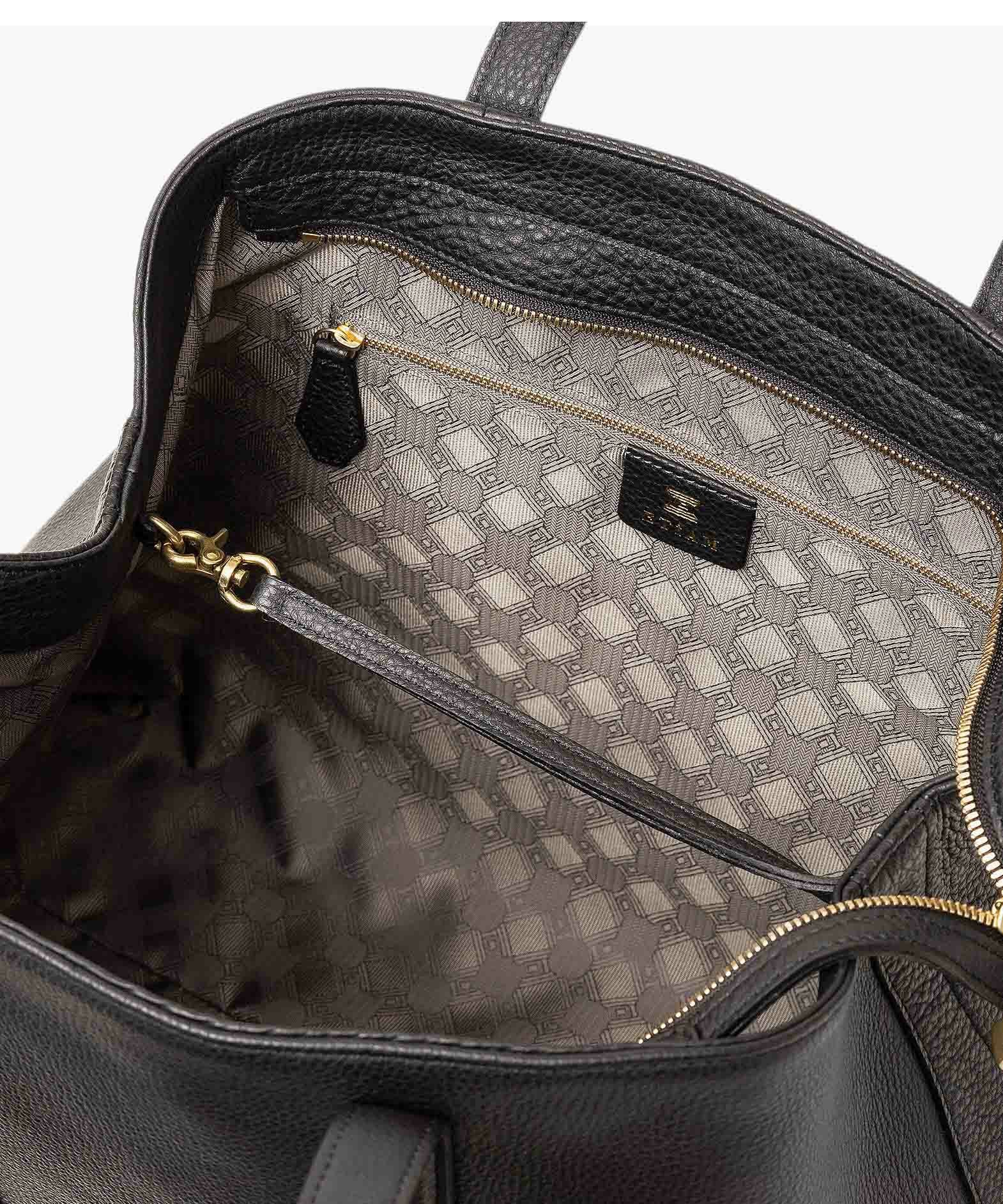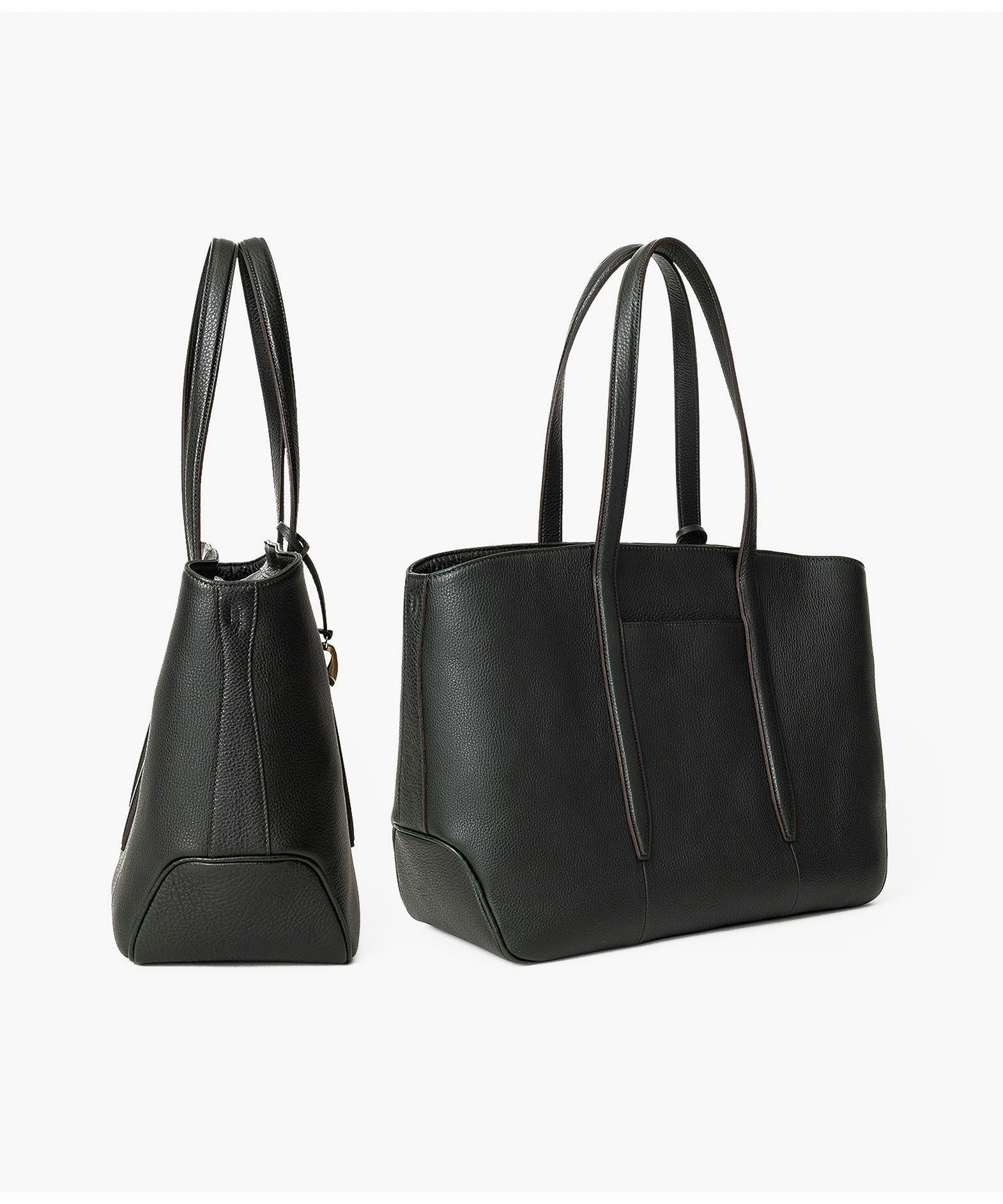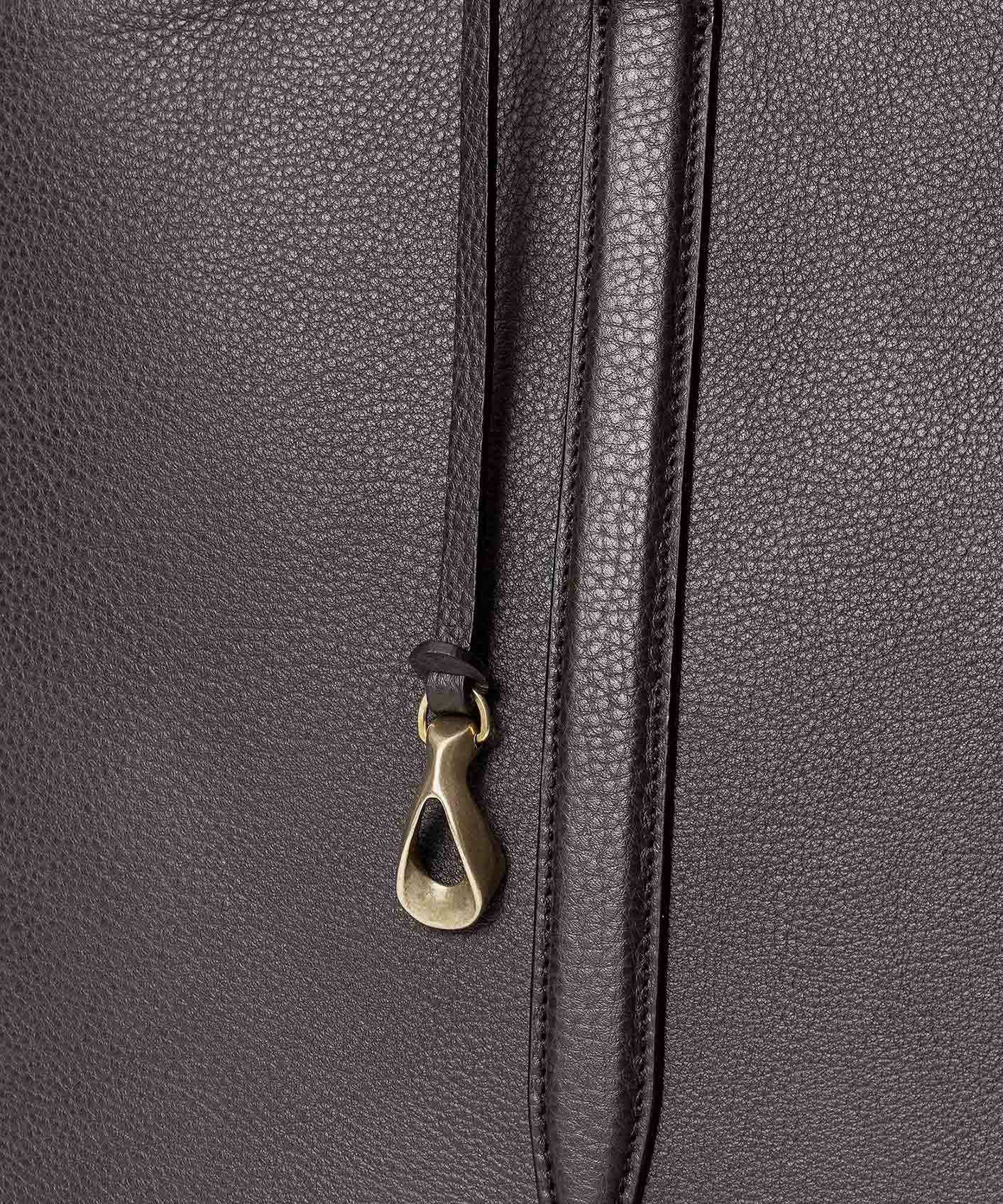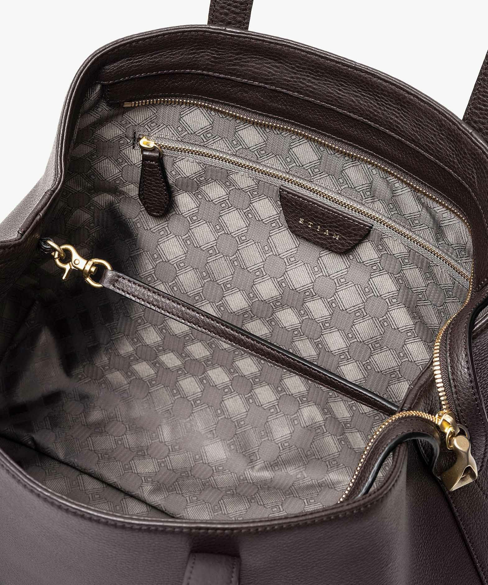 ファスナー開閉式で、B4サイズ・15インチのノートパソコンが収納可能。マチを内側に折り畳んでコンパクトにすることができ、用途に合わせて2通りのシルエット・サイズを楽しめます。また、バッグの上部を、左右のマチに向かって下がっていくラインにすることで、マチを内側に折り畳んでも天ファスナーがぶつからない機能性と、個性的でエレガントな見た目の美しさを両立。さらに、くびれをセンターに施した底マチは、肩掛けするときに体にフィットしてスムーズに持ち歩ける実用性と、独特のライン&フォルムがアクセントになるデザイン性を兼ね備えています。