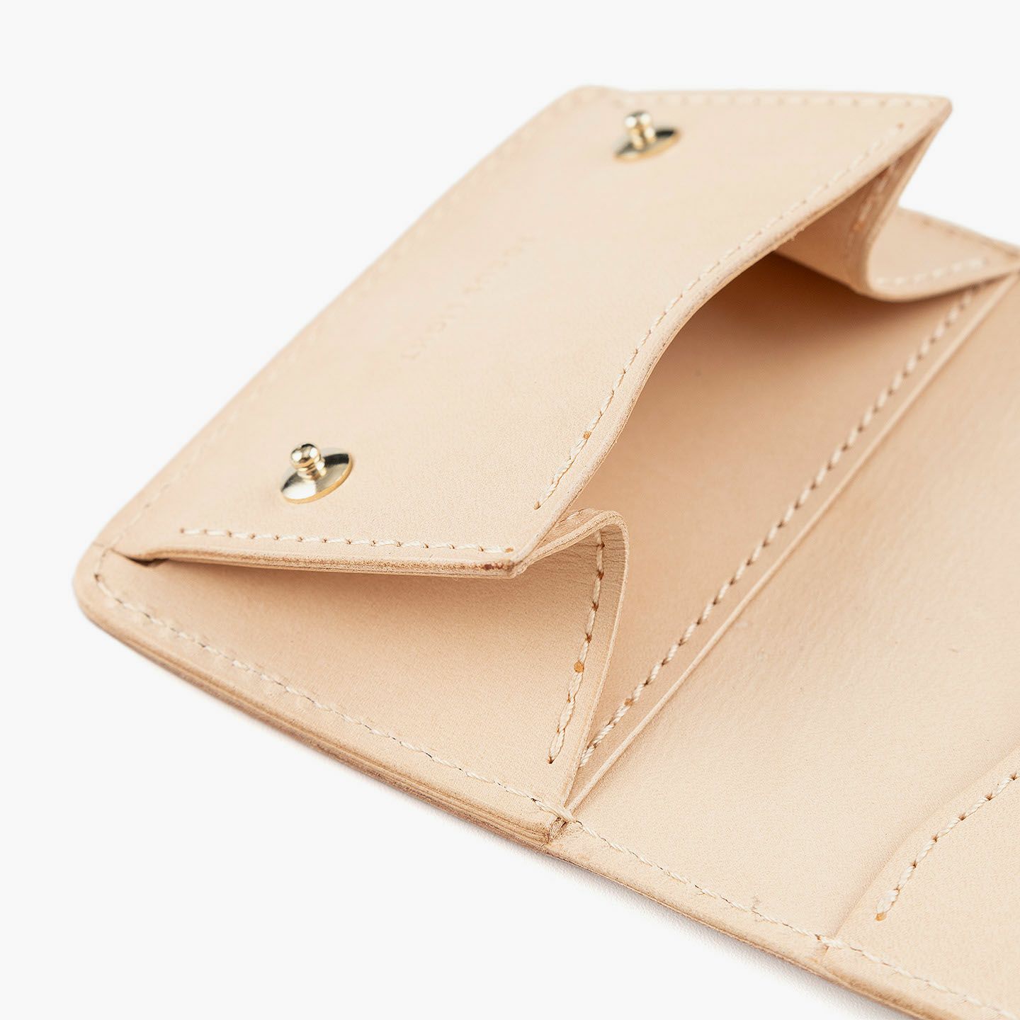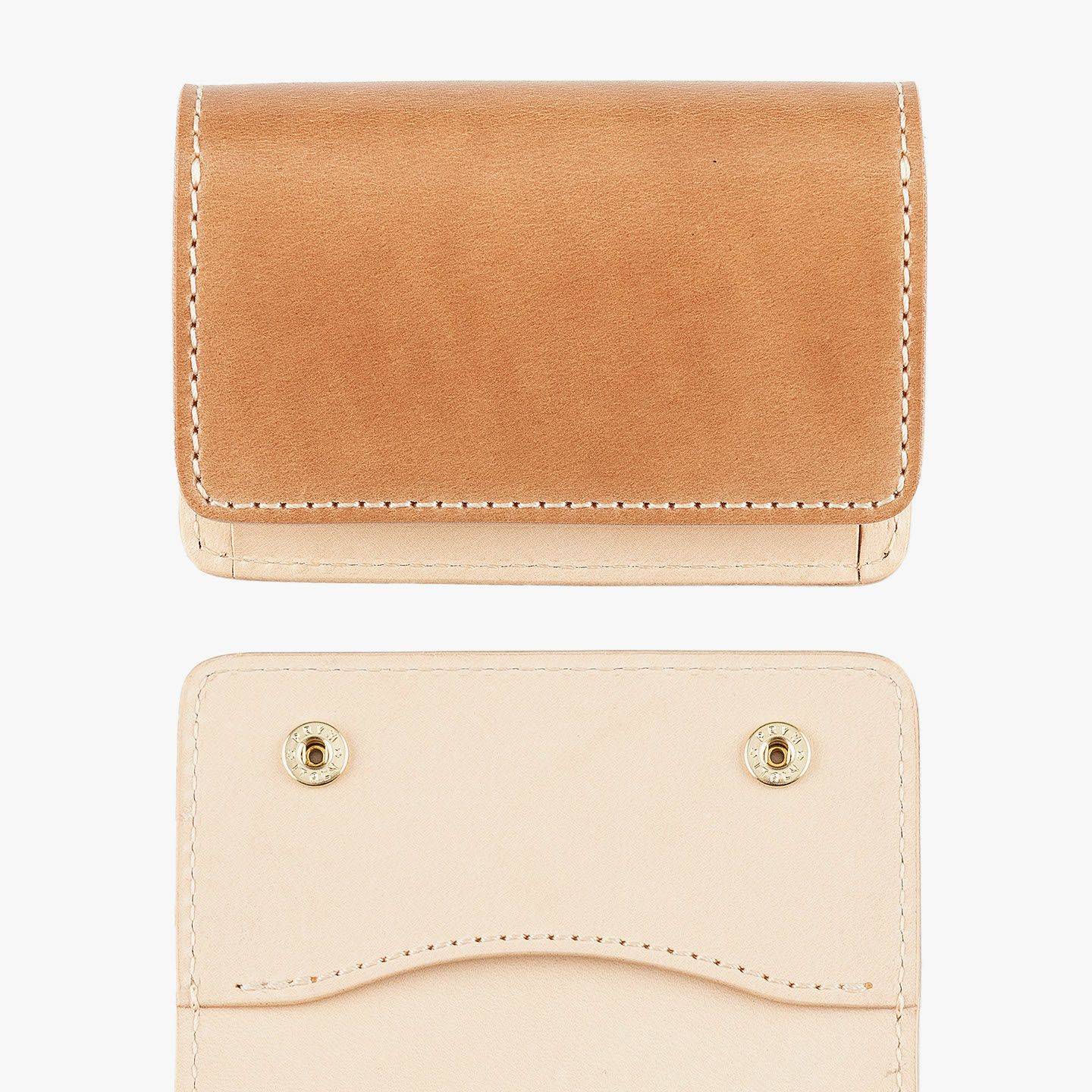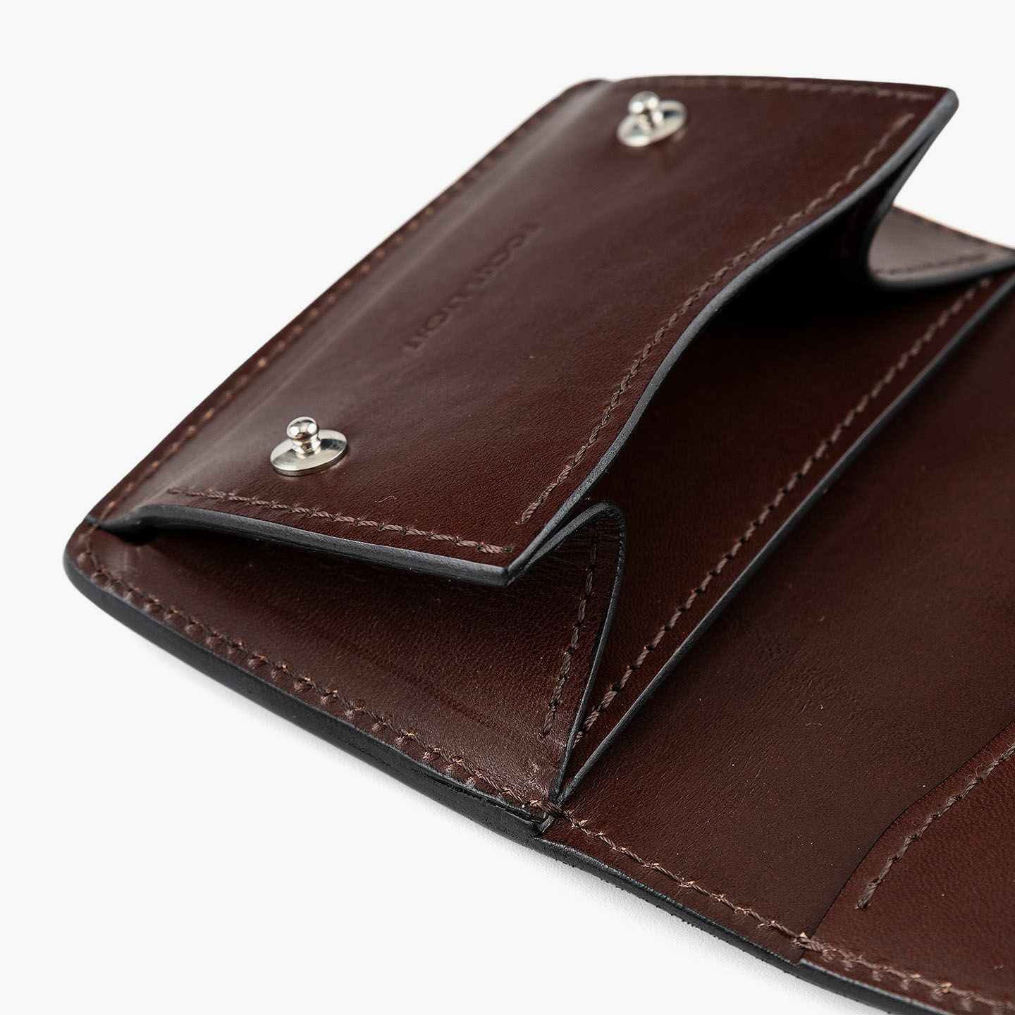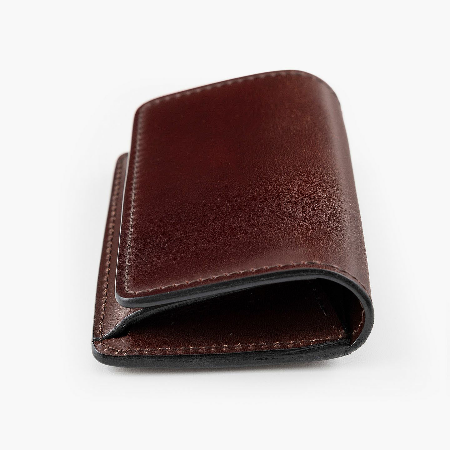 小銭・カードだけでなく折り畳んだ紙幣も入れられ、オールインワンのミニ財布としても使える、コインケース“マウス”。兵庫県姫路市・新喜皮革の「コードバン」を纏った外装は、うっすらと素地が浮かび上がり、まったく同じ表情が他にはない唯一無二の贅沢感を醸成。美しい光沢と透明感も魅力で、使い込むほどに深まるエイジングも特長。ハリ感があって外装とも相性が良い「牛ヌメ革」の内装は、オイルを染み込ませたタンニン鞣し革を採用。そして、カブセの角や裏、コインポケットや背面カードポケットのカッティングラインには、デザインのアクセントなる美しいカーブが描かれ、洒落感あふれる個性を演出。丸みを帯びた愛らしいフォルムが、手に馴染む絶妙なサイズ感で、この上ない親近感を抱かせてくれる。