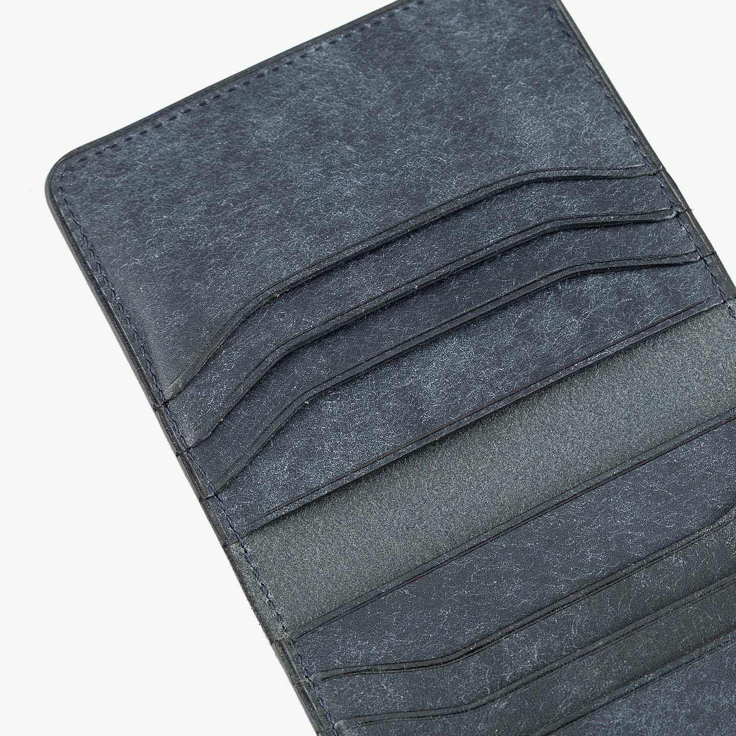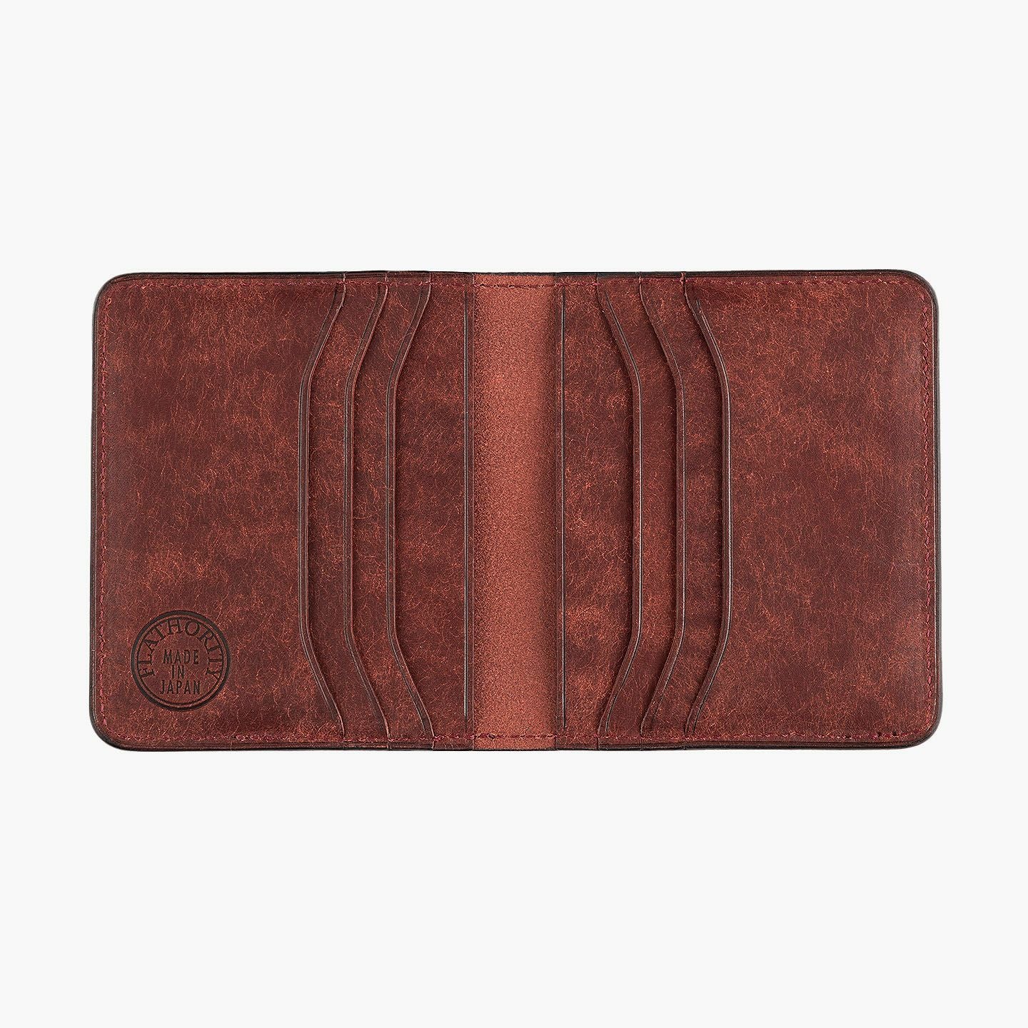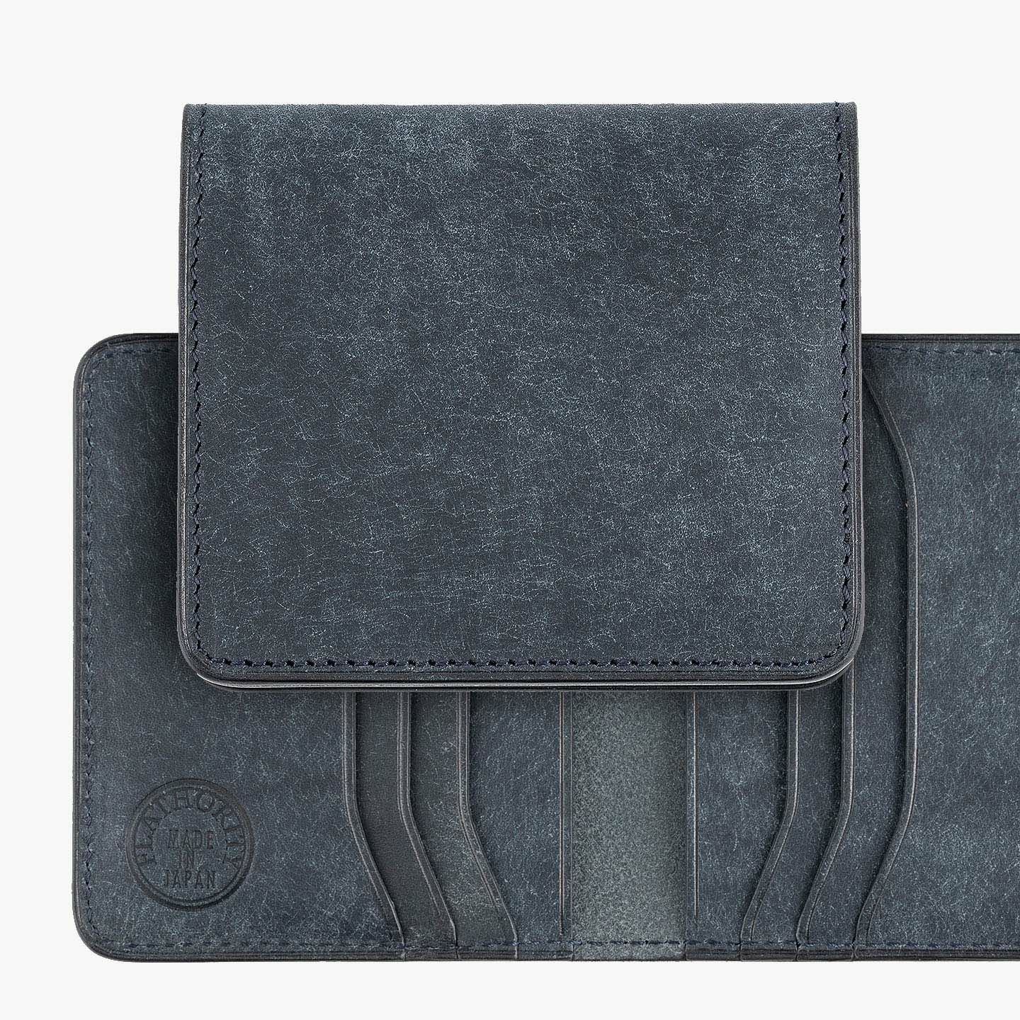 ハイクオリティで量産できる鞄メーカー岩瀬が、どこにも真似のできないレザー製品を生み出したい想いを込めている、ファクトリーブランド『Flathority』のカードケース。和紙のように表面を起毛させた外装・内装の「プエブロレザー」が、ザラザラした独特の風合いから、ツルツルした美しいツヤ肌へと経年変化していく楽しさと、ふっくらとしたフォルムやジェンダーレスなデザインも魅力。スリムな手のひらサイズを追求しながら、左右シンメトリーで向かい合わせたカードポケット6つは、その数よりも出し入れのスムーズさにこだわり、折り畳んだ紙幣も収納できるマルチポケット2つとともに、扱いやすい気軽さをもたらしてくれる。