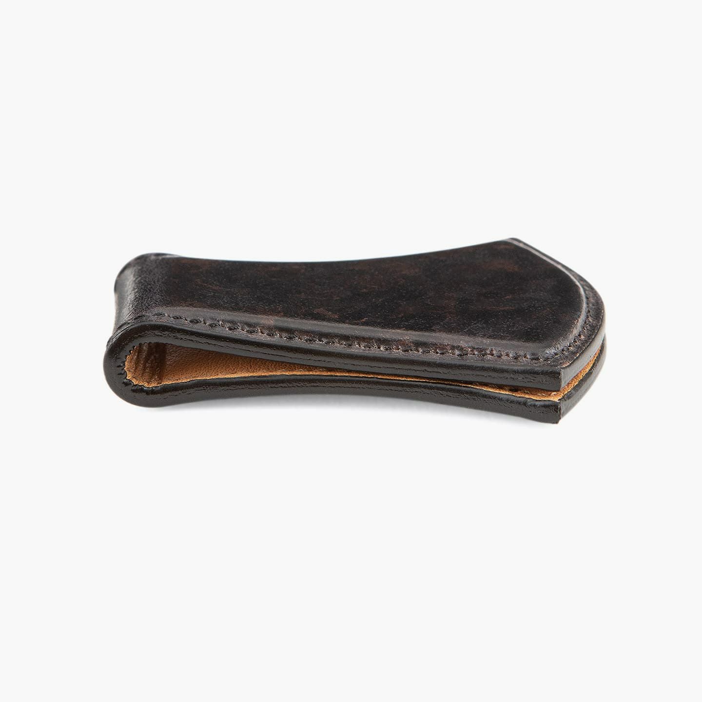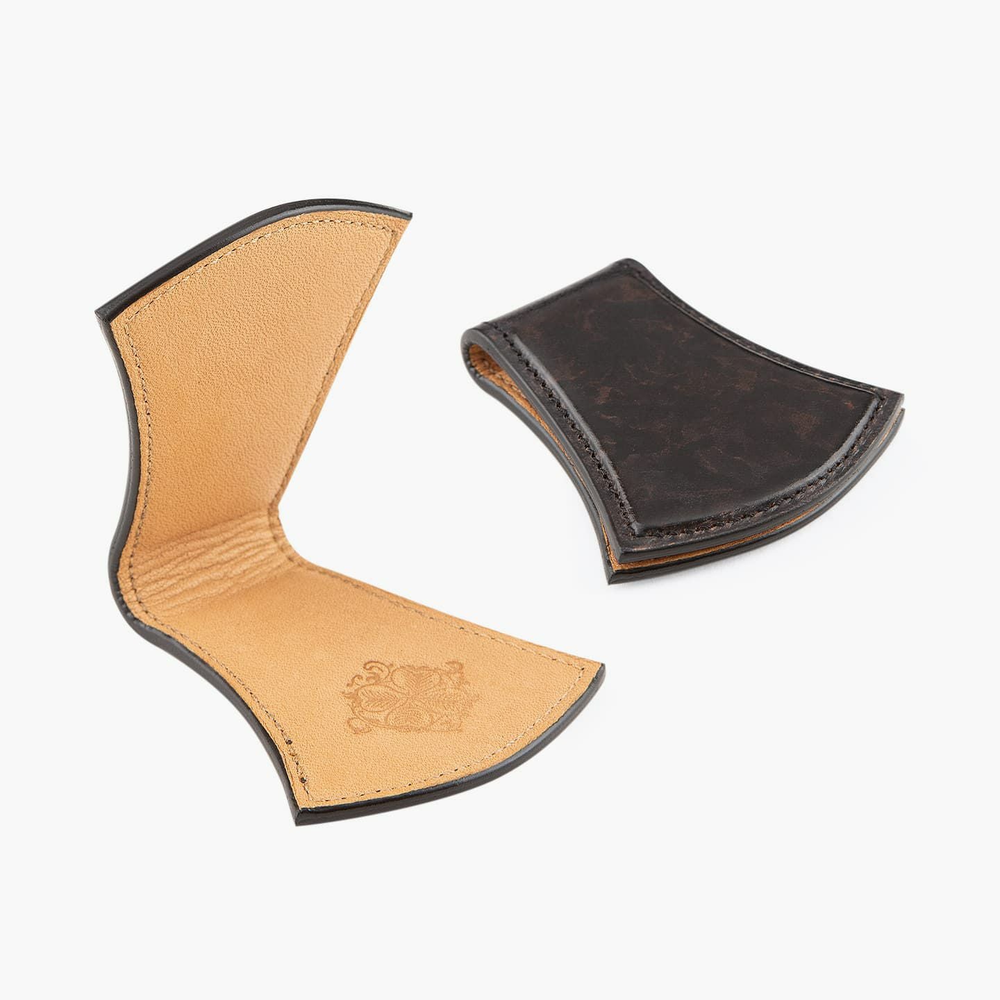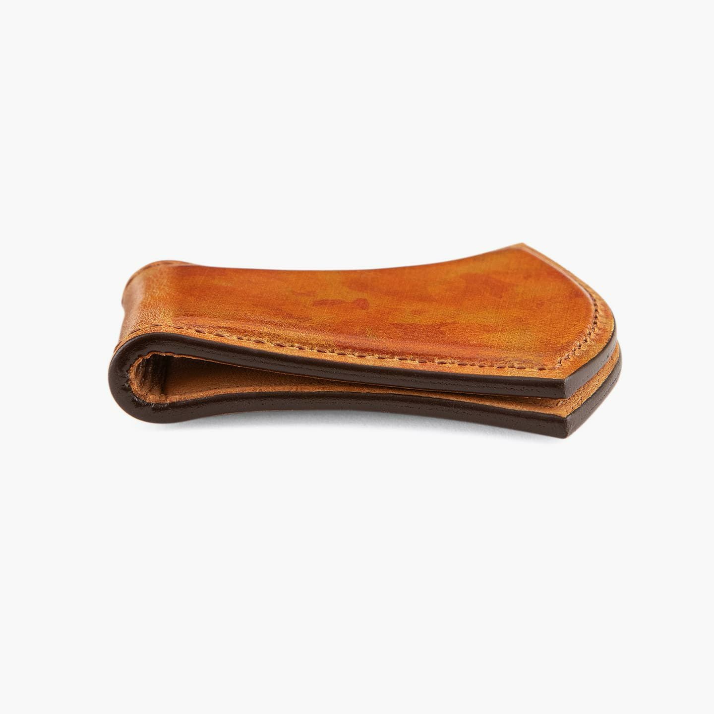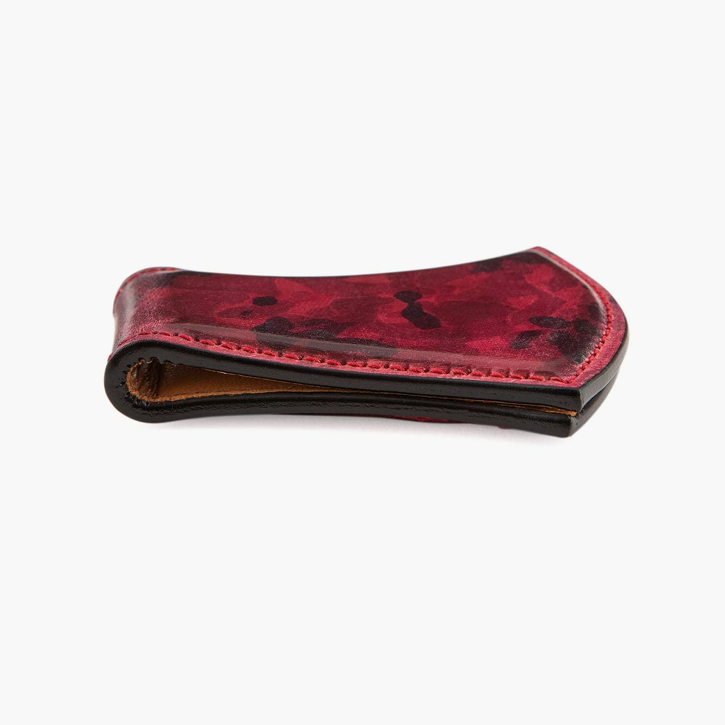 イタリア・フィレンツェの工房で修行していた革小物職人・久内夕夏が、靴職人の夫・久内淳史と手掛けるブランド『il Quadrifoglio』のマネークリップ。縁起が良いと言われている扇形をコンパクトにしたシンプルなデザインで、マグネット仕様で紙幣をクリップして持ち歩く、見た目のスマートな革小物。そして、フィレンチェ仕込みのスポンジで塗装するマーブル染めを纏わせ、キャンディーや宝石のような美しい透明感を漂わせる、小粋なアイテムへ。女性ならではの洒落た感性と、日本人ならではの丁寧なハンドメイドが融合し、素材・染料ともにイタリア製にこだわったイタリアンな味わいとともに、スタイリッシュな佇まいで紙幣を持ち歩く、新たなスタイルを創出させてくれる。