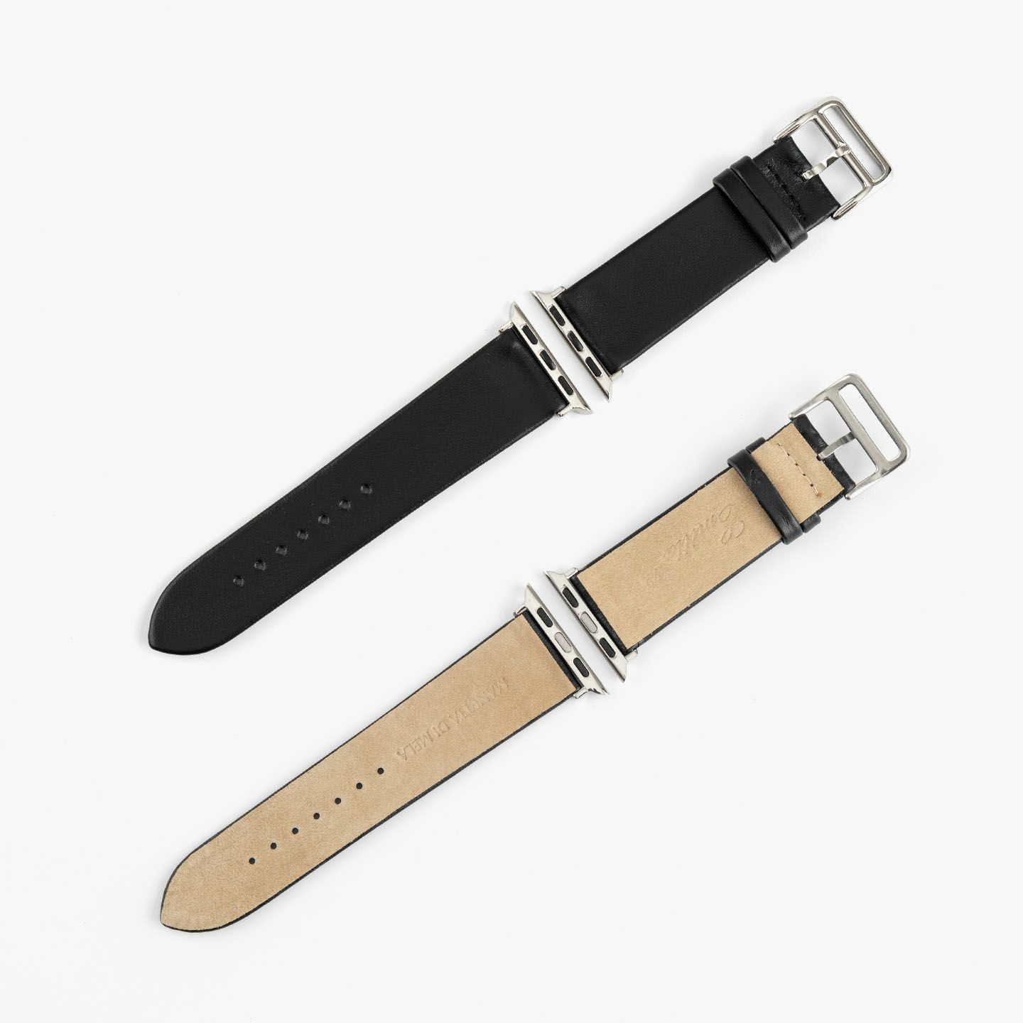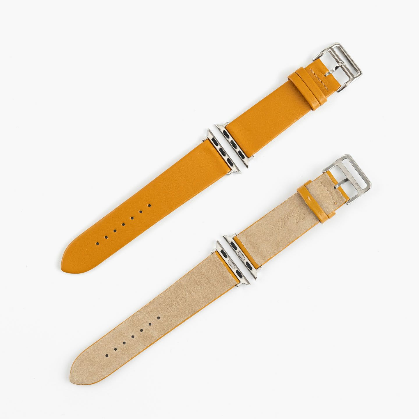 約70年の実績・歴史を誇る時計ベルトメーカー・MIMOSA(ミモザ)による、カスタムメイドブランド『Manetta di mela』の、アップルウォッチ専用バンド。イタリアの老舗タンナー・ファエダ社の代表作であるスムース牛革「トレソー」を表革に採用し、イタリアンレザーならではの発色の美しさと高級感あふれる風合いを併せ持ち、柔らかな質感とステッチレスのスタイリッシュで、アクセサリーのように装着できるのも魅力的。その虜になるほどのカラーは、豊富な11色からセレクトでき、アダプター&尾錠も、Silver/Gold/Black/Rose Goldの4カラーから選べるので、好みに合わせて腕周りを飾ることができ、自分らしい個性を演出してくれる。