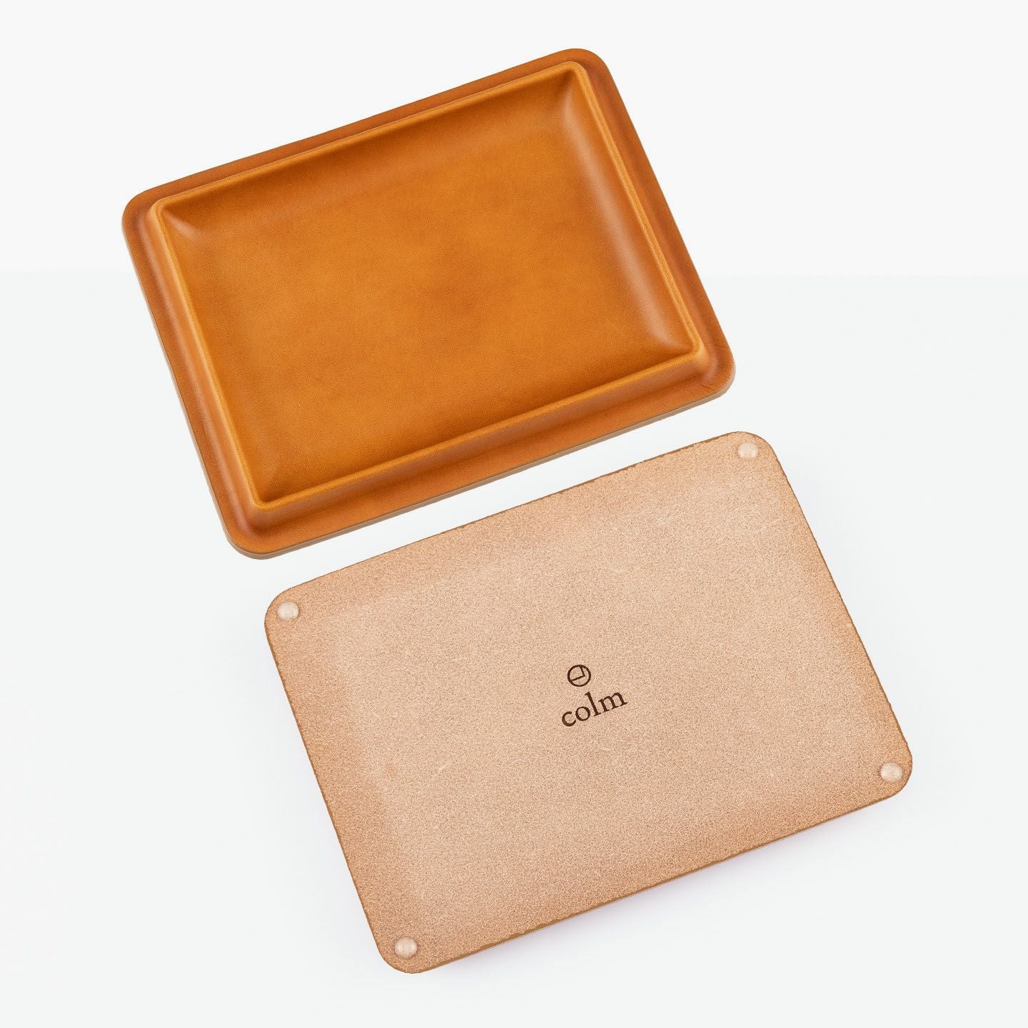 引き出しなどに日常的に使っている大切な物を入れておくのではなく、手が届きやすく目が留まりやすい場所に美しく置いておける、シンプルなデザインの立体的なトレー。素材の「牛ヌメ革」は、デニムのように深みのあるBlue・ナチュラルな雰囲気を醸すCamel・上質な高級感を漂わせるBrown・クールな洒落感あふれるBlackの4カラーから、自分の好みや使い方に合わせて選ぶことができます。また、このLサイズの他に、鍵・指輪・カードなどを置くのに最適なSサイズ・ペントレーやメガネ置きに最適なMサイズもラインナップ。各サイズとも厚さが同じで、Lサイズの長辺・短辺は2サイズの長辺と同じ長さなので、異なるサイズと揃えて使ってもキレイに組み合わせることができ、置いている空間をさらにスタイリッシュにしてくれます。