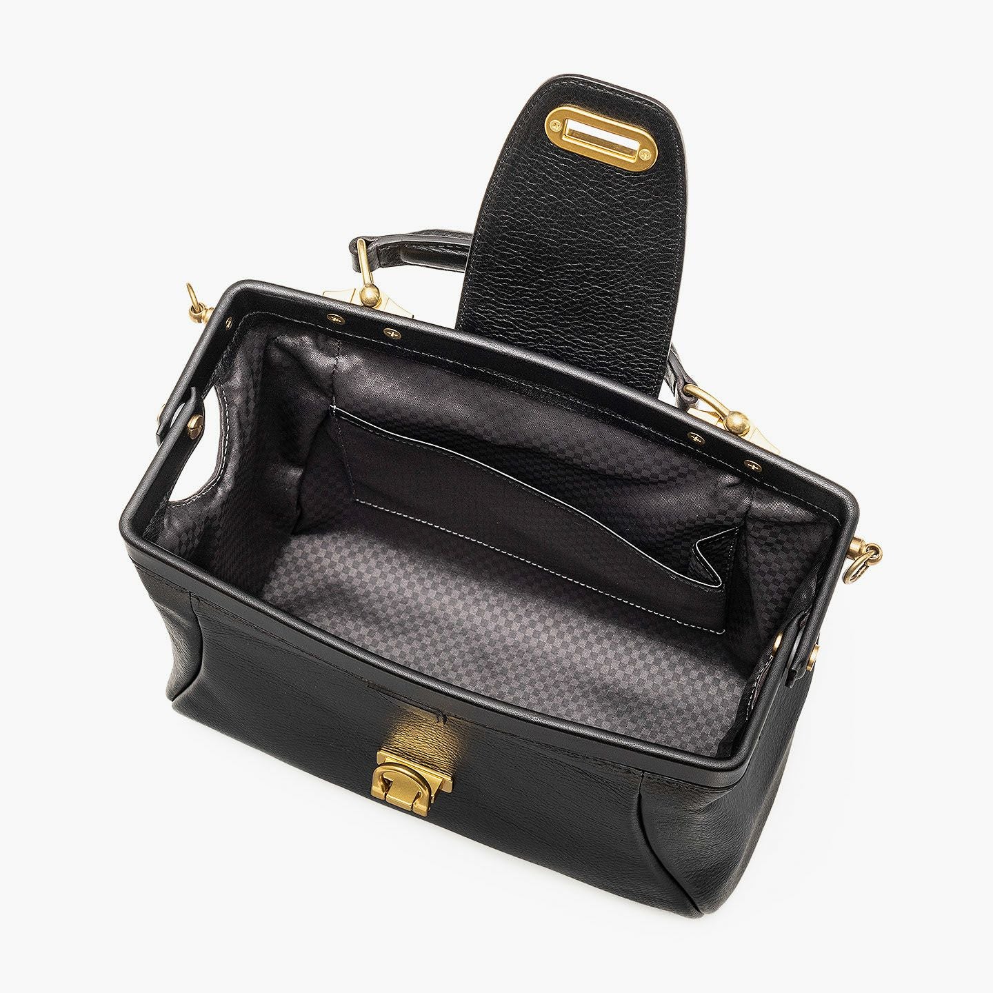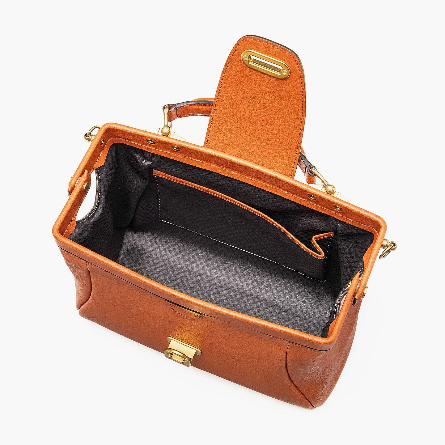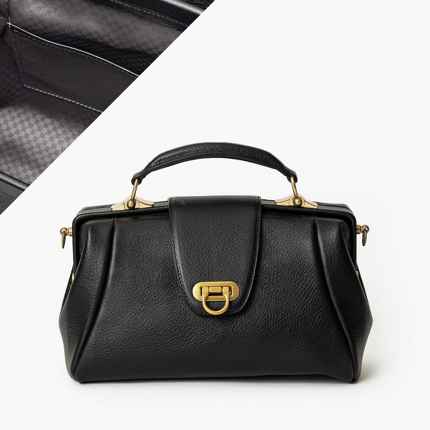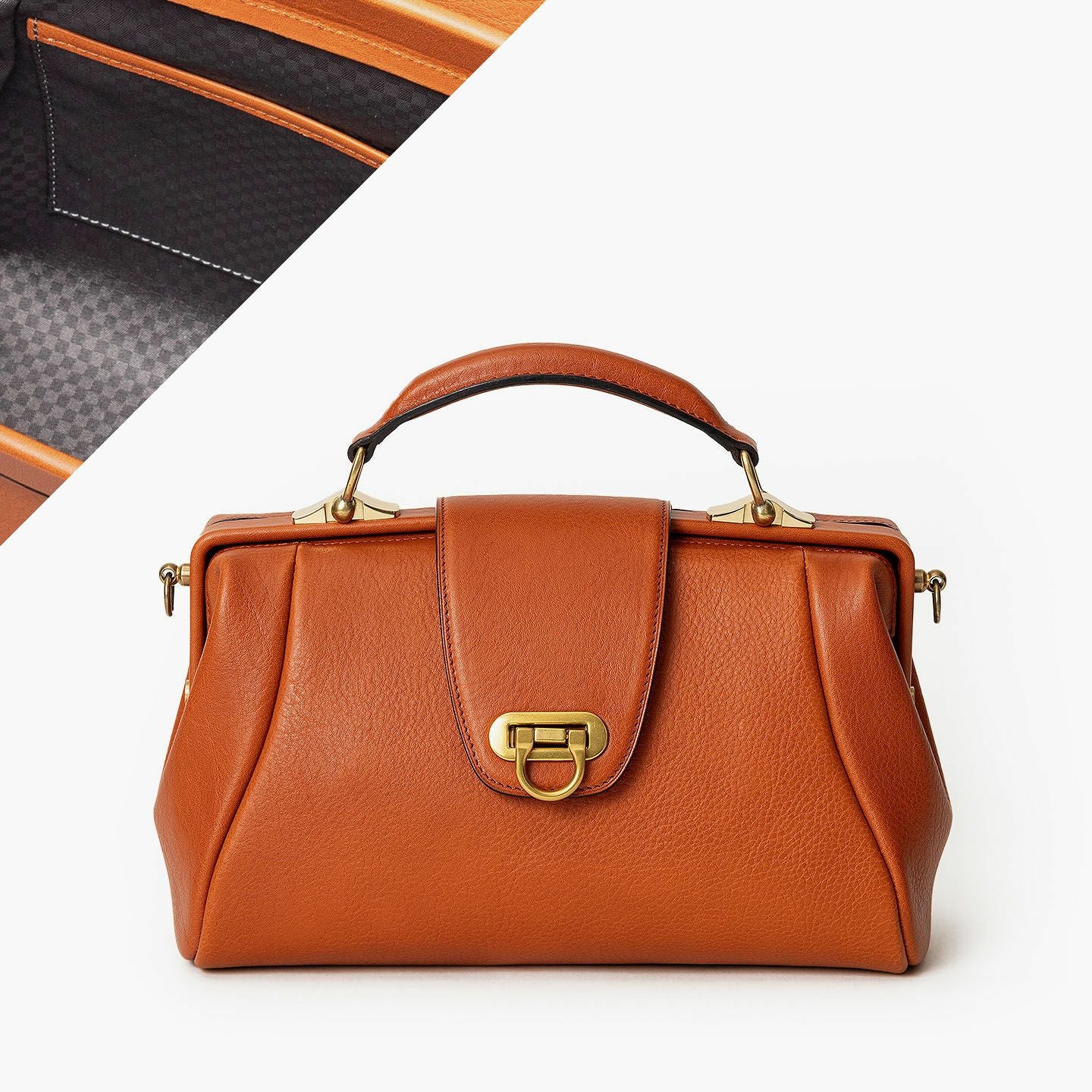 曲線美を追求しながら試行錯誤を重ね、しっかりと自立できる柔らかすぎないフォルムで、十分な収納力を備えたソフトミニダレスバッグ“OE”。丁寧に1枚1枚を仕上げたイタリア・ブレターニャ社製の高級レザー「アリゾナ」の外装が、独特のシボ感と2色から選べる色合いの美しさとともに、独創的なデザインをさらに昇華。がま口式の開閉部や手提げベルト・ショルダーベルトの接続部にあしらわれた真鍮金具が、その佇まいをさらに引き立てながら、ダークグレーの市松模様がエレガントな「甲州織生地」の裏地とともに、洗練された上質感を演出。スタイリッシュな装いで2WAYを楽しめる気軽さが、比類なき大人の洒落感を漂わせてくれる。