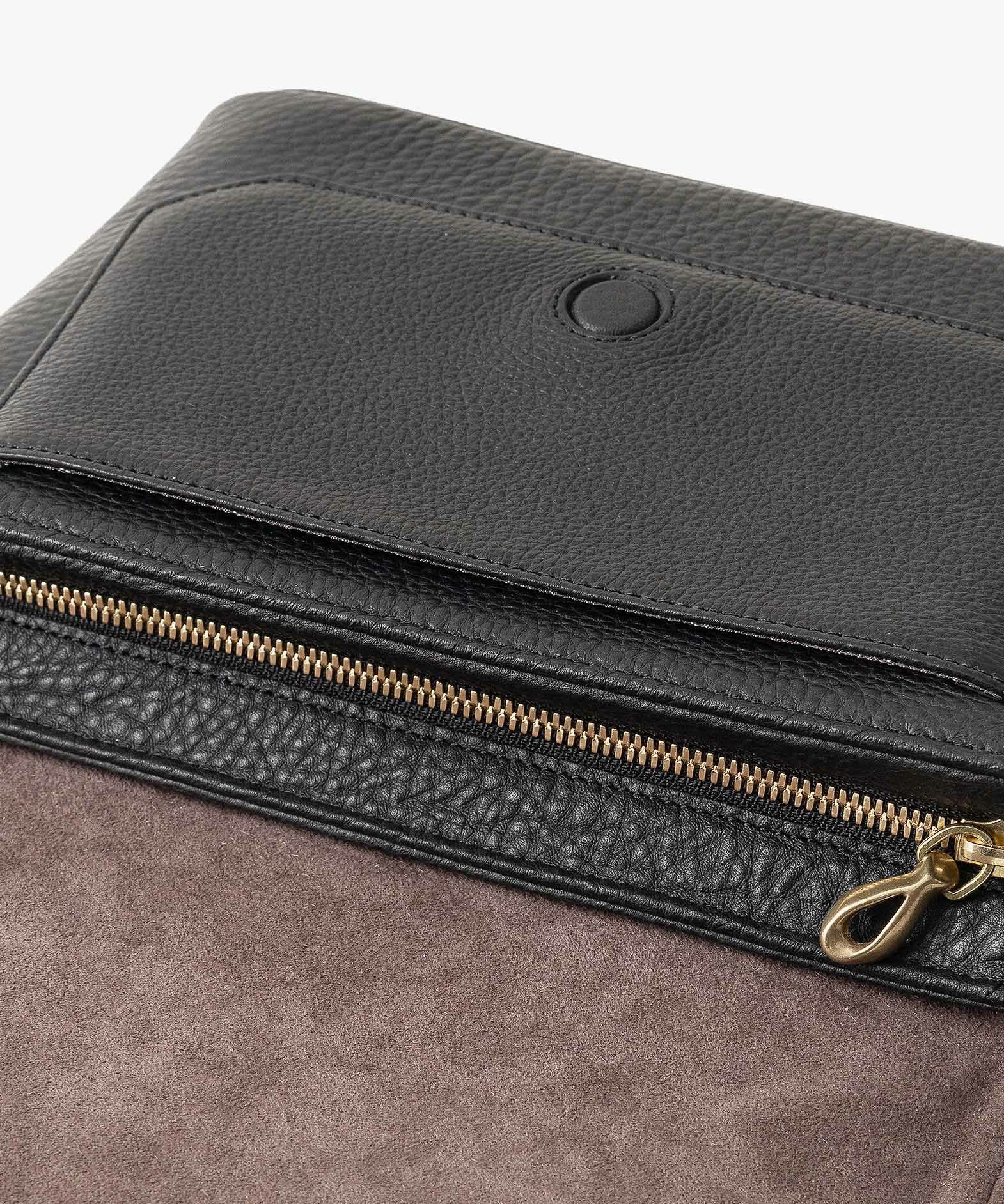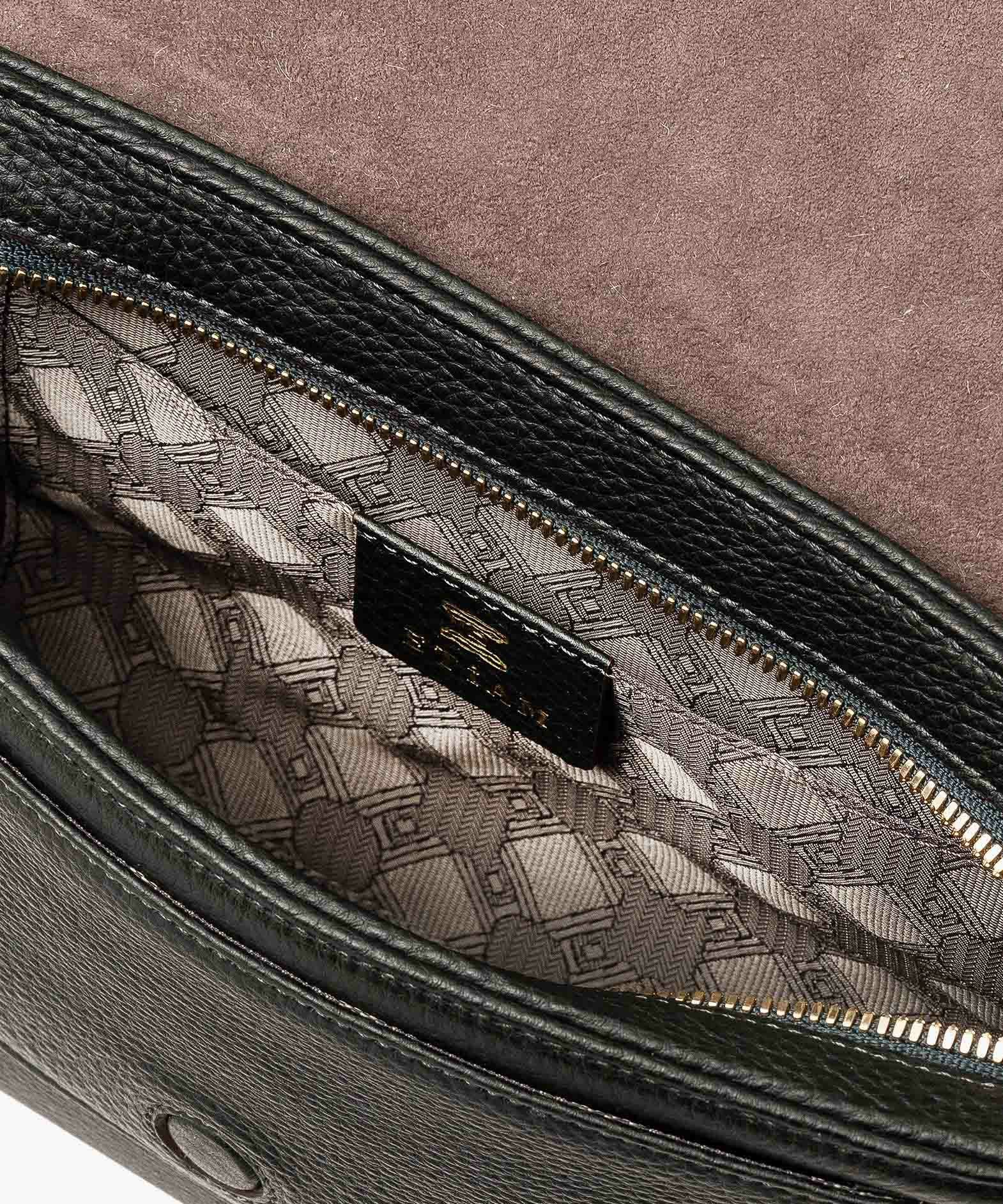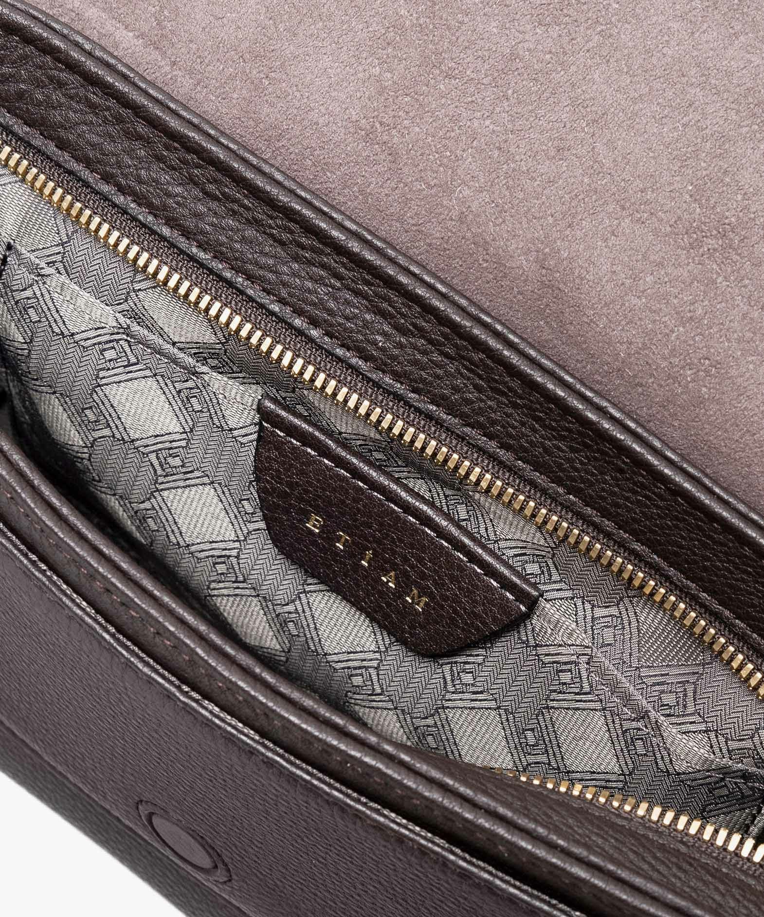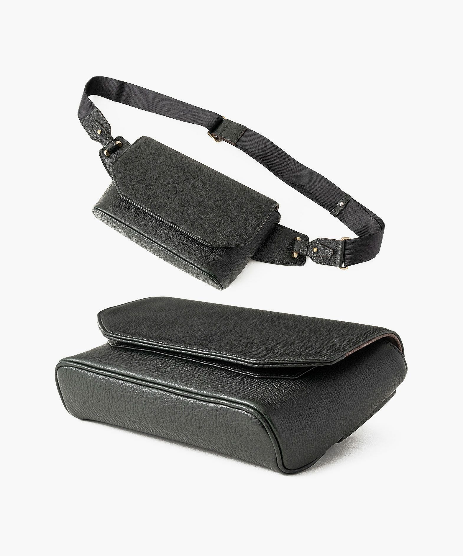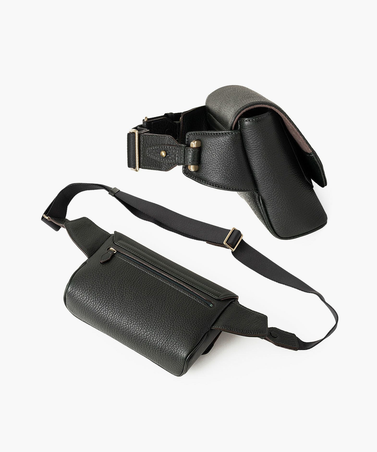 クラシックなデザインのフラップは、マグネット式で簡単に開け閉めができ、天ファスナーを設けて荷物の落下も防止。フラップで隠れている前面には、素早く出し入れしたいパスケースなどを入れられるフリーポケットを装備し、背面に設けたファスナーポケットは、革で覆った柔らかいコイルファスナーで洋服などにダメージを与えず、チケットなどの貴重なものを収納するのに最適です。また、背面と底面の間の繋ぎ目をなくした設計で、肩掛け時に体あたりがソフトになるように配慮。さらに、コーディネートを左右するショルダーベルトは、シルクのように上品な中空糸ナイロンテープを採用して、コートやジャケットにも合わせられるなど、軽量な機能性とともに見た目にもこだわっています。