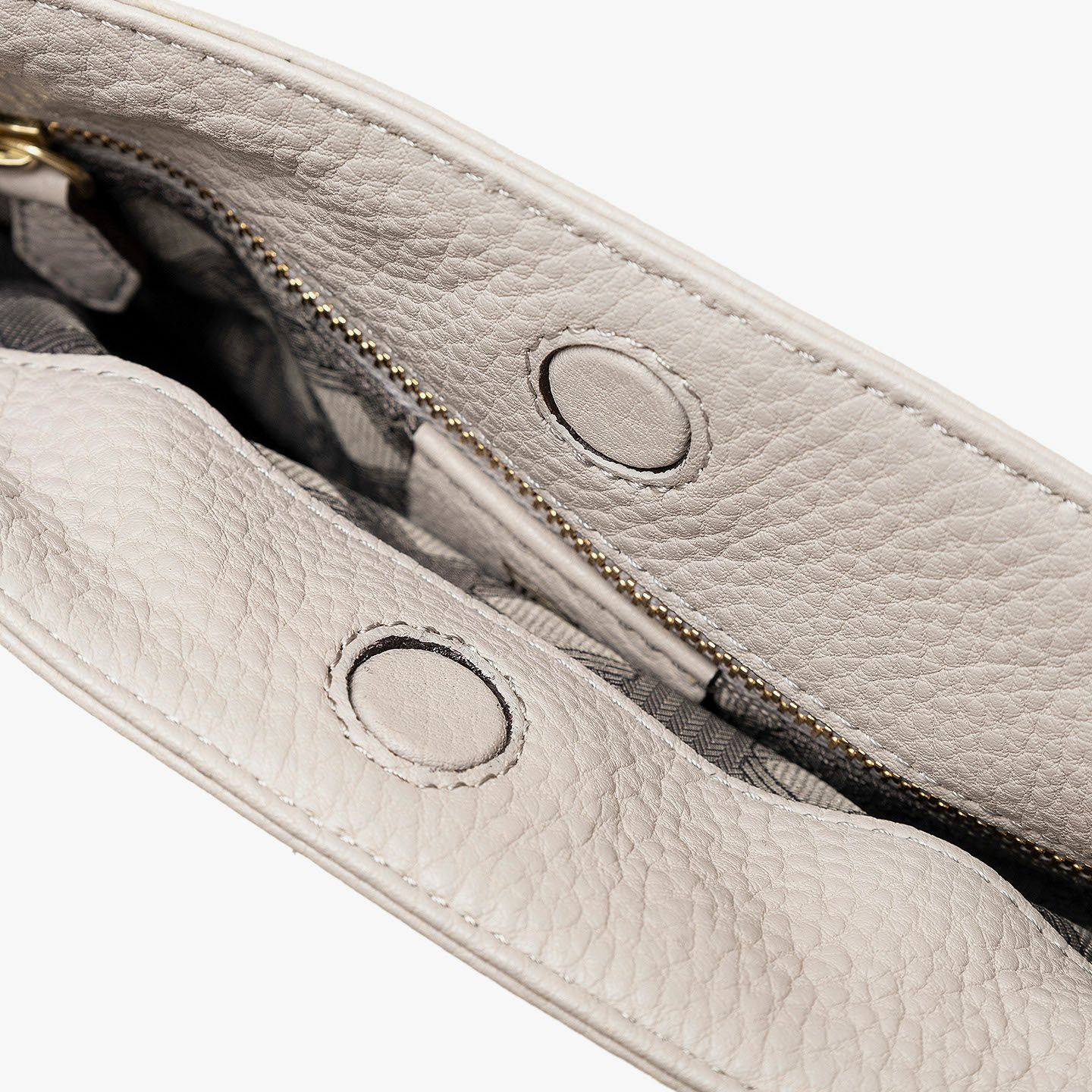 コーディネートを追求した流線形の立体的なデザインが、持ち歩く人たちのスタイリングを際立たせる、バッグブランド『ETiAM』の縦型ショルダーパック“Grace”。マグネット式のメインポケットをワンアクションで開閉して、バッグを見ずに出し入れできる利便性と、体に寄り添う程よいサイズ感ながら、しっかりと長財布を入れられる収納性が、ポケット感覚で優美に使いこなせる機能性へと昇華。シボ感が魅力的な外装「シュリンクレザー」から、ちらっと見えるオリジナル「真鍮金具」によるチャームの佇まいが、細めのショルダーベルトやカフスボタンのような接続金具とともに、さり気ない存在感でエレガントな印象を演出してくれます。