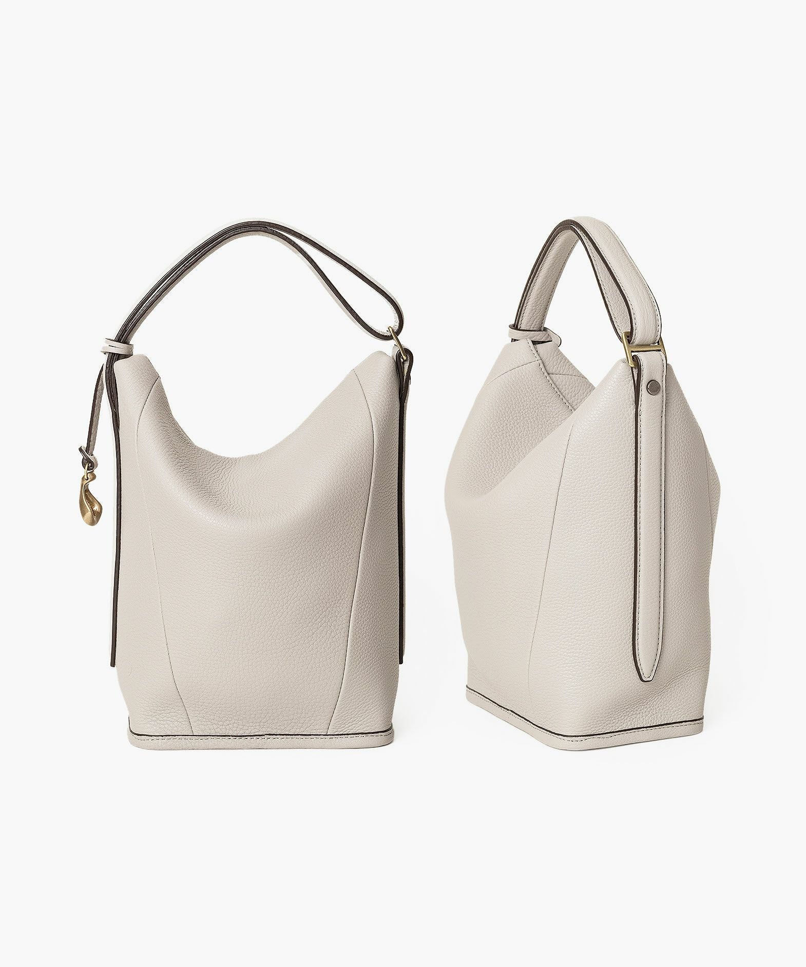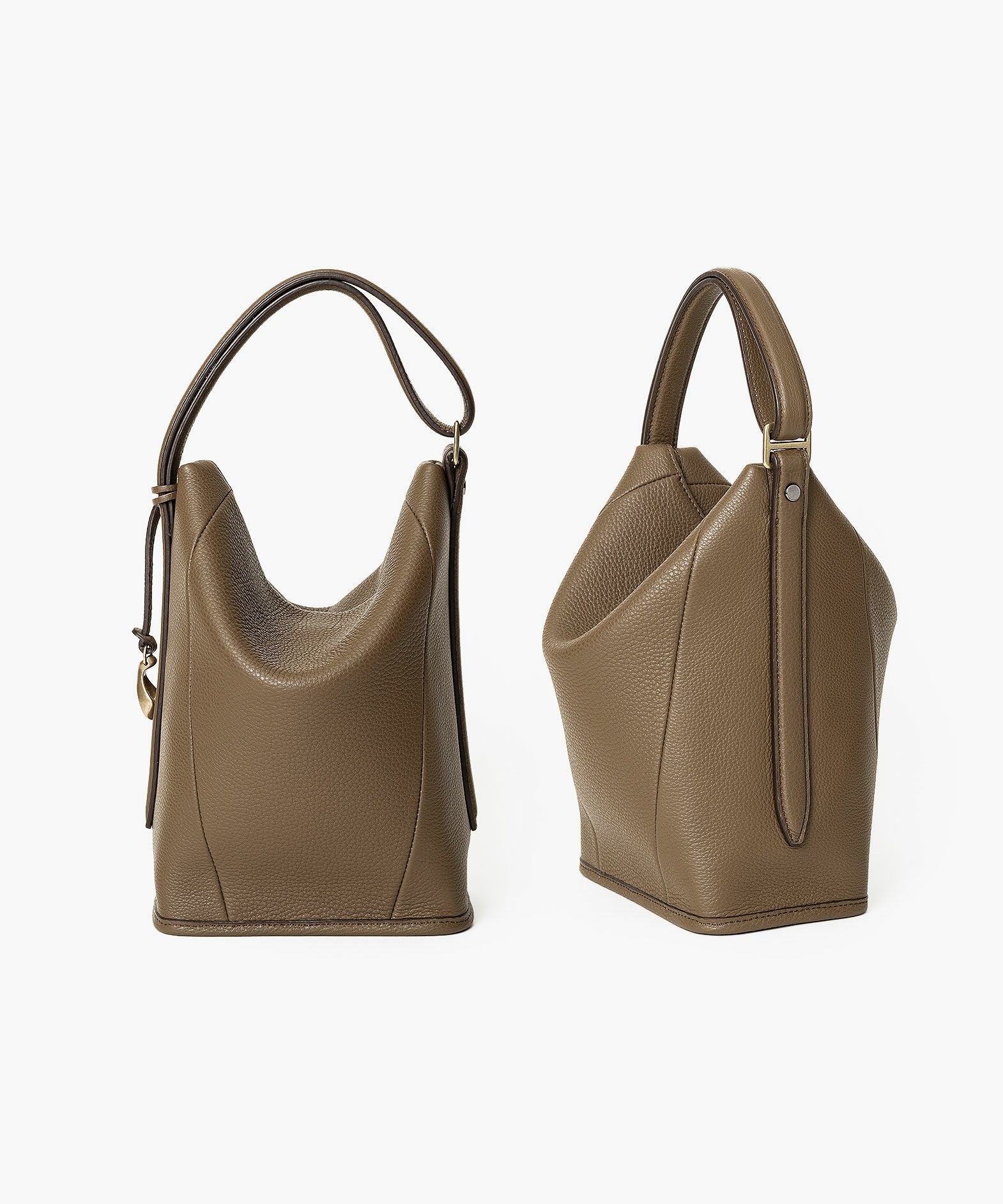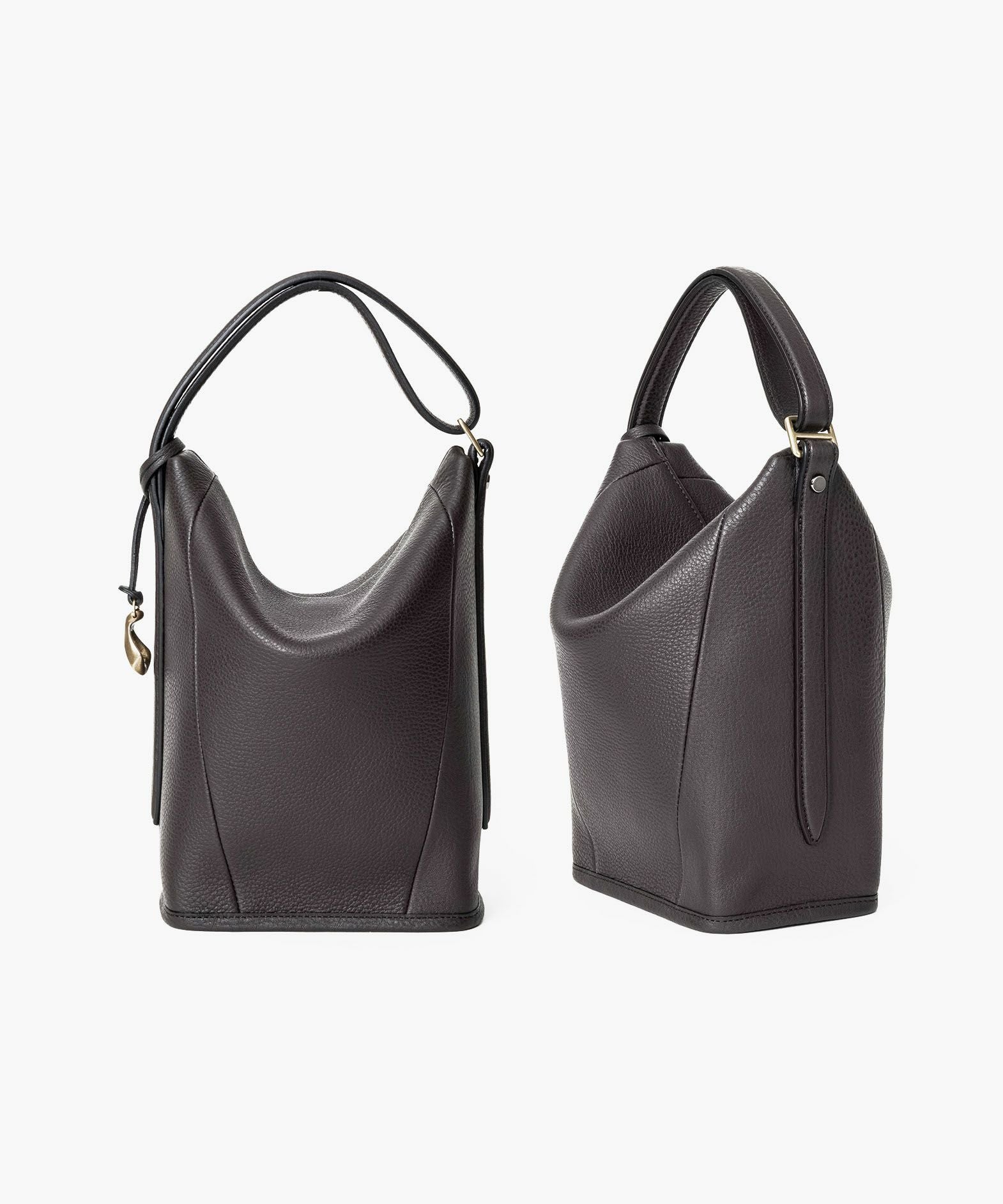 選ぶことへの“意味”を纏わせ、永遠に愛せるファッションアイテムの輝きで、時代や流行さえも超えていくバッグブランド『ETiAM』のハンド&バングル“Follow”。ハンドルを手首に引っ掛けて、自分を追い掛けるように軽快に持ち歩けるデザインで、ビジネススタイルとカジュアルスタイルが曖昧になりつつあり、ドレスコードも変化している現代に寄り添うデザインを追求。シボ感がエレガントな「シュリンクレザー」のシルエットが、二重のハンドルを1本だけ伸ばして上部を畳むことで、見た目の印象が大きく変わるのも魅力。コンパクトなサイズ感ながら、スタイリッシュなまま連れて行ける装いが、大人のスマートさを演出してくれる。