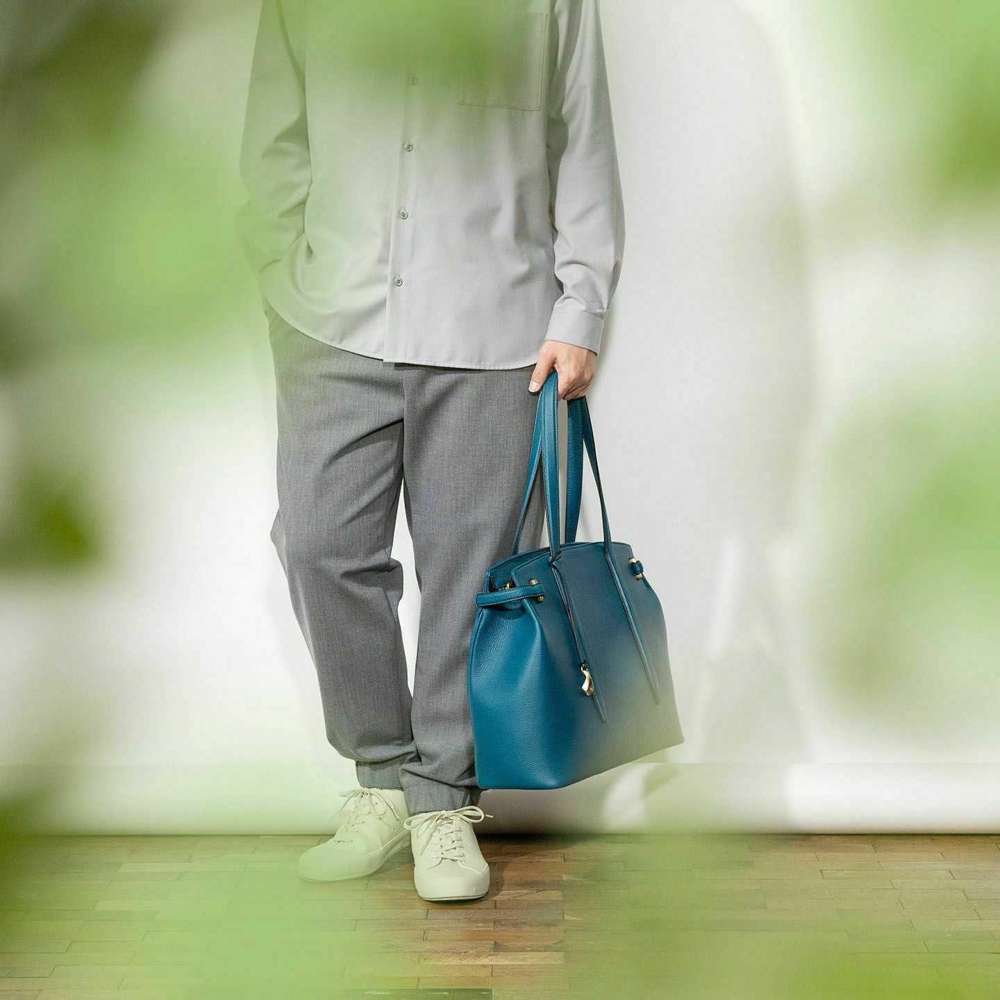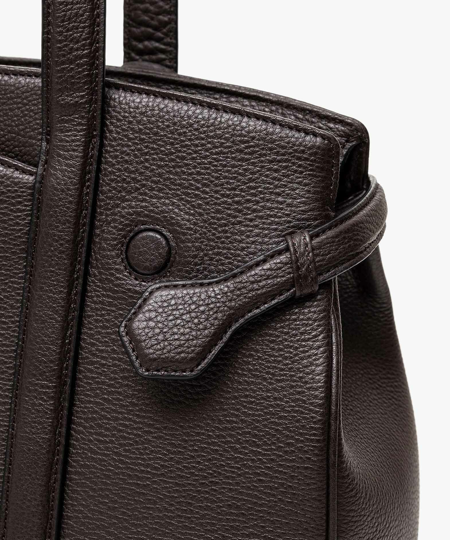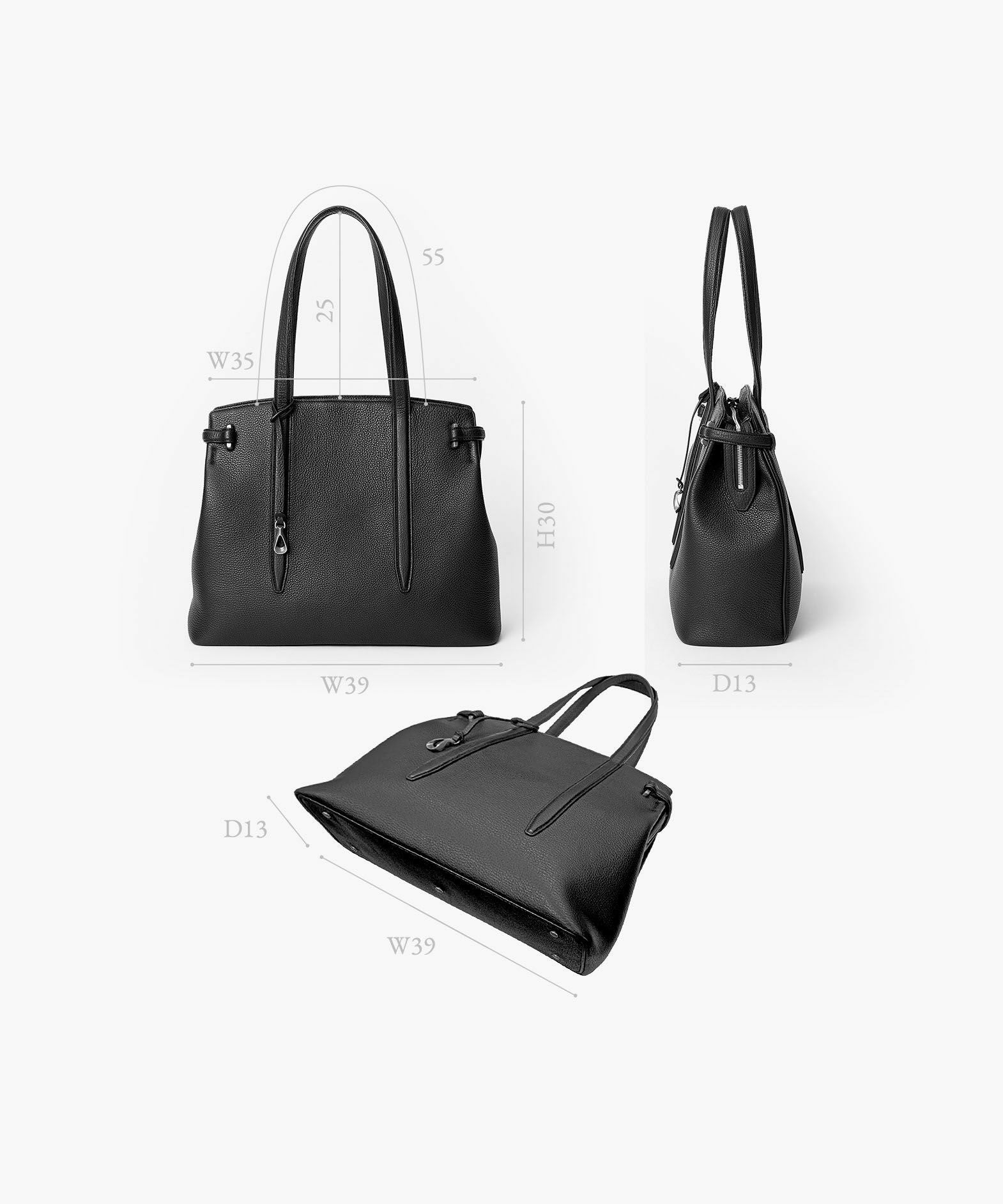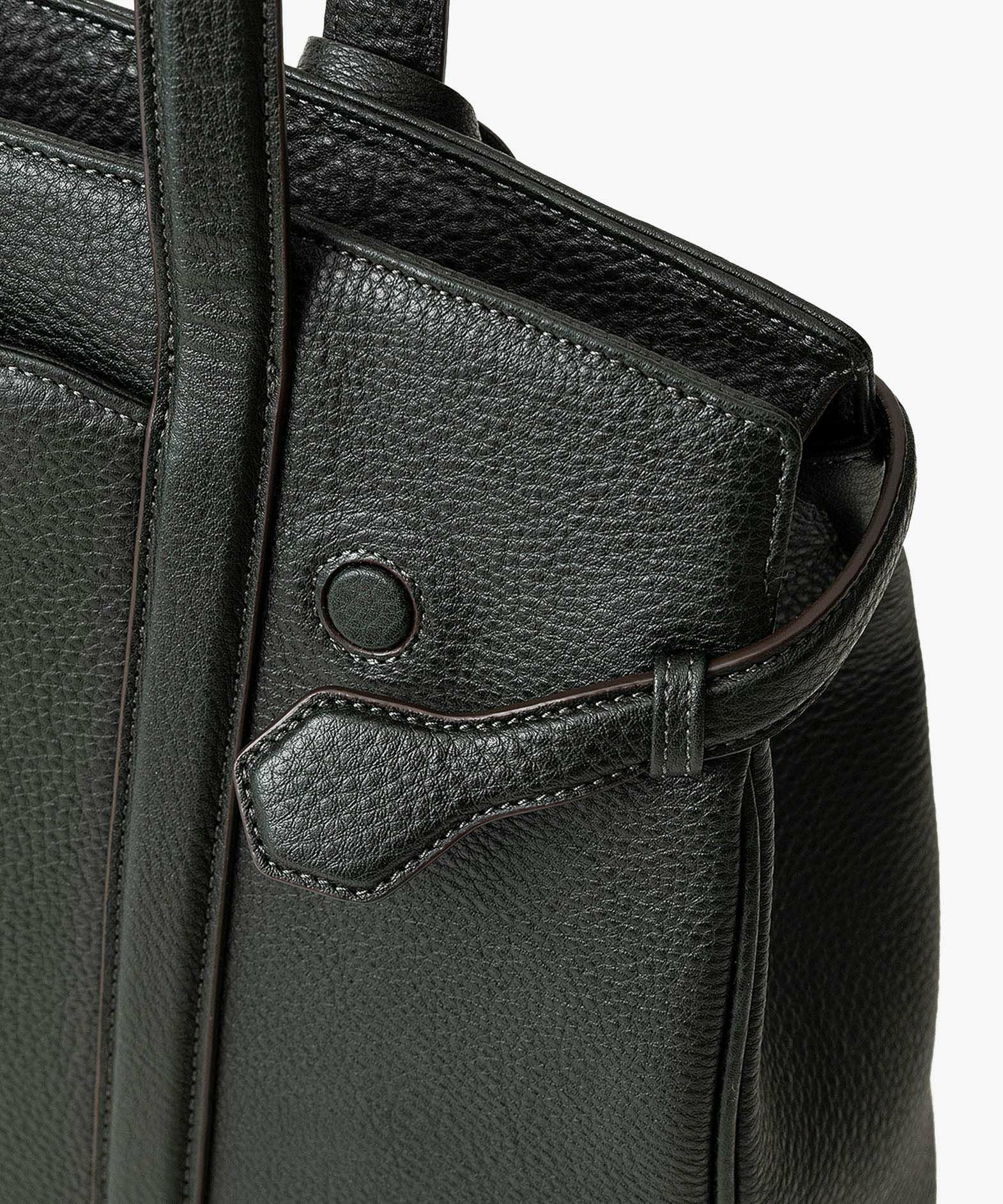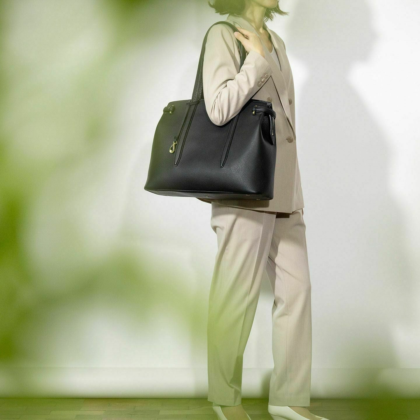 13インチのノートPCを入れられ、電車の座席・車の助手席・肩掛け時などでもかさばらない、ゆとりある使い心地のサイドベルトトート“Afford”。シボ感が魅力的な「シュリンクレザー」による、フロントとマチをシームレスで繋いでいる柔らかなカーブが、リラックス感のあるソフトな印象へ。デザインの象徴になっているサイドベルトは、両サイドのオリジナル真鍮金具を起点に、背面のマグネット留めへと、マチの上部を流れるシャープな横ラインが魅力的。YKK最高品質のエクセラWファスナーを開けてマチを開くと、マグネットが自然に外れて出し入れしやすい使い心地も魅力。緩やかなカーブのボディが、余裕のある気分ももたらしてくれる。