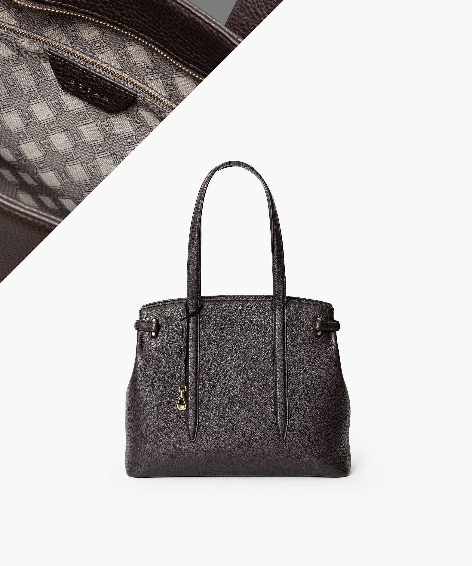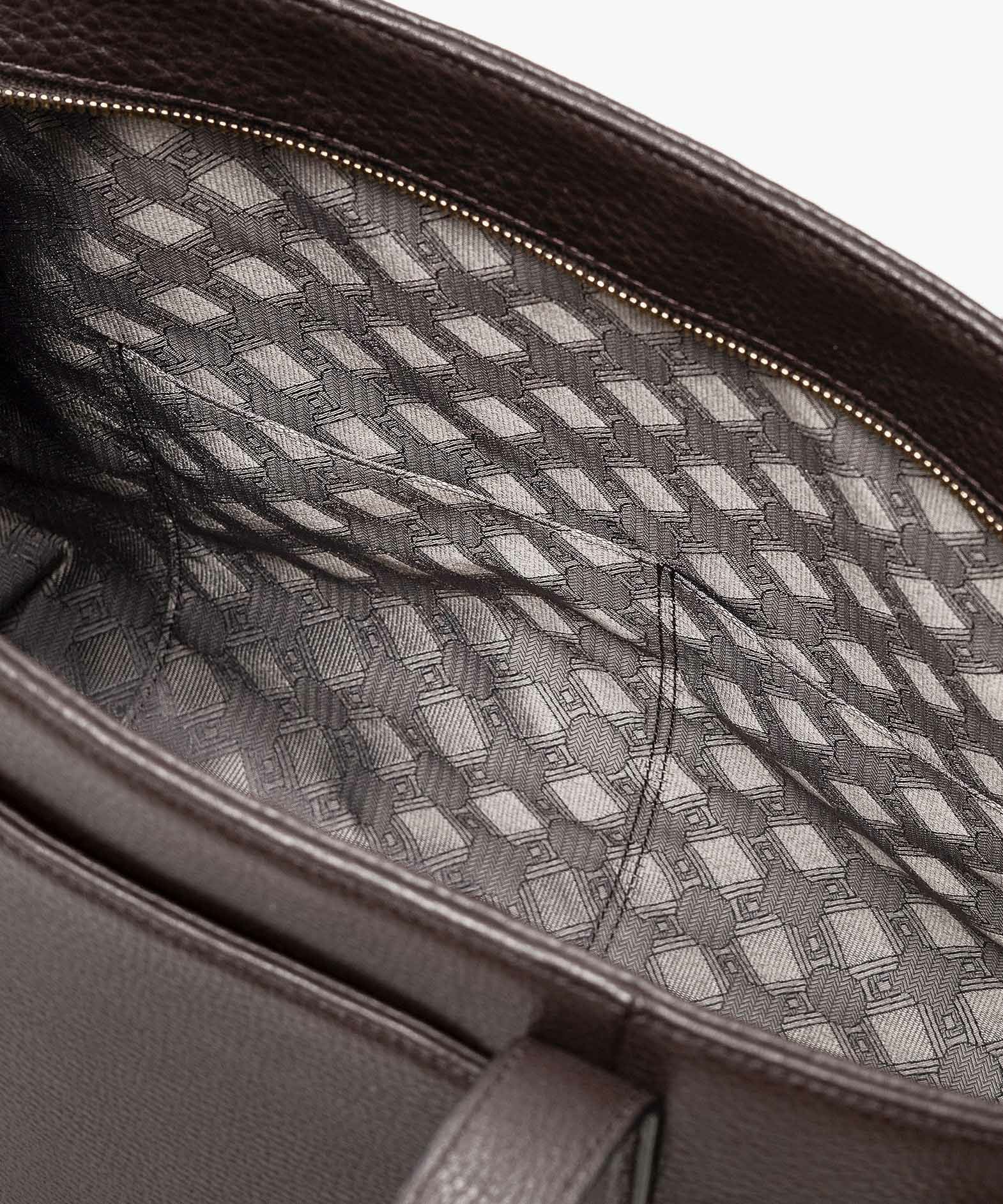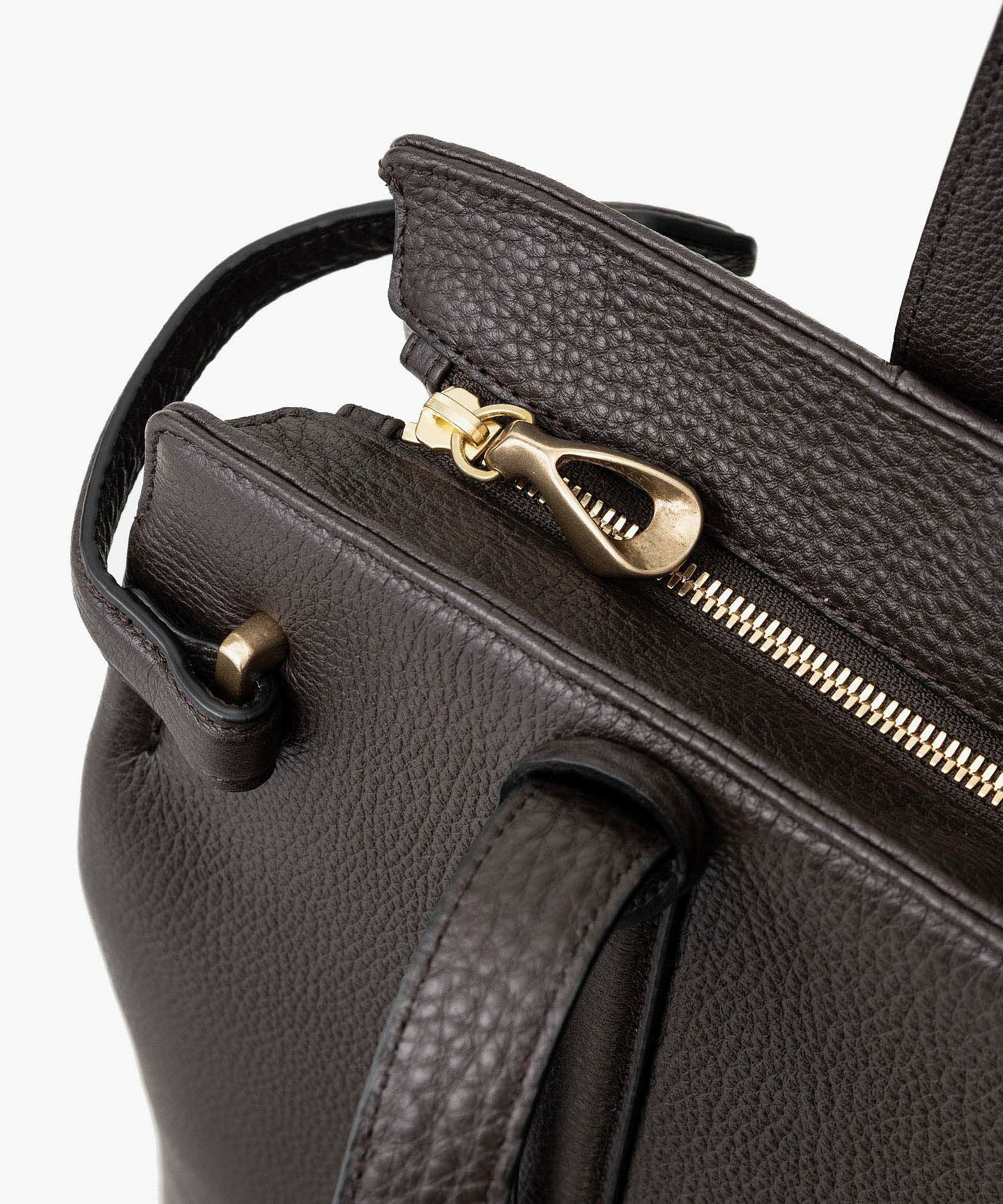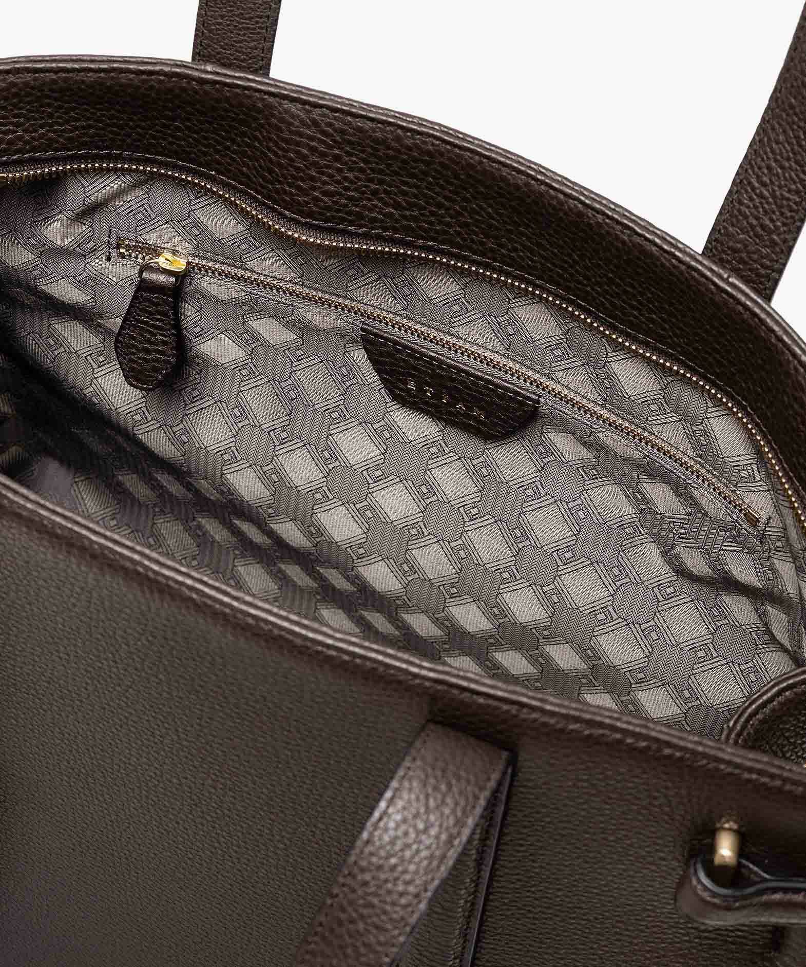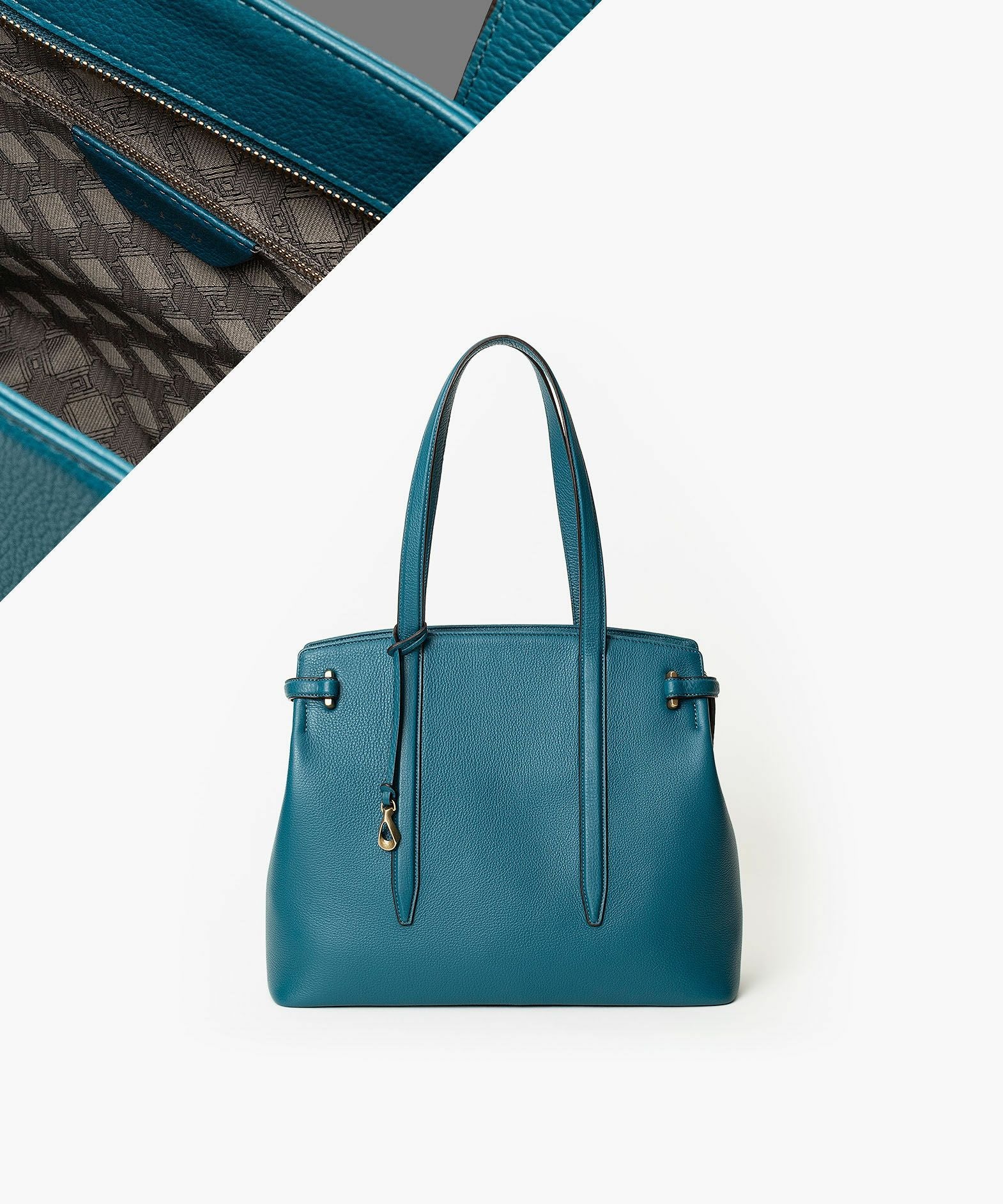 13インチのノートPCを入れられ、電車の座席・車の助手席・肩掛け時などでもかさばらない、ゆとりある使い心地のサイドベルトトート“Afford”。シボ感が魅力的な「シュリンクレザー」による、フロントとマチをシームレスで繋いでいる柔らかなカーブが、リラックス感のあるソフトな印象へ。デザインの象徴になっているサイドベルトは、両サイドのオリジナル真鍮金具を起点に、背面のマグネット留めへと、マチの上部を流れるシャープな横ラインが魅力的。YKK最高品質のエクセラWファスナーを開けてマチを開くと、マグネットが自然に外れて出し入れしやすい使い心地も魅力。緩やかなカーブのボディが、余裕のある気分ももたらしてくれる。