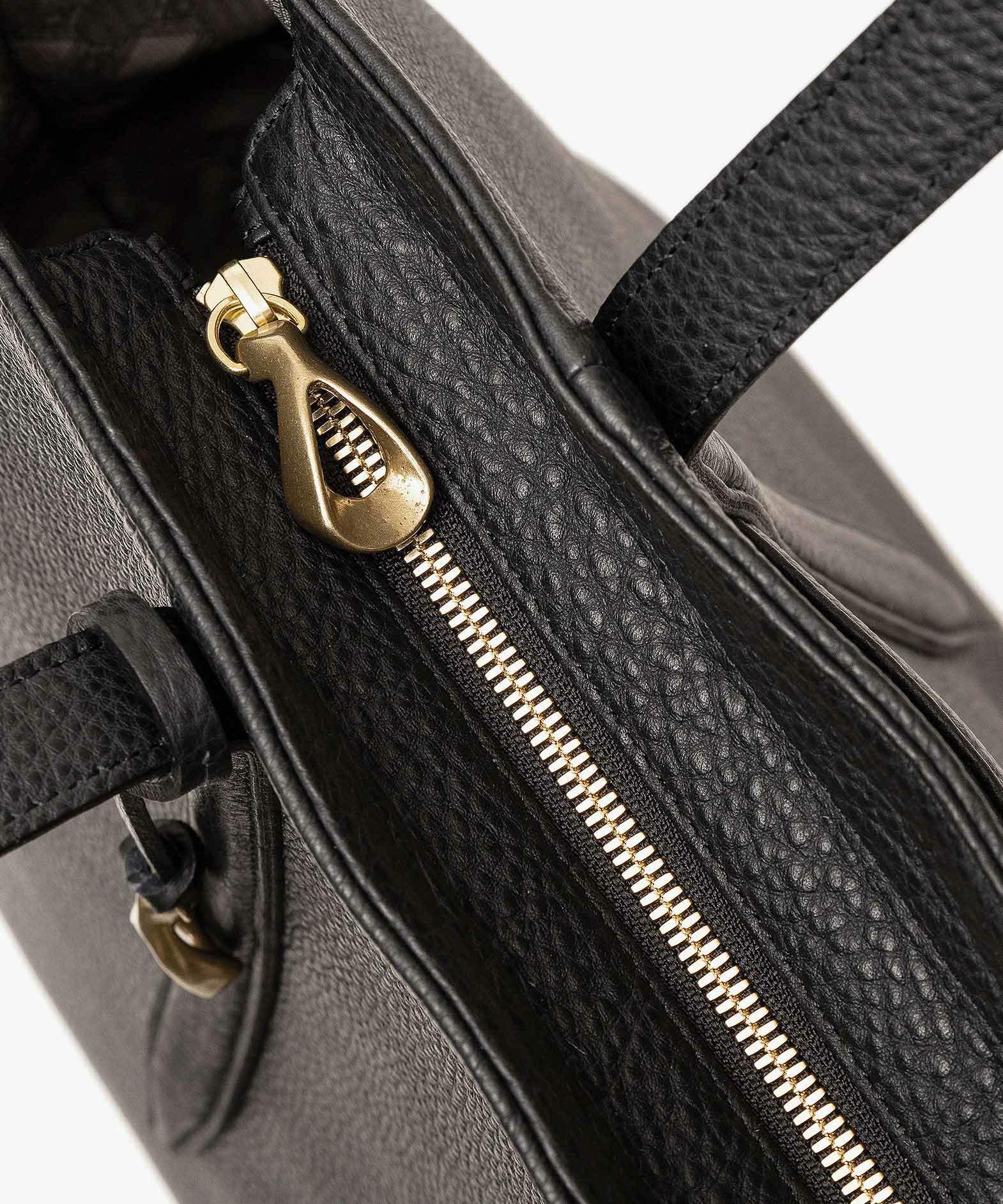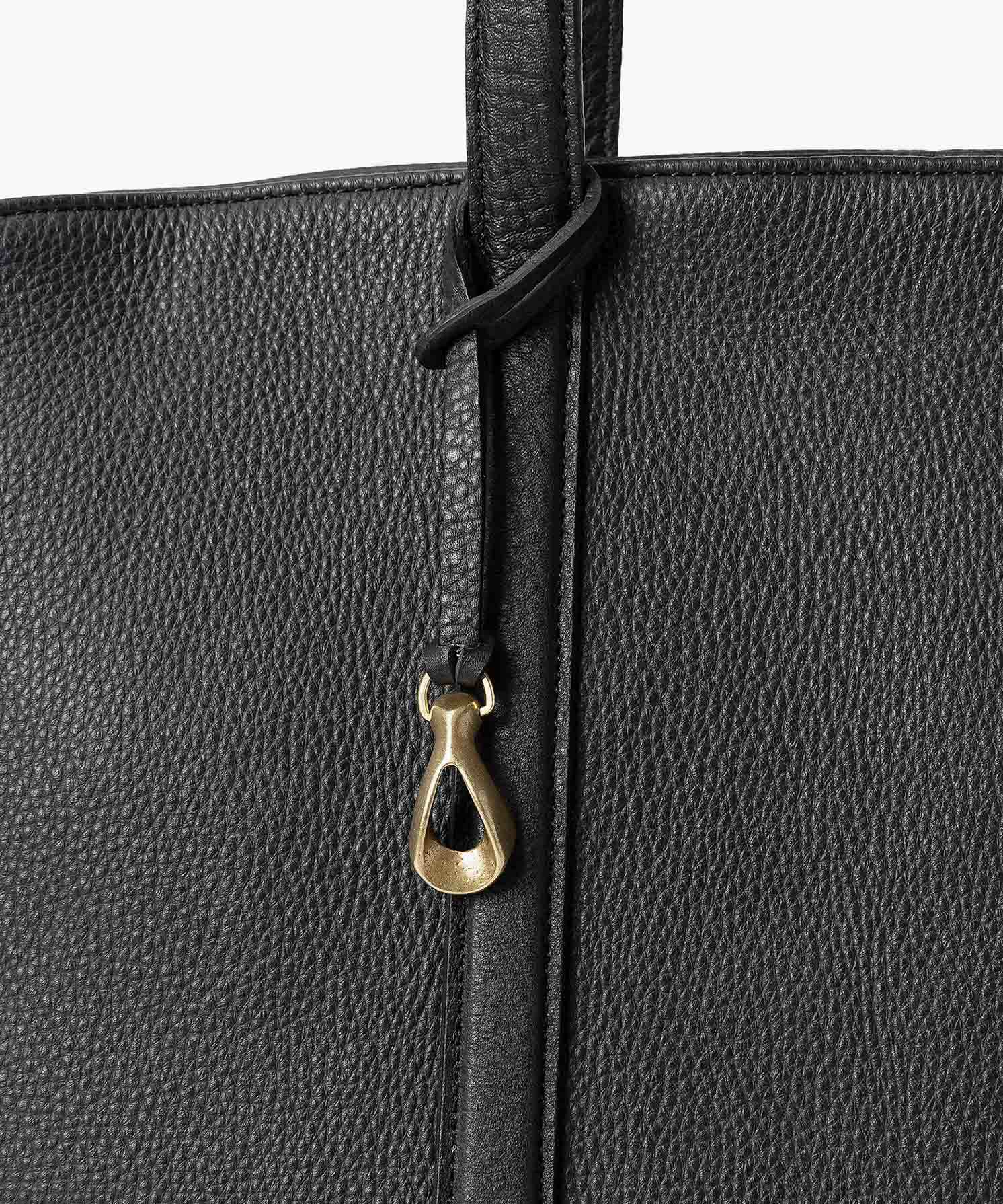 ファスナー開閉式で、B4サイズ・15インチのノートパソコンが収納可能。マチを内側に折り畳んでコンパクトにすることができ、用途に合わせて2通りのシルエット・サイズを楽しめます。また、バッグの上部を、左右のマチに向かって下がっていくラインにすることで、マチを内側に折り畳んでも天ファスナーがぶつからない機能性と、個性的でエレガントな見た目の美しさを両立。さらに、くびれをセンターに施した底マチは、肩掛けするときに体にフィットしてスムーズに持ち歩ける実用性と、独特のライン&フォルムがアクセントになるデザイン性を兼ね備えています。