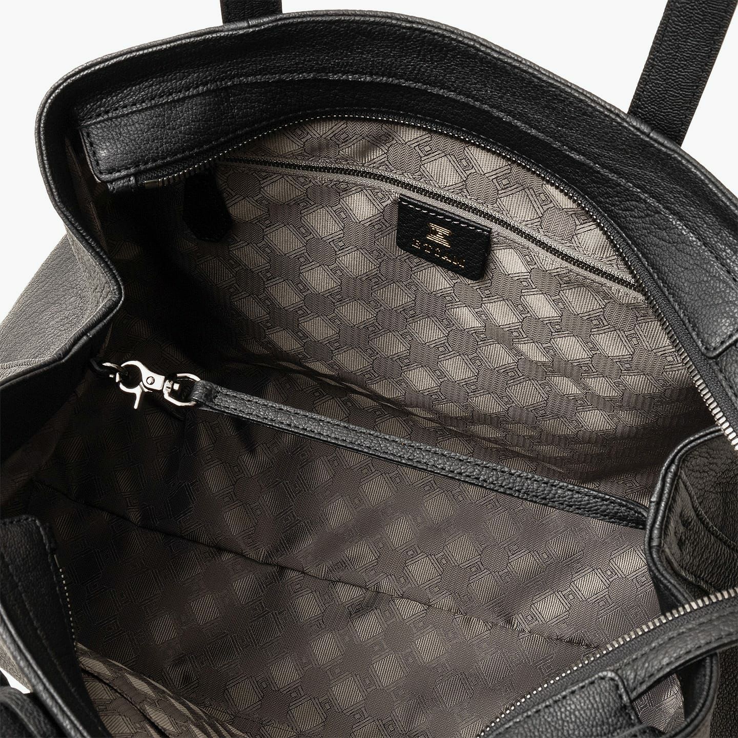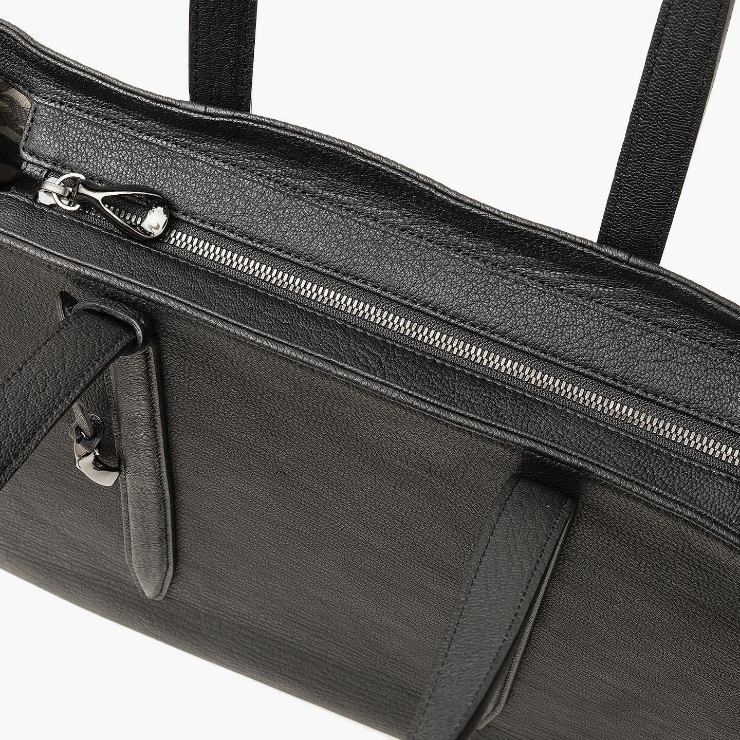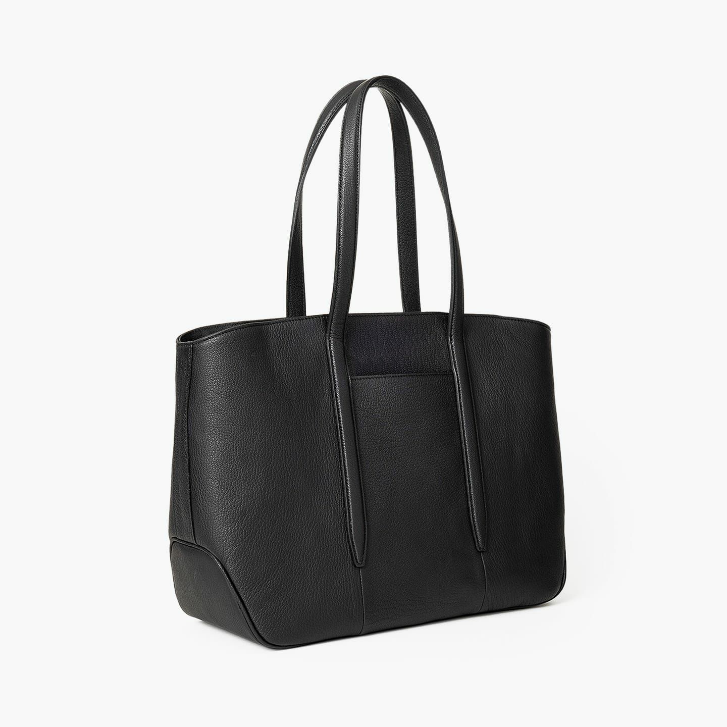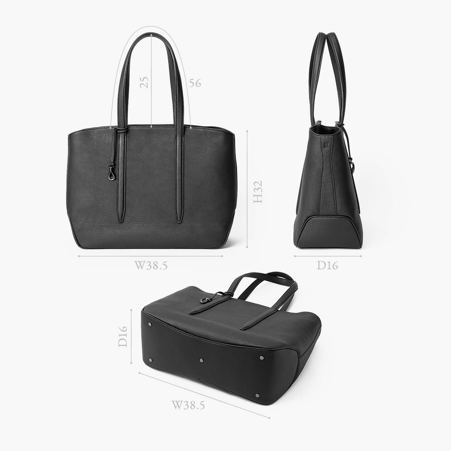 B4サイズ・15インチのノートパソコンを収納できる、ファスナー開閉式の設計。内装マチに設けたベルトを使うことで、マチを内側に折り畳んでコンパクトにでき、2通りのシルエット・サイズを楽しみながら、用途に合わせて柔軟に収納・携帯できます。また、左右のマチに向かって下がっていく上部のラインは、マチを内側に折っても天ファスナーを邪魔しない機能性と、個性的なシルエットへと導くデザイン性を両立。さらに、底マチのセンターには、肩掛けするときに体にフィットしてスムーズに持ち歩けるように、くびれを施しているフォルムにした実用性も併せ持たせています。