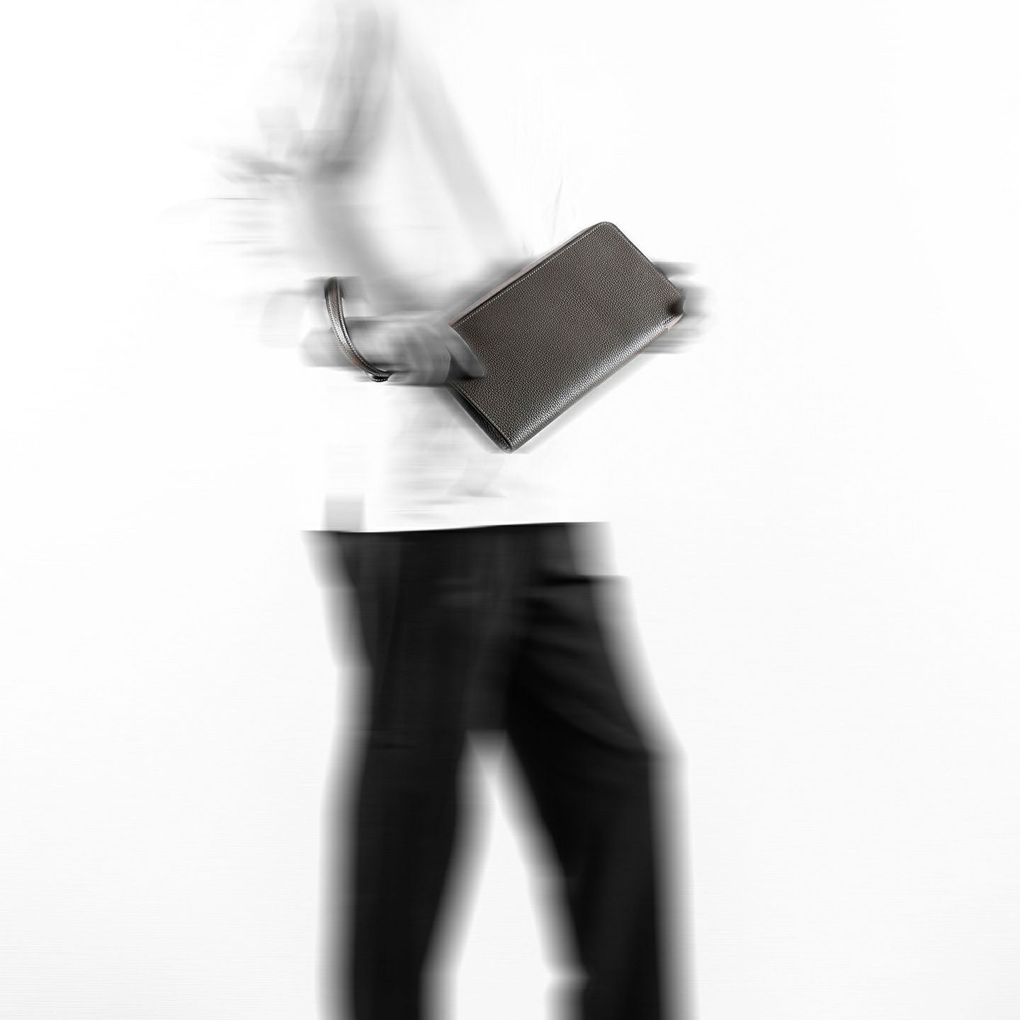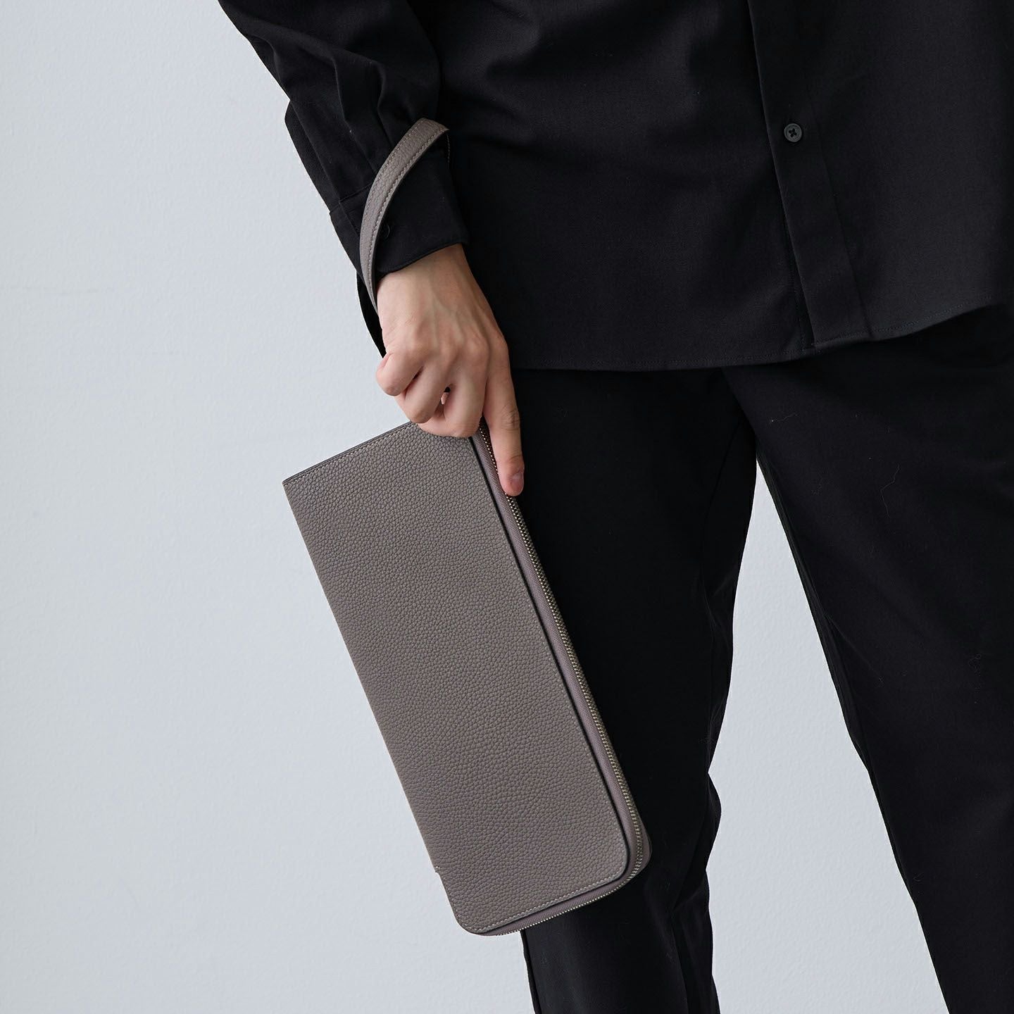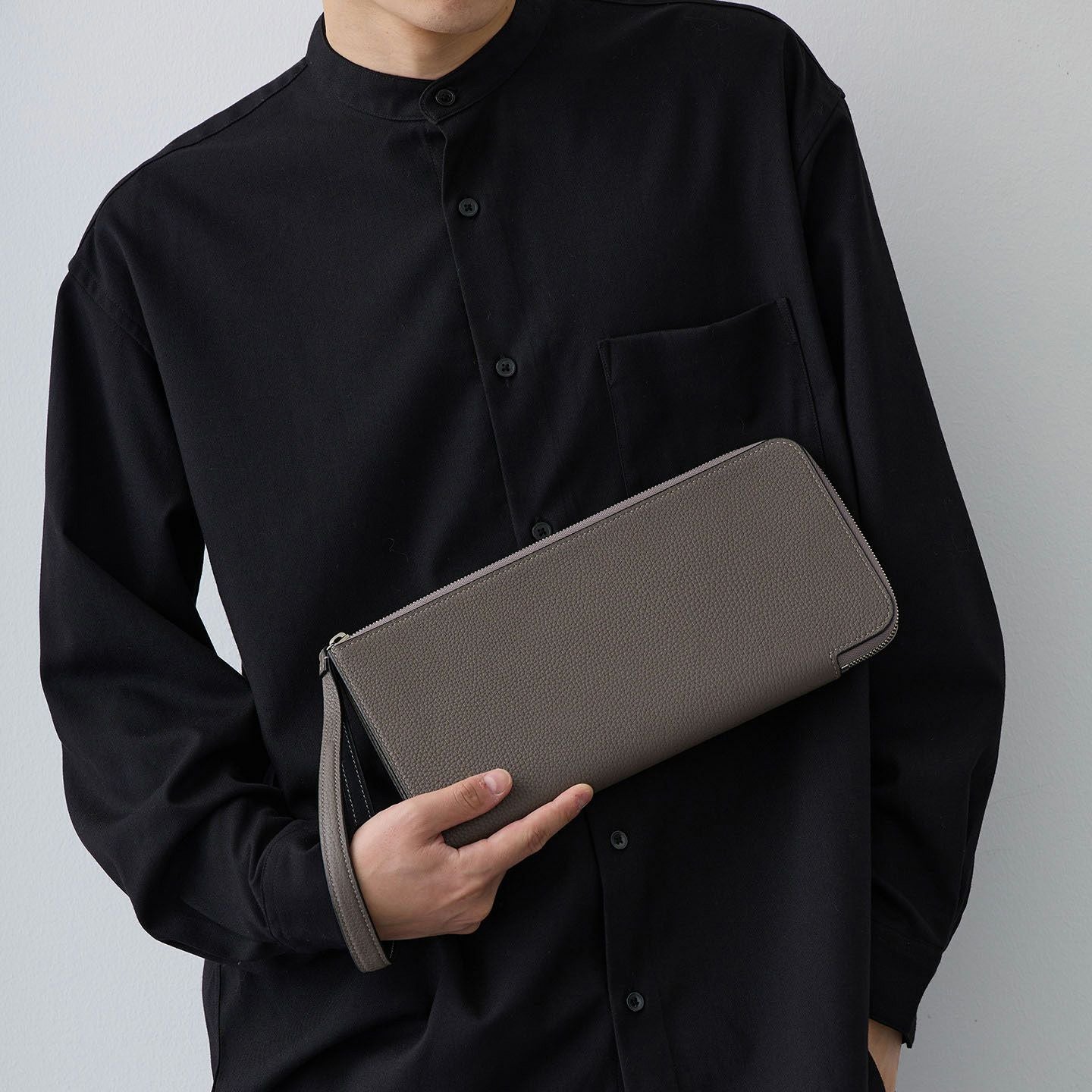 1948年に創業したフランス最大級の名門・デュプイ社(DU PUY)は、「キング・オブ・タンナー」とも呼ばれる世界最高峰のカーフ専門タンナー。同じフランスで発展したラグジュアリーブランドを、素材開発と最高級水準を保持し続けることで、支えて続けてきています。そのデュプイ社の顔とも言えるカーフ「トゴ」は、クロム鞣しのシュリンクレザーで、カーフならではの緻密な繊維と深く細かいシボが特長。上質で繊細な仕上がりでありながら、しなやかな手触り・感触を楽しめるとともに、キズや汚れにも強くて型崩れもしにくい柔軟性を備えているので、デイリーユースにも最適です。さらに、使い込むほどに馴染んでいき、味わい深くなっていく経年変化を楽しめるのも魅力。さらに、独特のしなやかさ・きめ細かさ・発色の良さなどから、世界中の高級メゾンにも支持されているマテリアルです。