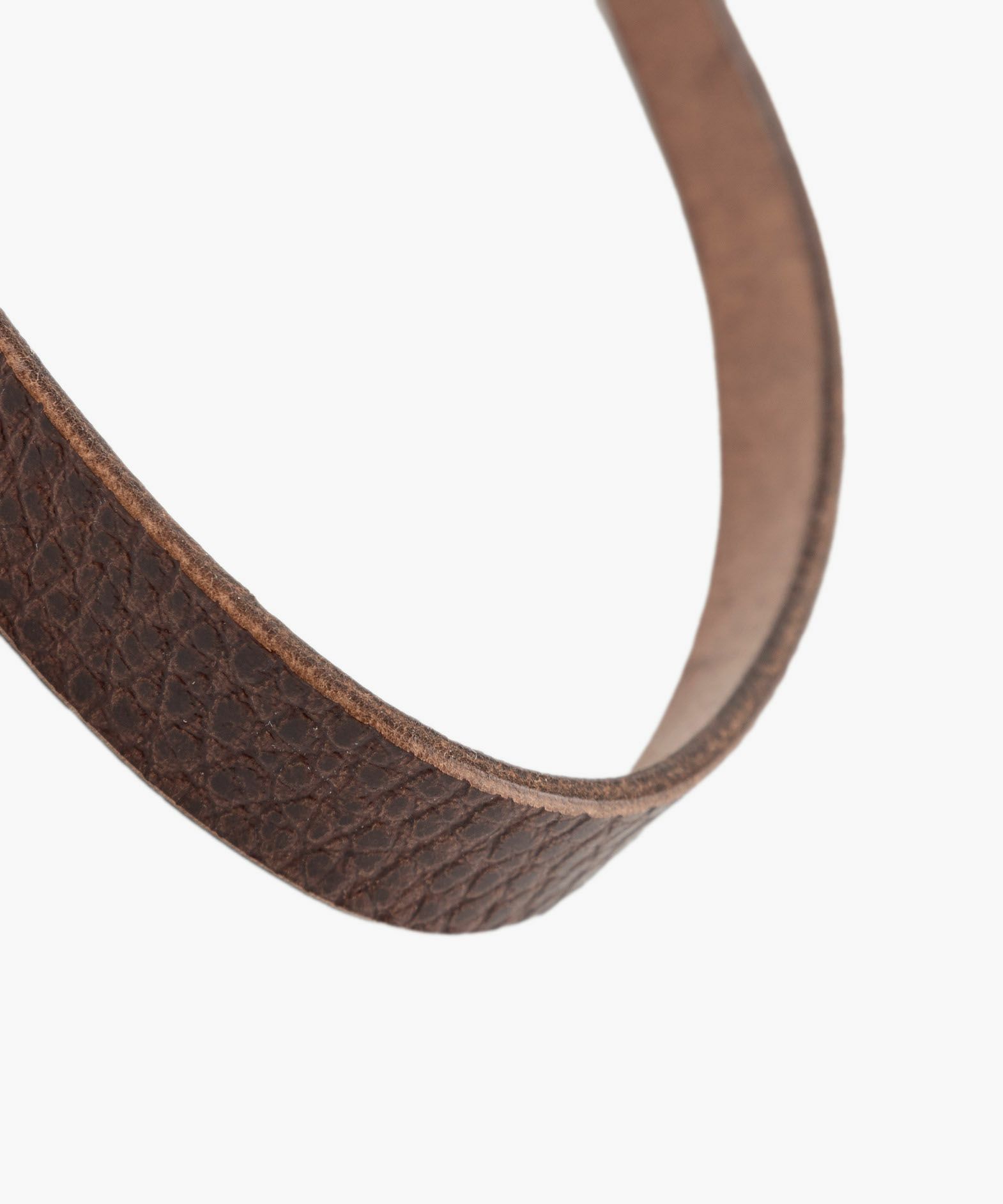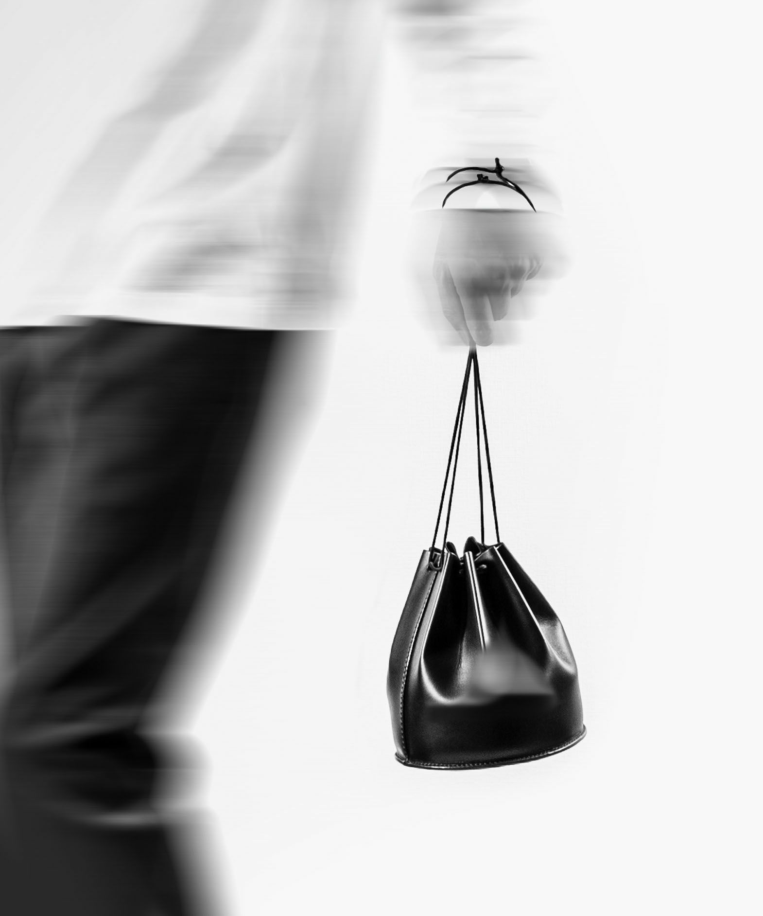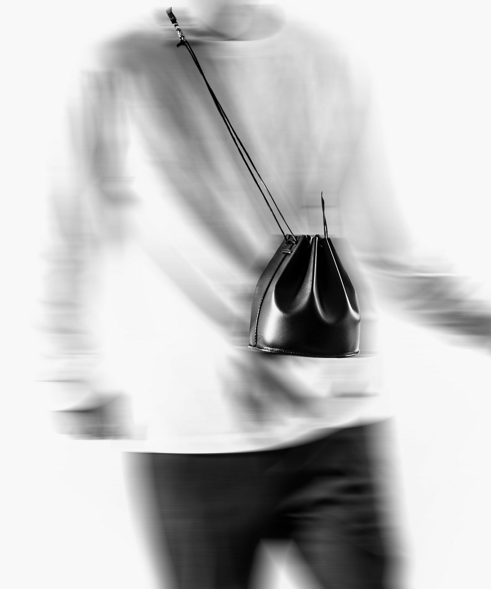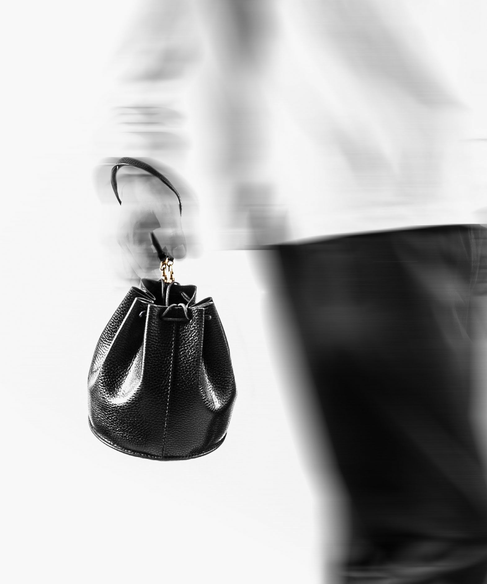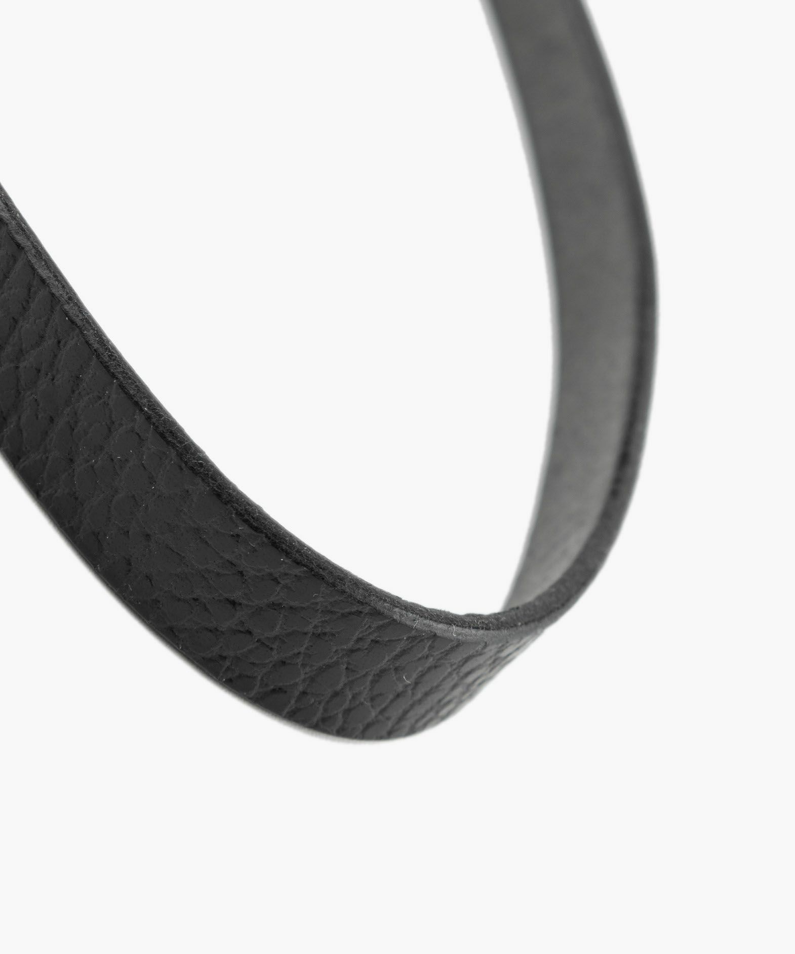 巾着バッグ“AKATSUKI”に装着することで、ハンドバッグやショルダーバッグのように使うことができる、巾着バッグ“AKATSUKI”用アタッチメントストラップ。本体の巾着バッグと同じく、ブラック・ダークブラウンの2色から、スムース・型押しの2タイプと組み合わせてセレクトオーダー。カジュアル感のある革紐ではなく、ストラップを手持ちハンドルとして扱えば、フォーマルな場面にも似合うハンドバッグのようなエレガントな印象に。ストラップを革紐の結び目と繋げて長くすれば、ショルダーバッグの肩当てみたい使いこなせて斜め掛けすることも。このアタッチメントストラップを装着することで、巾着バッグの概念を超えた、さまざまなシチュエーションで持ち歩ける機会を広げてくれる。