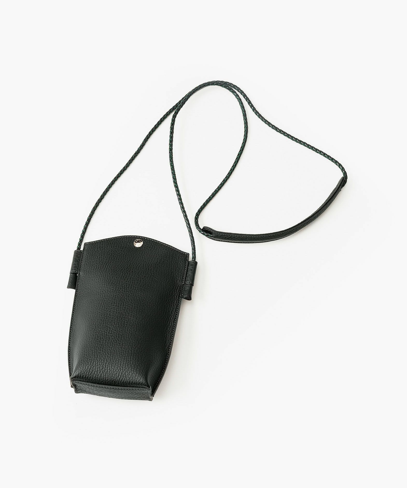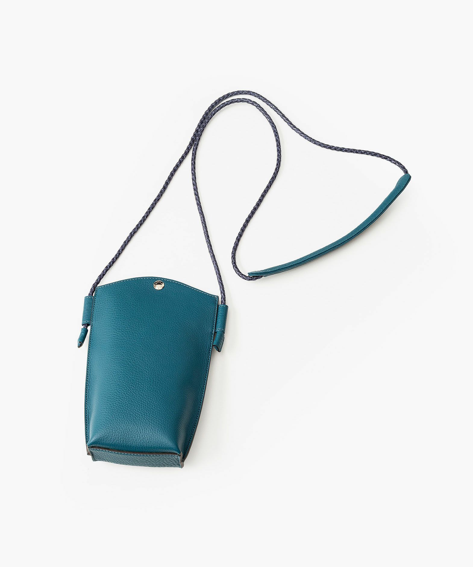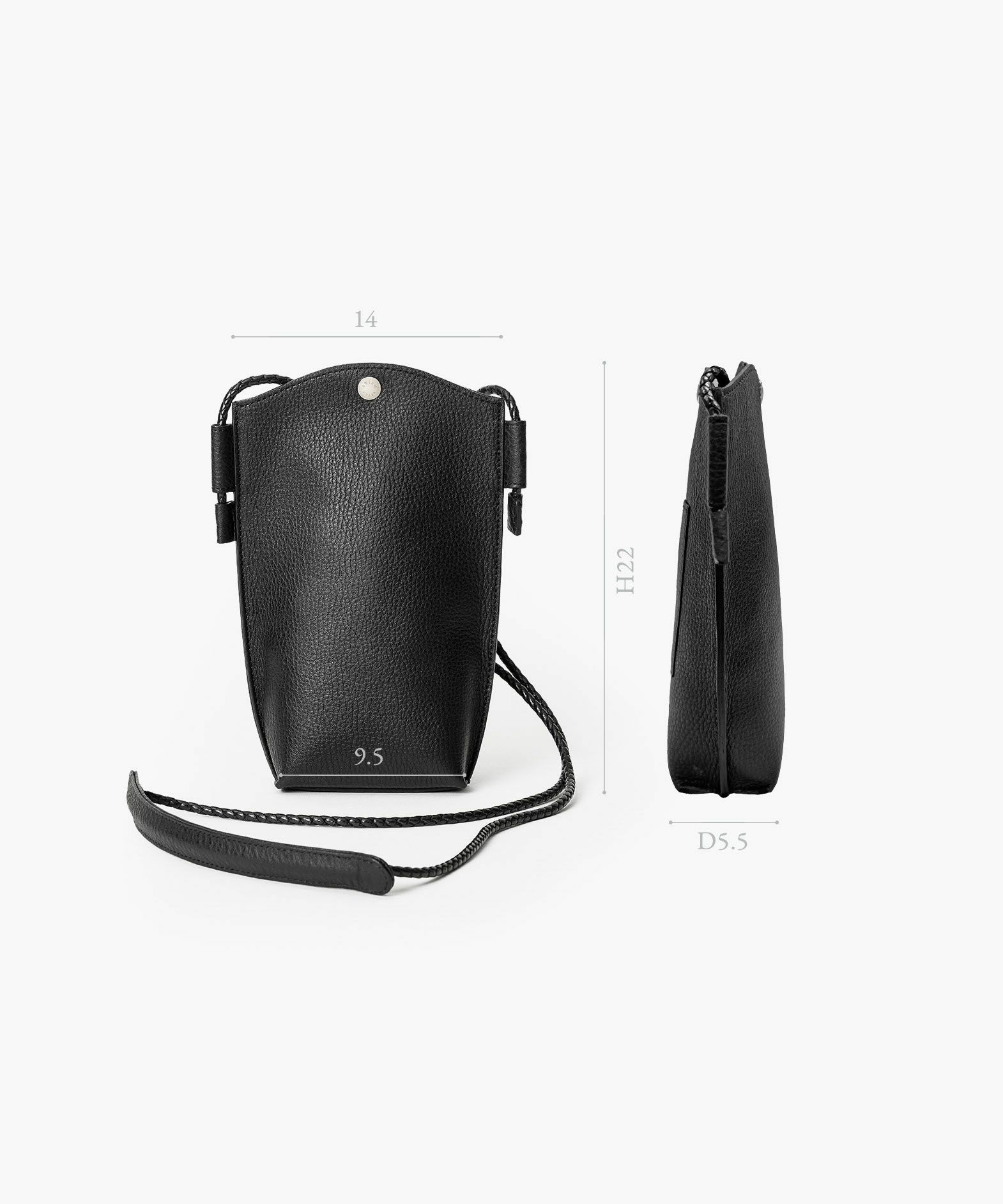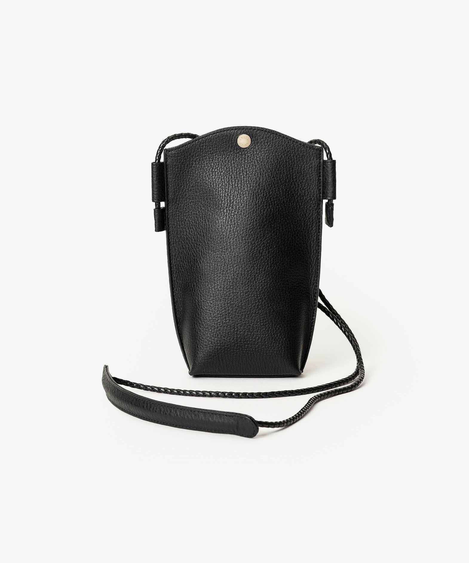 貝のような円形状のデザインとともに、スマートフォンなどを軽やかに携えられる、モバイルショルダーバッグ“Shell”。シボ感が美しい外装の「シュリンクレザー」は、前面・底面・背面に繋ぎ目がない一枚仕立てで、洗練されたエレガントな印象へ。上部の横幅を広くして下部をコンパクトすることで、収納物を見渡しやすく出し入れしやすい快適さを実現。メインポケットには、スマートフォン2台をはじめ、スマホ1台・ミニ財布・フラグメントケース・名刺入れ・パスケース・文房具などを、フレキシブルに組み合わせた収納が可能。内装にはポリエステル製スエードを採用し、スマホ画面などにもキズを付けずに、やさしく携帯できる機能性も。背面のカードポケットには、クレジットカード・交通系ICカード・名刺などを入れられて便利。程よいサイズ感のポケットをプラスするように、さまざまなシーンへ連れて行ける。