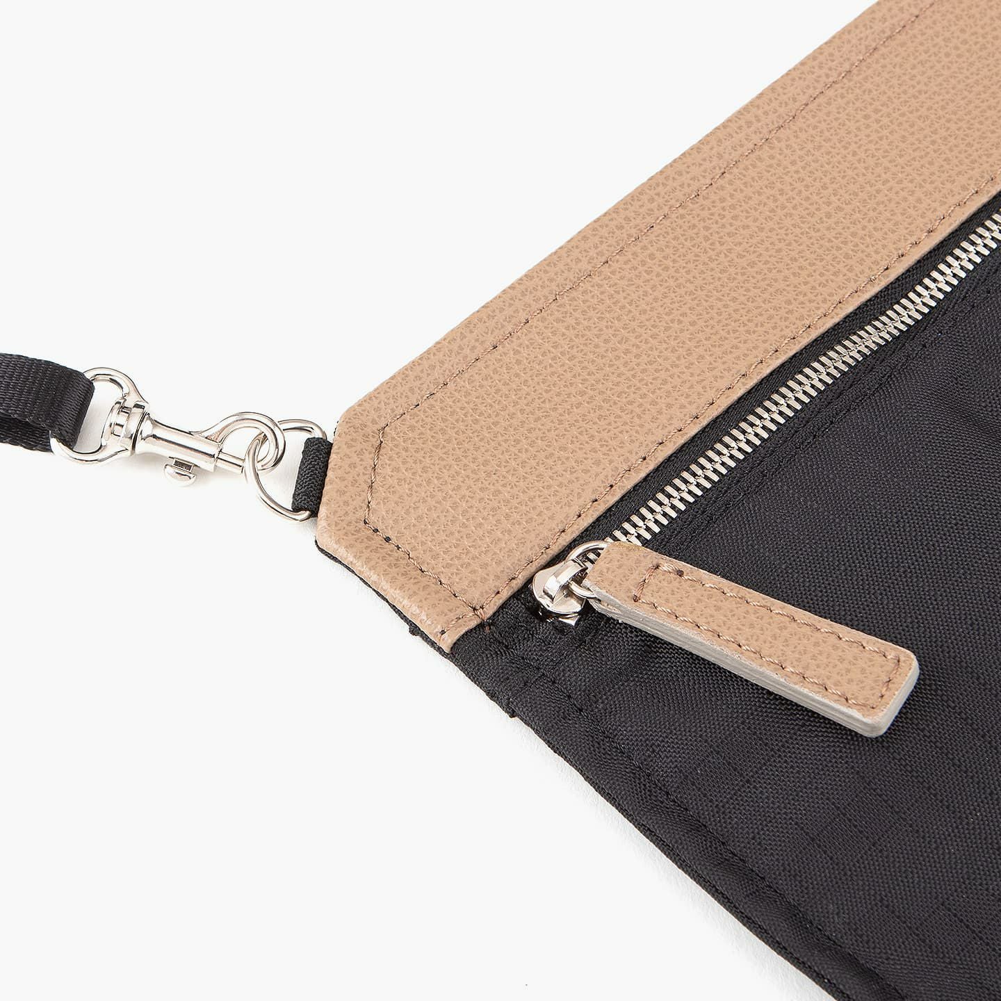 ミニマムなサイズに、細かな工夫と作りを凝縮。携帯電話・二つ折り財布・カードケースなど高さ150mmまでなら、ファスナーポケットに収納できるなど、実用的な設計を追求しています。さらに、高級革バッグを長年作っている熟練職人の縫製などにより、「パラシュートクロス」と「クランブス」をバランス良く組み上げ、実用的な耐久性と丁寧な仕上げで安心して使えるクオリティーを実現。デザインのアクセントでもある「クランブス」の美しい質感が、ハイセンスなファッション性をさらに高めています。