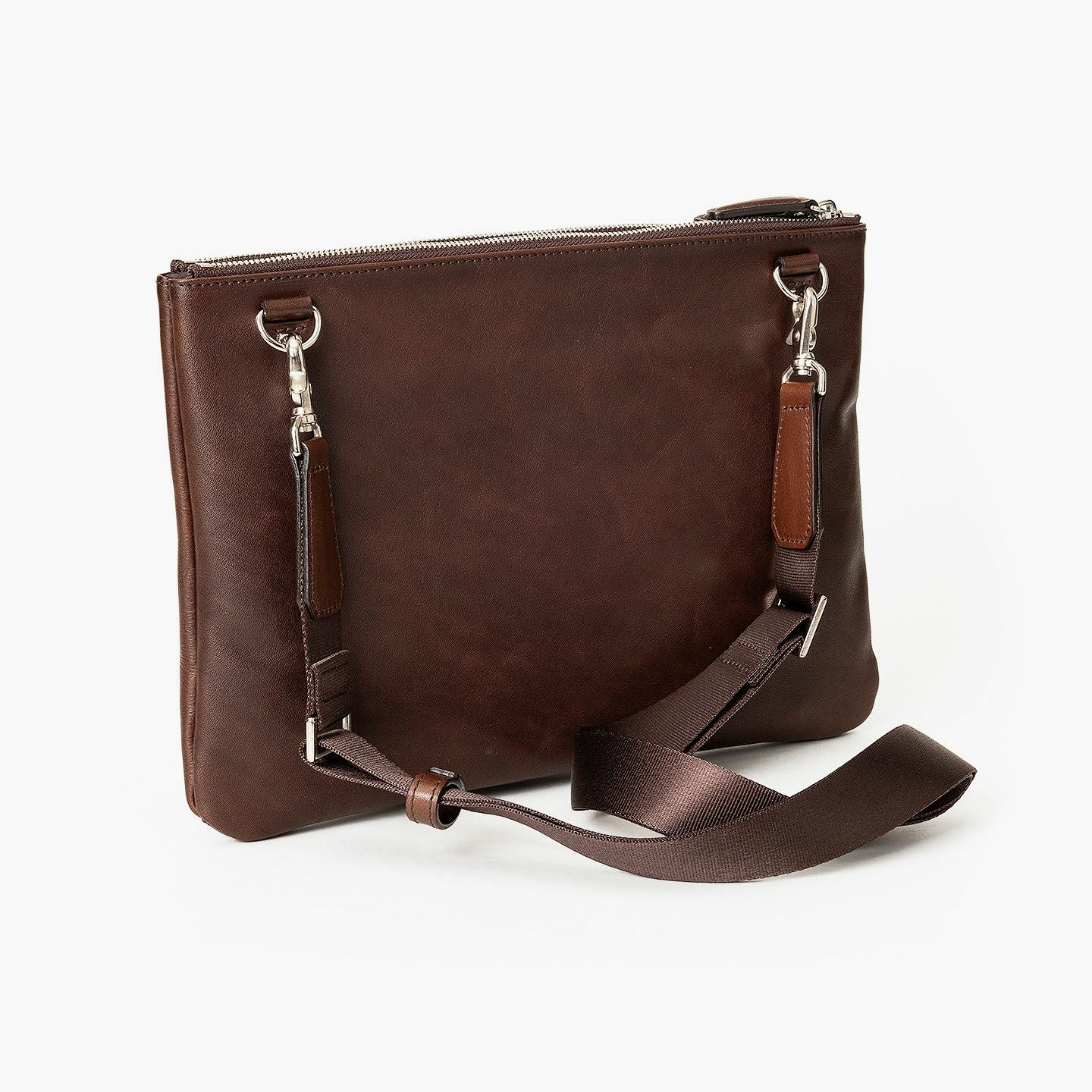 70年にわたる鞄作りで培ってきた技術&ノウハウと、熟知したデザイン&設計アイデアで、独創的な三層収納を叶えさせた2Wayサコッシュ。マチ幅を抑えたスリムなシルエットながら、2つのファスナー収納の間にマグネット付き収納を備えた三層構造で、見た目以上の高い収納力を実現。さらに、ポケット内にも適材適所なポケットを設けることで、自分らしくスマートな区分け収納も。職人の手で1つ1つ吹き付ける希少な特殊加工「シャドウ仕上げ」を施した、外装の「姫路産シュリンクオイルレザー」が1点もののような味わい深いアンティーク感で魅了。ショルダーベルトを取り外せば、クラッチバッグやバッグインバッグとしても活躍し、さまざまなシーンで大人のスタイリッシュさを奏でてくれる。