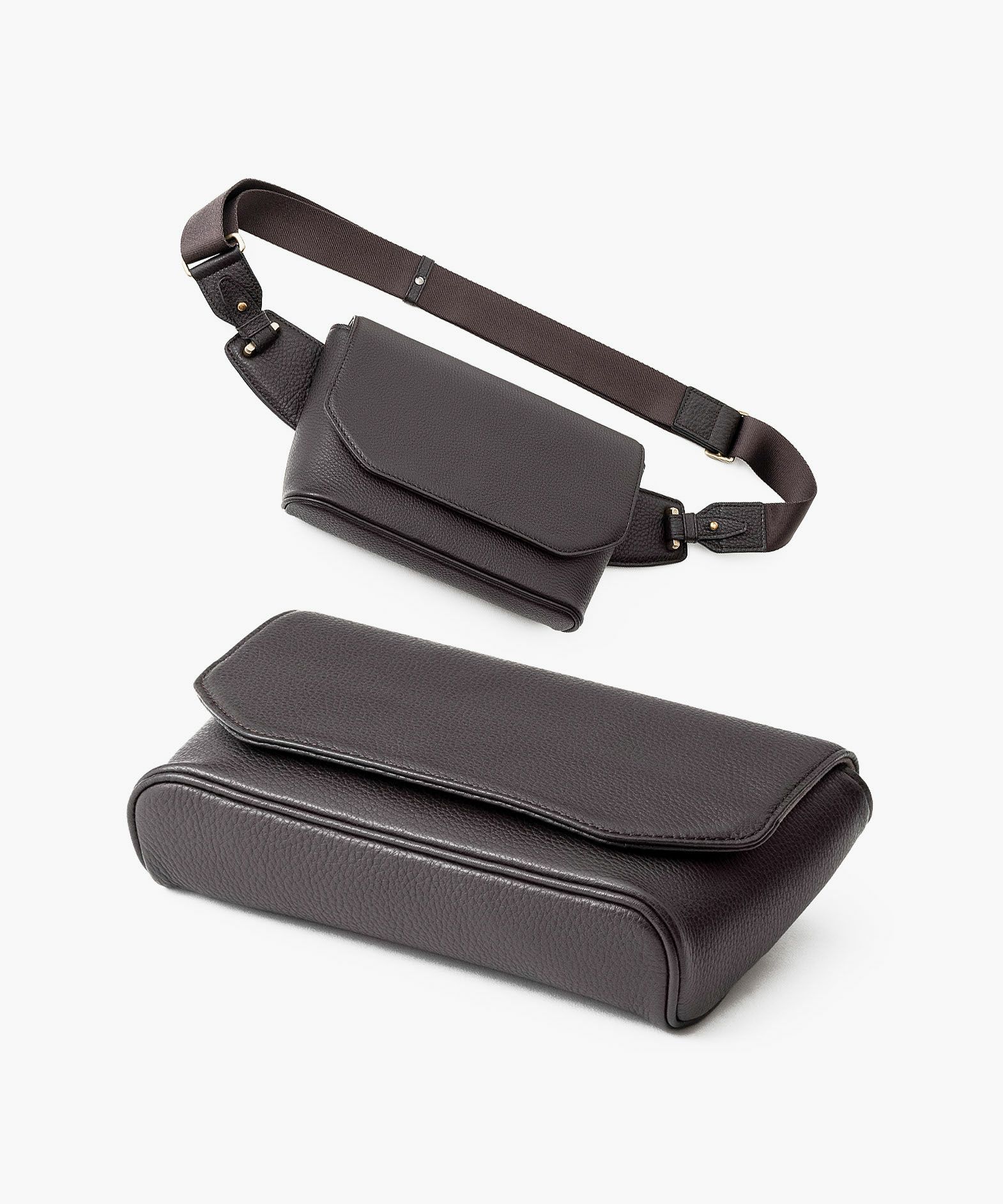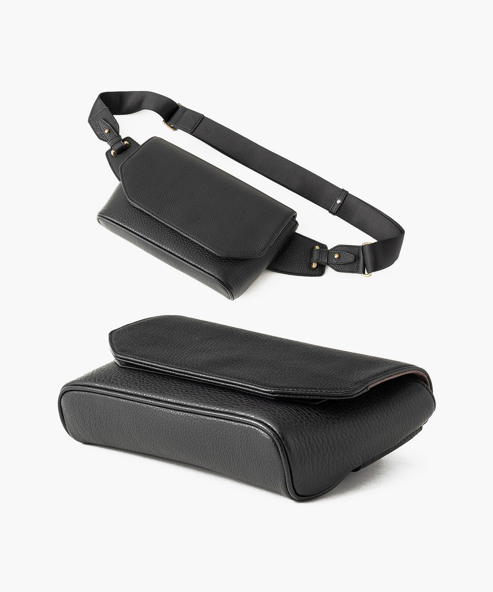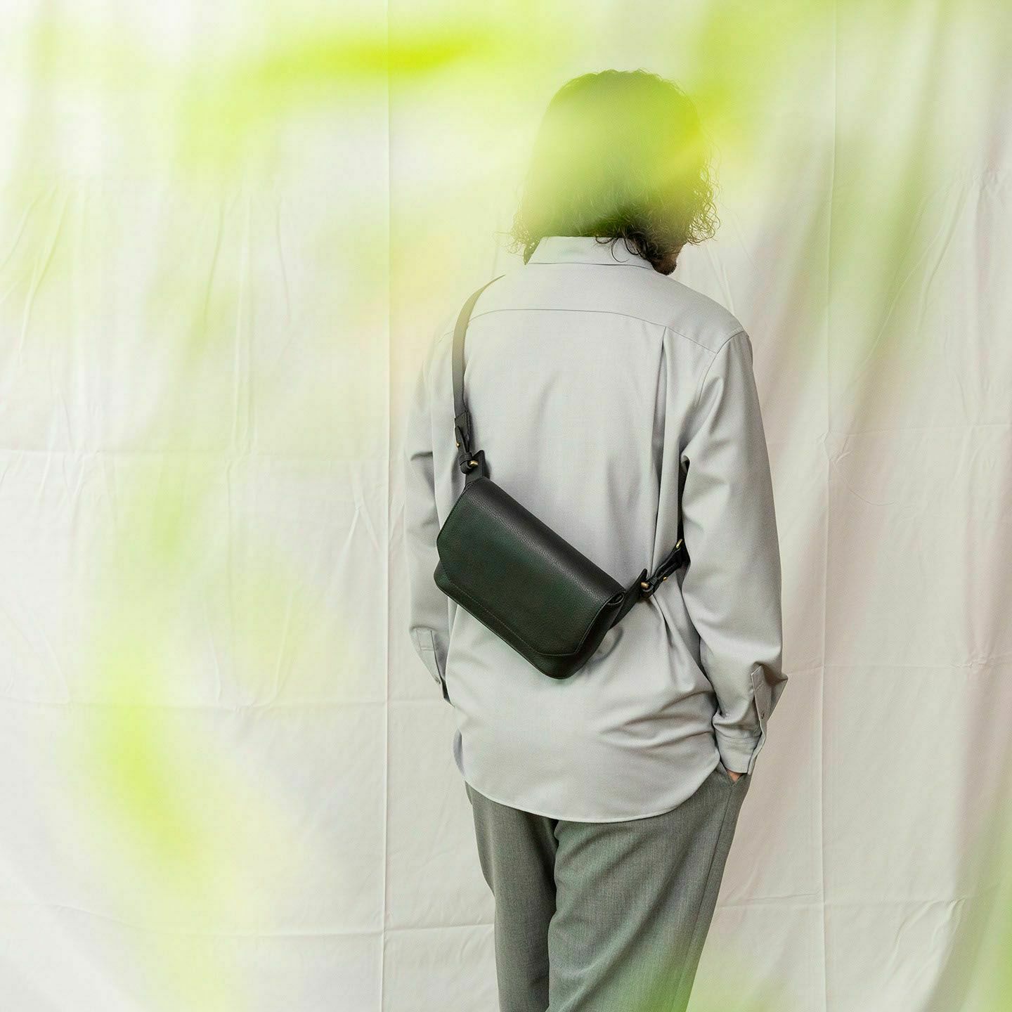 クラシックなデザインのフラップは、マグネット式で簡単に開け閉めができ、天ファスナーを設けて荷物の落下も防止。フラップで隠れている前面には、素早く出し入れしたいパスケースなどを入れられるフリーポケットを装備し、背面に設けたファスナーポケットは、革で覆った柔らかいコイルファスナーで洋服などにダメージを与えず、チケットなどの貴重なものを収納するのに最適です。また、背面と底面の間の繋ぎ目をなくした設計で、肩掛け時に体あたりがソフトになるように配慮。さらに、コーディネートを左右するショルダーベルトは、シルクのように上品な中空糸ナイロンテープを採用して、コートやジャケットにも合わせられるなど、軽量な機能性とともに見た目にもこだわっています。