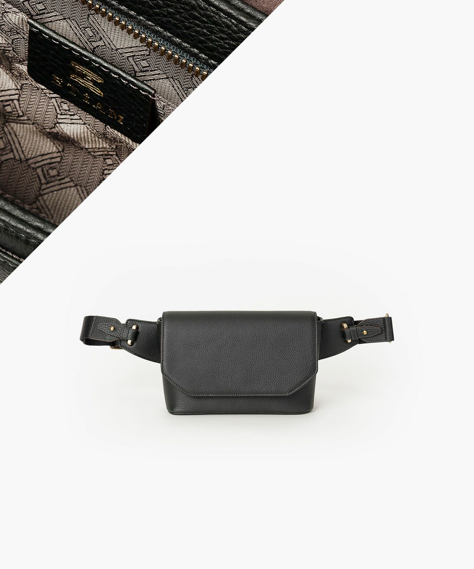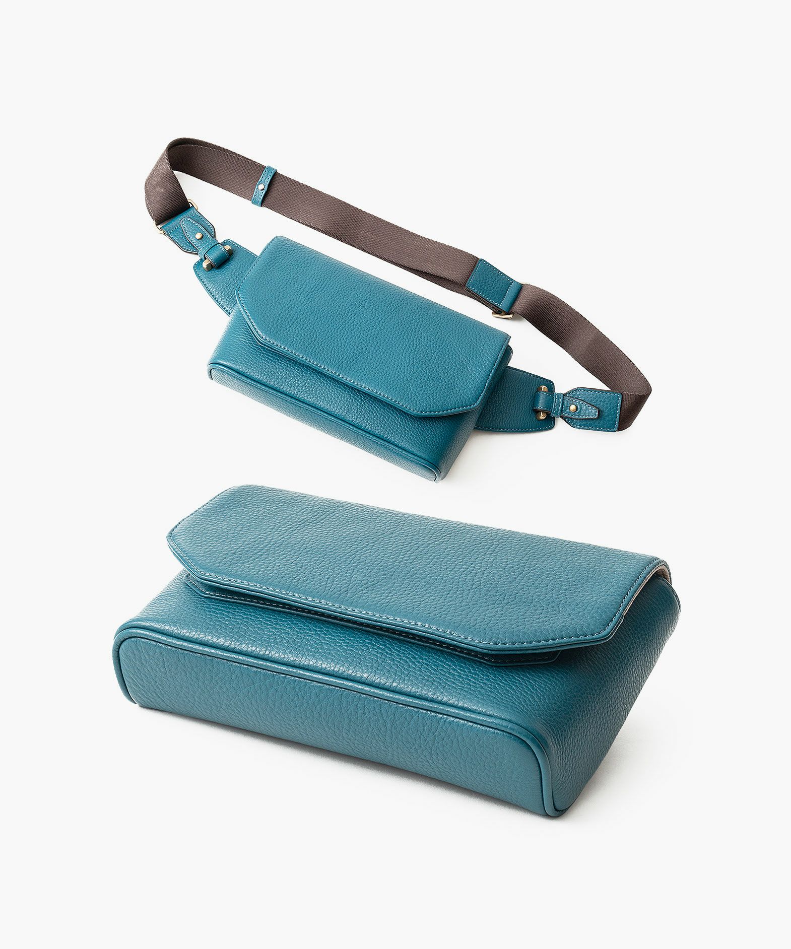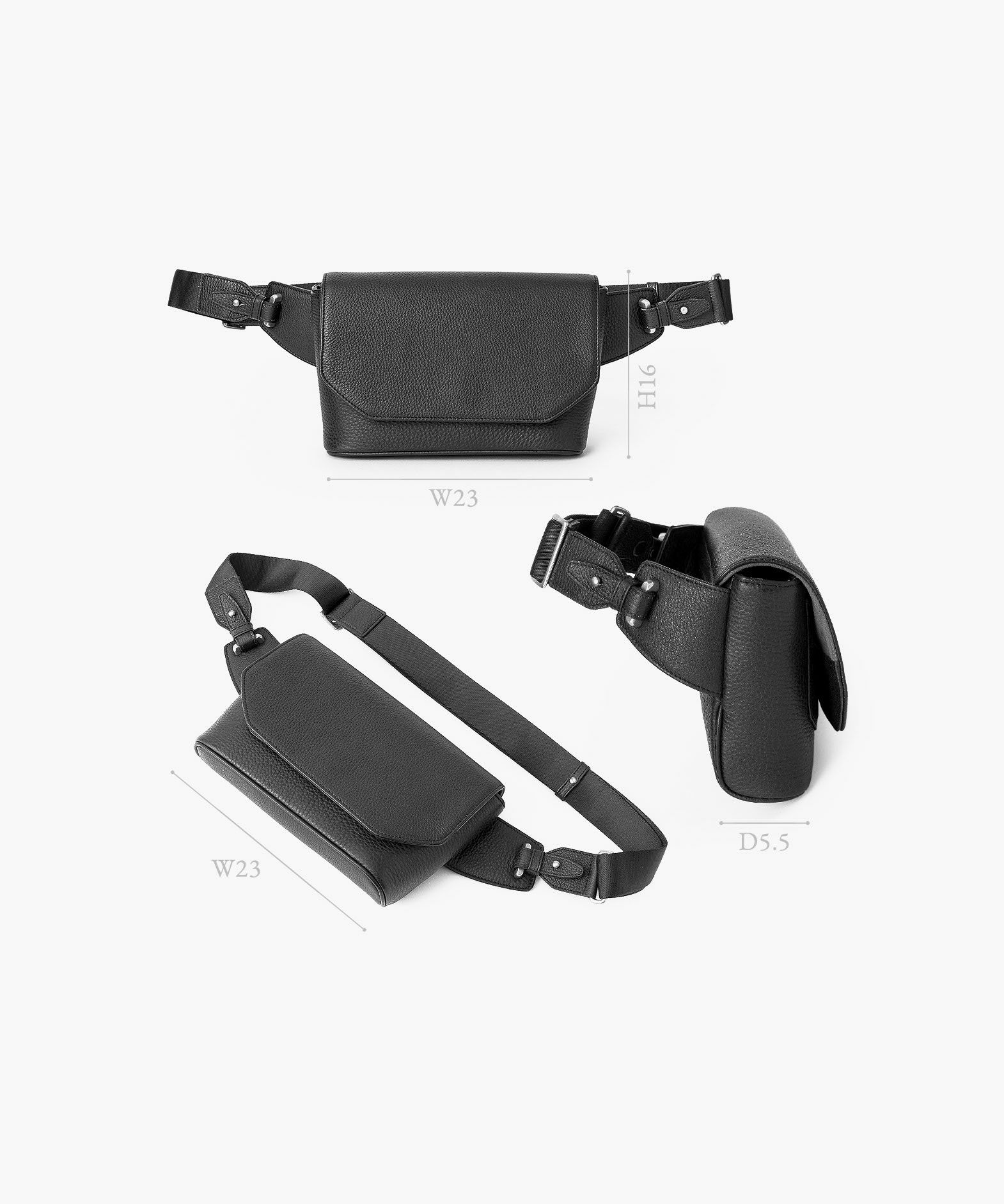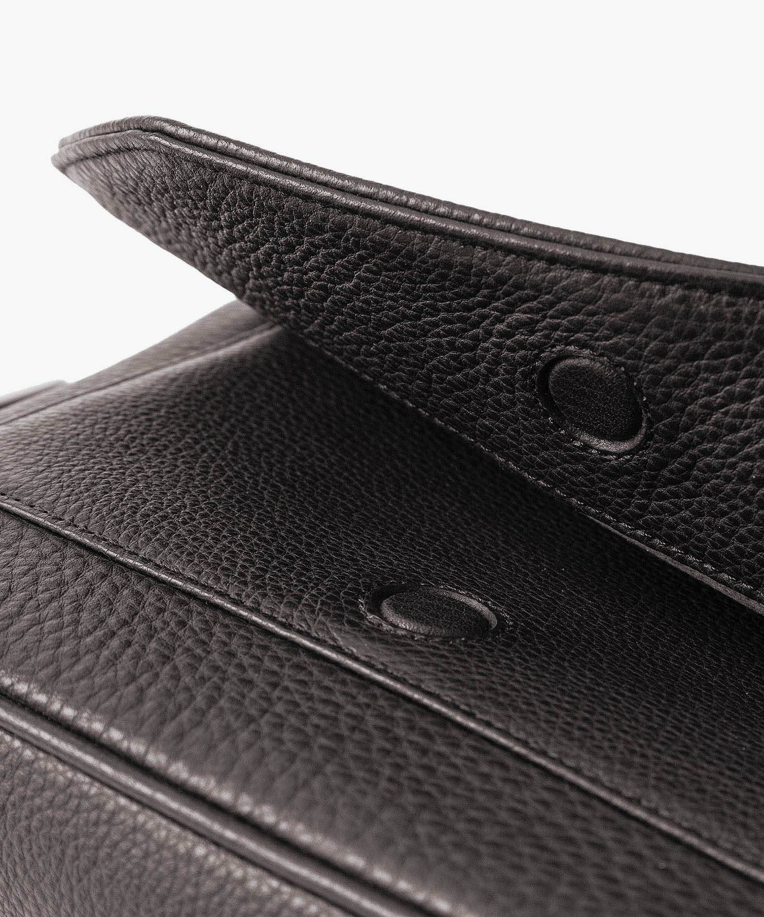 クラシックなデザインのフラップは、マグネット式で簡単に開け閉めができ、天ファスナーを設けて荷物の落下も防止。フラップで隠れている前面には、素早く出し入れしたいパスケースなどを入れられるフリーポケットを装備し、背面に設けたファスナーポケットは、革で覆った柔らかいコイルファスナーで洋服などにダメージを与えず、チケットなどの貴重なものを収納するのに最適です。また、背面と底面の間の繋ぎ目をなくした設計で、肩掛け時に体あたりがソフトになるように配慮。さらに、コーディネートを左右するショルダーベルトは、シルクのように上品な中空糸ナイロンテープを採用して、コートやジャケットにも合わせられるなど、軽量な機能性とともに見た目にもこだわっています。