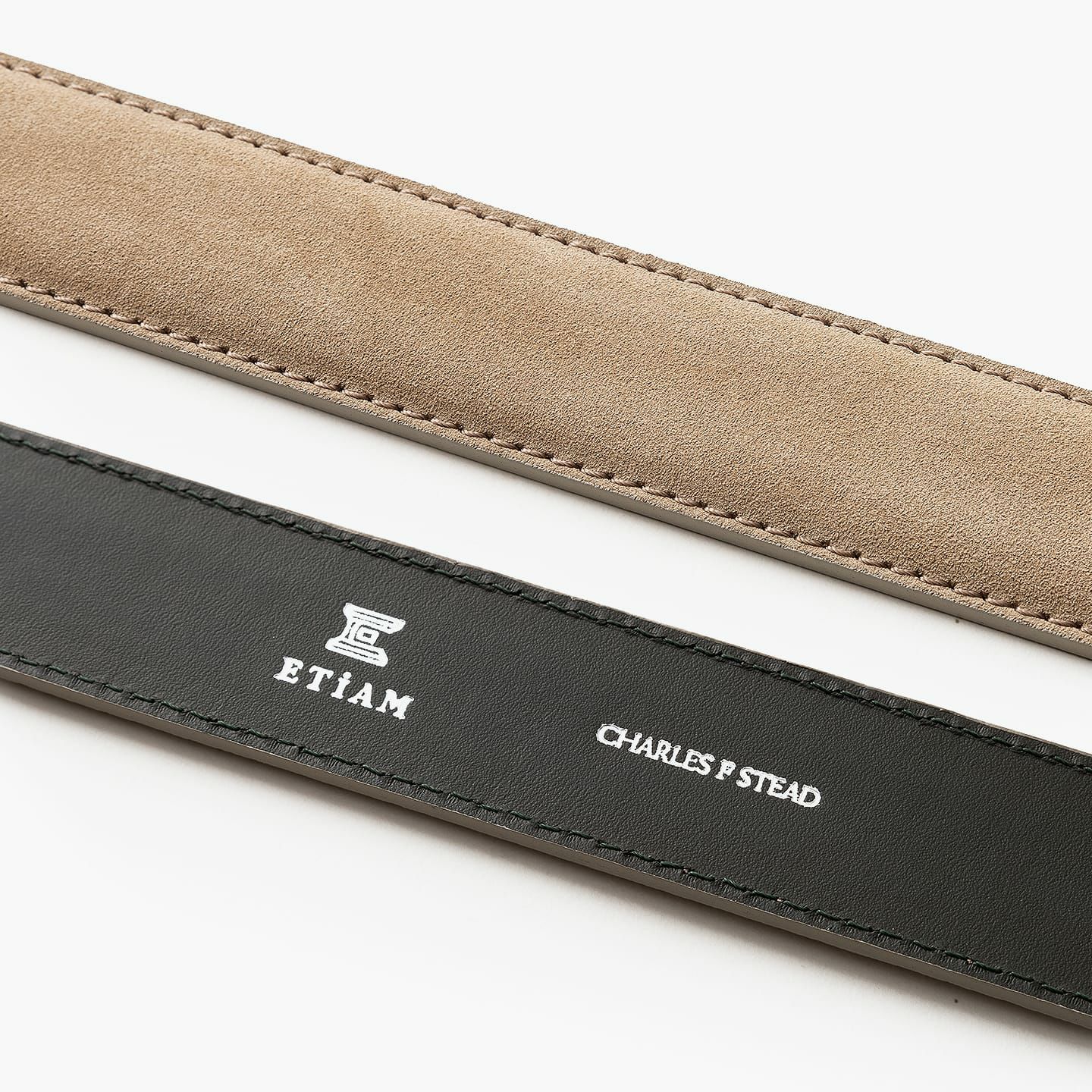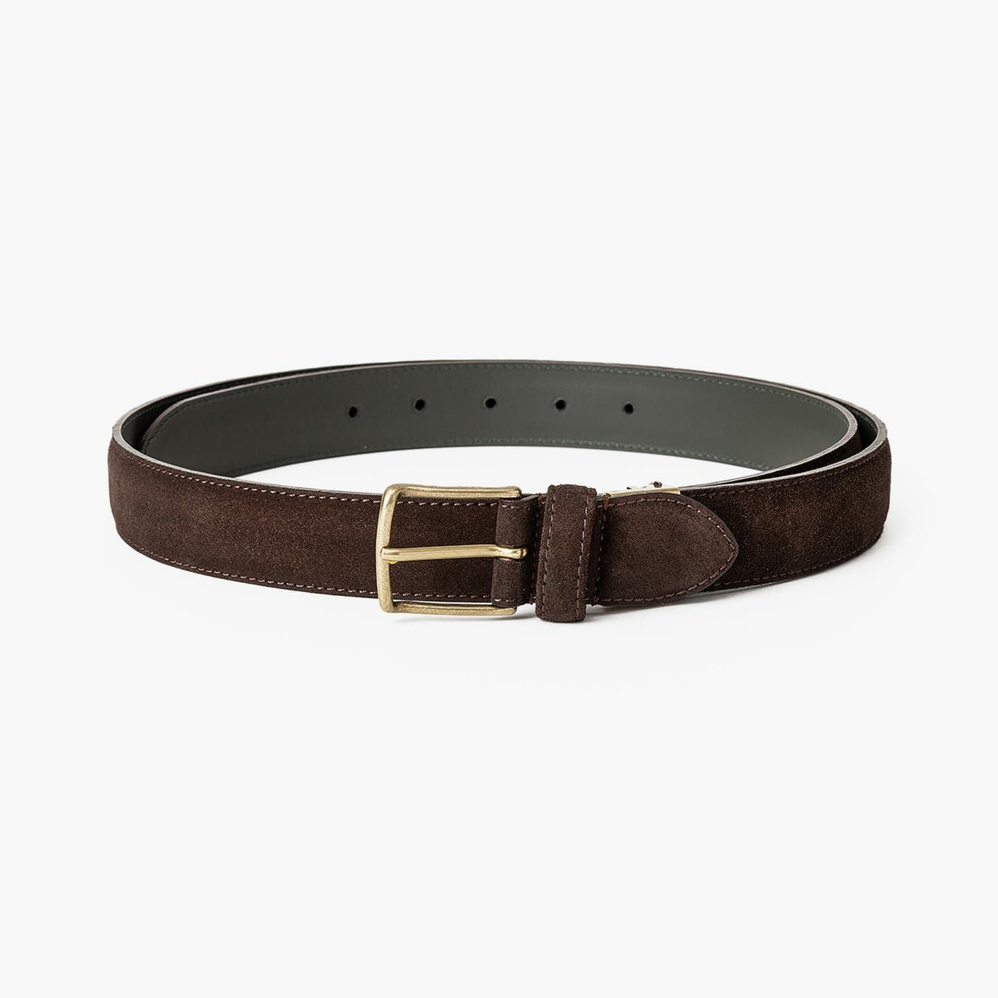 剣先の形状は、定番のV字をベースにしたモダンなデザインを採用。スエード革のコバをきめ細やかに仕上げるために、通常の2倍の時間を費やして、熟練の職人が丁寧に磨き上げています。また、ゴールドメッキを施した真鍮製のバックルが、動かずに安定させるために、バックルのすぐ脇を縫えるハンドステッチにしたり、その他の部分を縫っているミシン針も、15本ごとに交換したりなど、職人のこだわりが凝縮。さらに、パンツ側には堅牢性・耐久性が高い牛革を採用し、色落ちしにくい仕上げを施すなど、工程や細部のクオリティも追求しています。