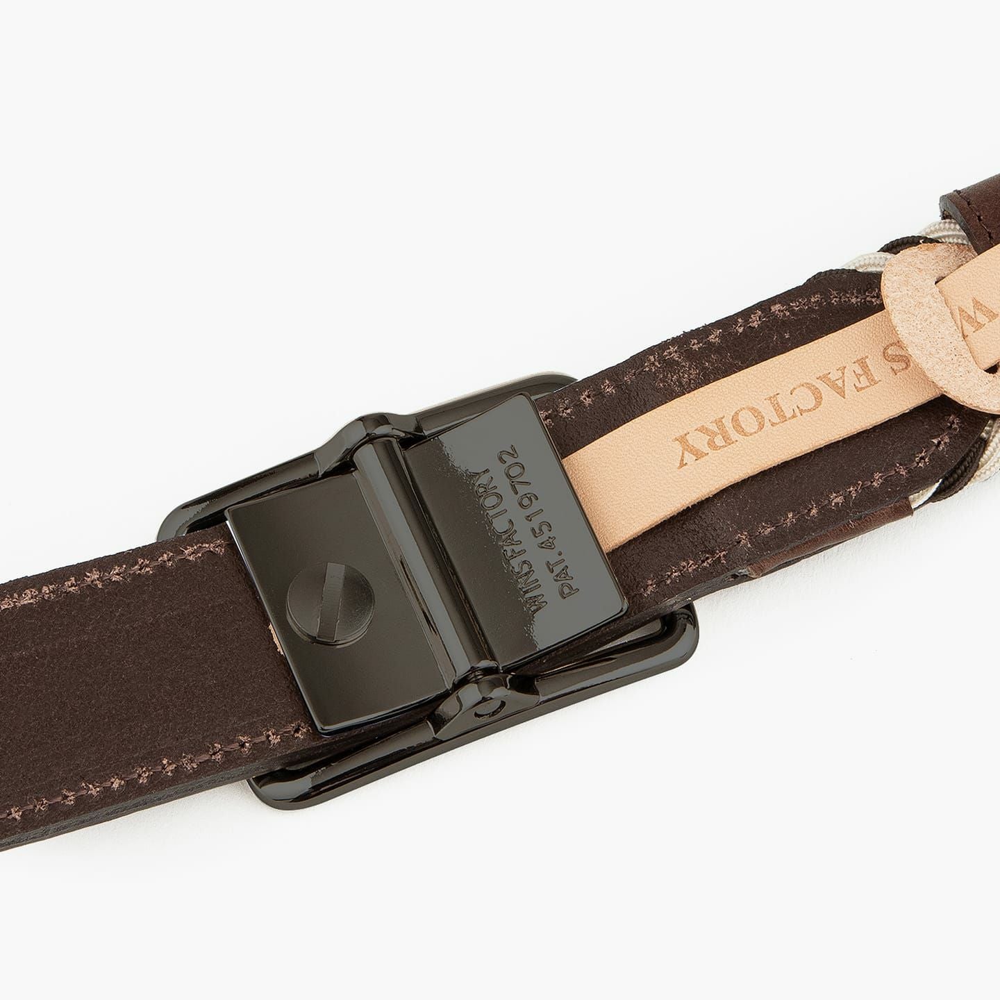 東京都台東区にアトリエを構えるブランド『WINS FACTORY』による、ゴムメッシュタイプのカジュアルベルト。ピンとピンホールを廃した特許取得の無段階調整バックルと、腰にもやさしいゴムメッシュによる、ひとつ上の機能性と着けやすさを追求。帯革2カラー・バックル2カラーから好み選べ、あらゆるシチュエーションでスタイリッシュな見映えを約束してくれる。
