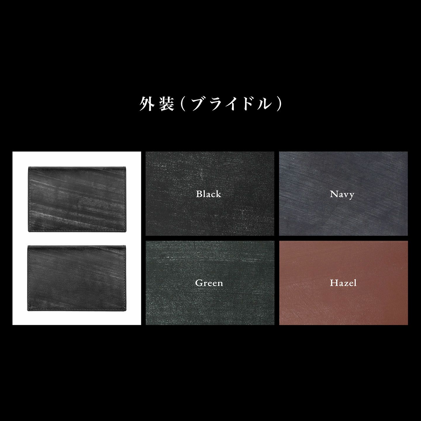 笹マチによるシャープなシルエットや、アオリポケットなどの内装デザイン、スリムさとタフさを兼ね備えた作りなど、刀の鞘をイメージした名刺入れ“Saya”。外装には、イギリス・トーマスウェア社製「ブライドル」“ダイドスルー”を採用し、格式高い本場の高級レザーによる、美しくスムーズな銀面とワイルドな刷毛目のブルームが魅惑的。内装には、和紙のような味わいで経年変化も楽しめる「マルゴー」を採用し、強度・耐久性・撥水性に優れている「ブライドル」を、オプションとして外装・内装で統一させることも可能。裏地までレザーで仕立てたフルレザー仕様の贅沢さと、細部まで職人技を注ぎ込んだ丁寧さが、ビジネスの見方になってくれる。