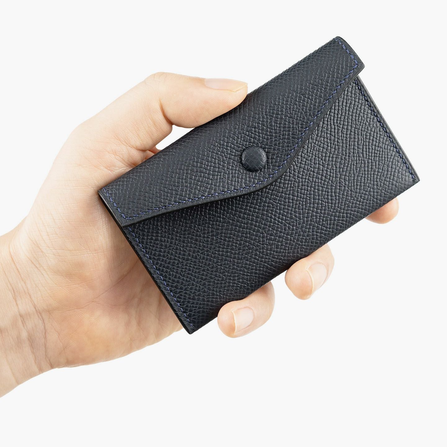 元建築設計士でもある柏原慎が、さまざまなシーンを想定した機能性と、不要物を削ぎ落とした美しいデザイン性を追求している、レザーブランド『RAGTIME』の名刺入れ。マチをあえて排することで、スリムなフォルムのエレガントさを際立たせながら、洗練されたシンプルデザインによる佇まいが、大人のスマートなスタイリッシュさを創出。細かなシボのマットな表情が高級感を漂わせる「ダービー」を、豊富なカラーラインナップから、外装・内装装飾それぞれ選べることで小粋な差し色も楽しめ、軽くて小キズ・水分にも強い特性や、糸色もセレクトできる総手縫いの丁寧な仕立てとともに、ビジネスシーンを上質に彩ってくれる。
