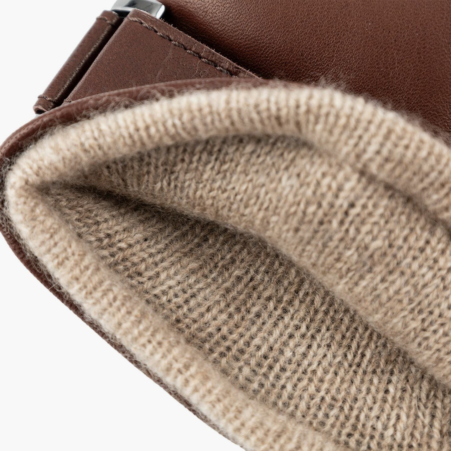 イタリア・ポルトラーノ社から直輸入した「イタリアンラムレザー」を纏った、柔らかく滑らかで使い込むほどに馴染んでいく、ベルト付きのイタリアンシープ手袋 “Belted-Touch Panel”【MEN】。日本で一双一双を丁寧な縫製で仕立てている高品質さと、手のひらサイドの親指・人差し指には導電革を施して、装着したままスマーフォンなどのタッチパネル操作ができる便利さも魅力。裏地には、肌触りがよく温かなカシミア100%のニットを採用。さらに、羊革をBlack・Tan・Luggage・Hematiteの4色から選べる、セレクトオーダーを楽しむことも。シンプルなデザインのレザーグローブに、ベルトが洒落たアクセントになり、大人のスタイリッシュさを奏でてくれる。