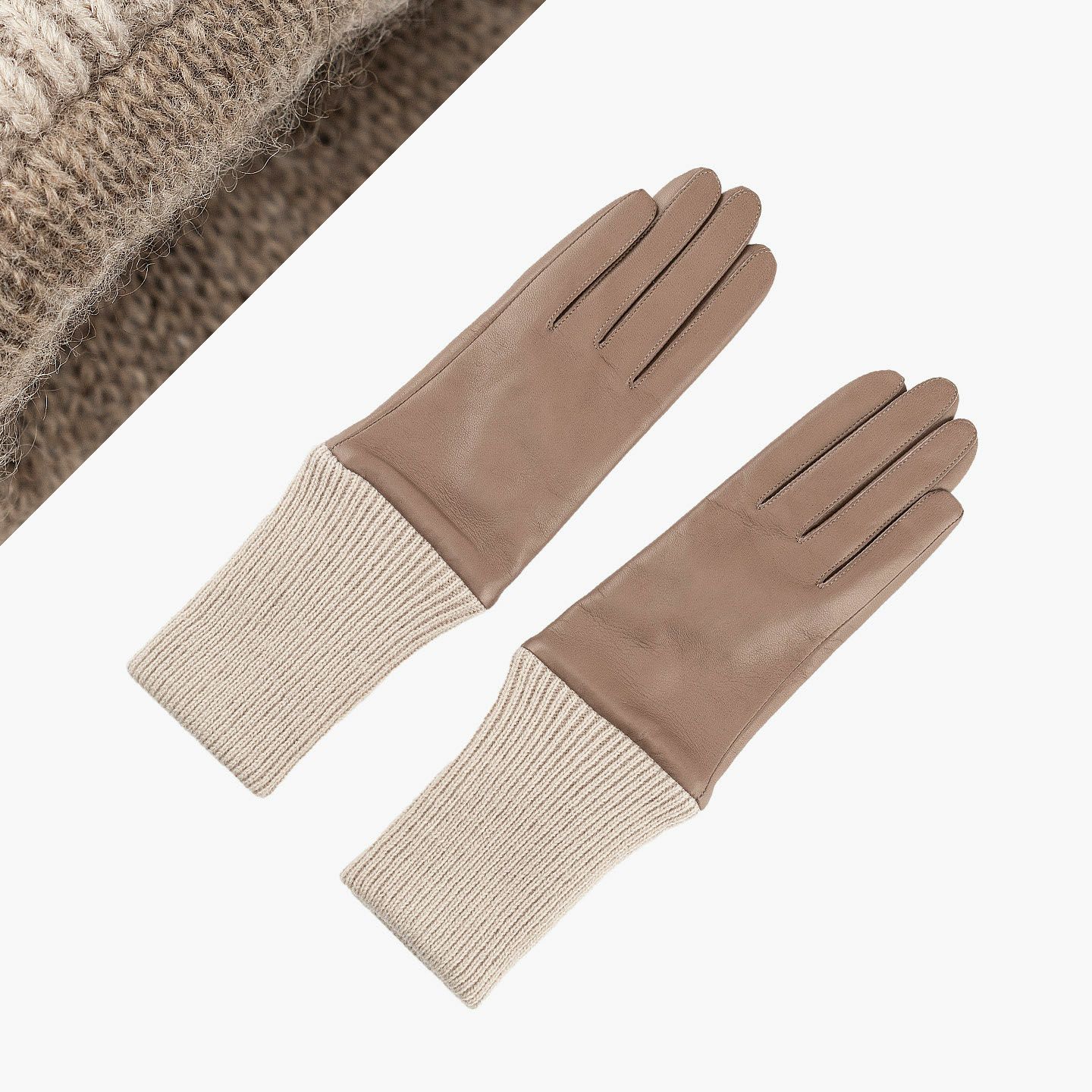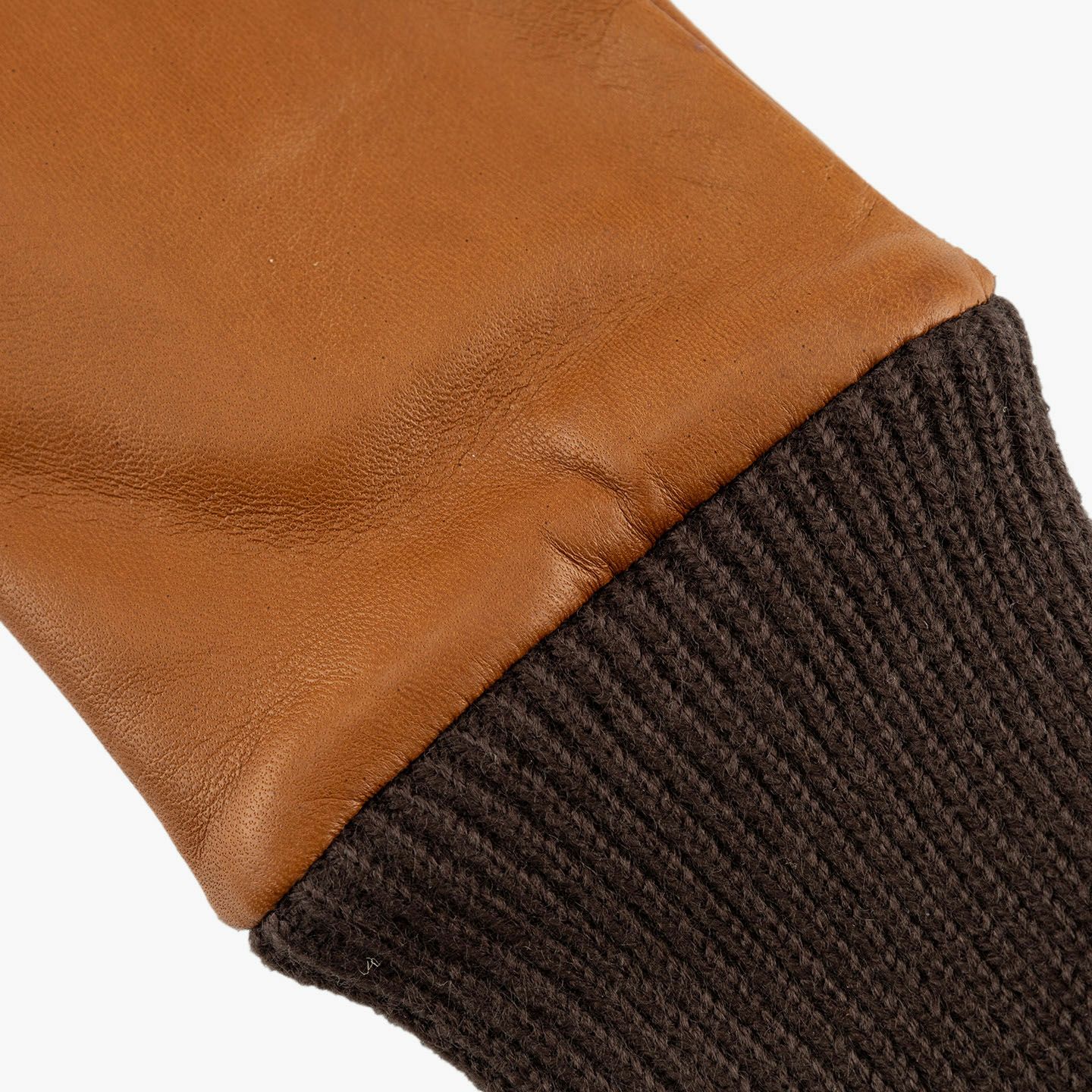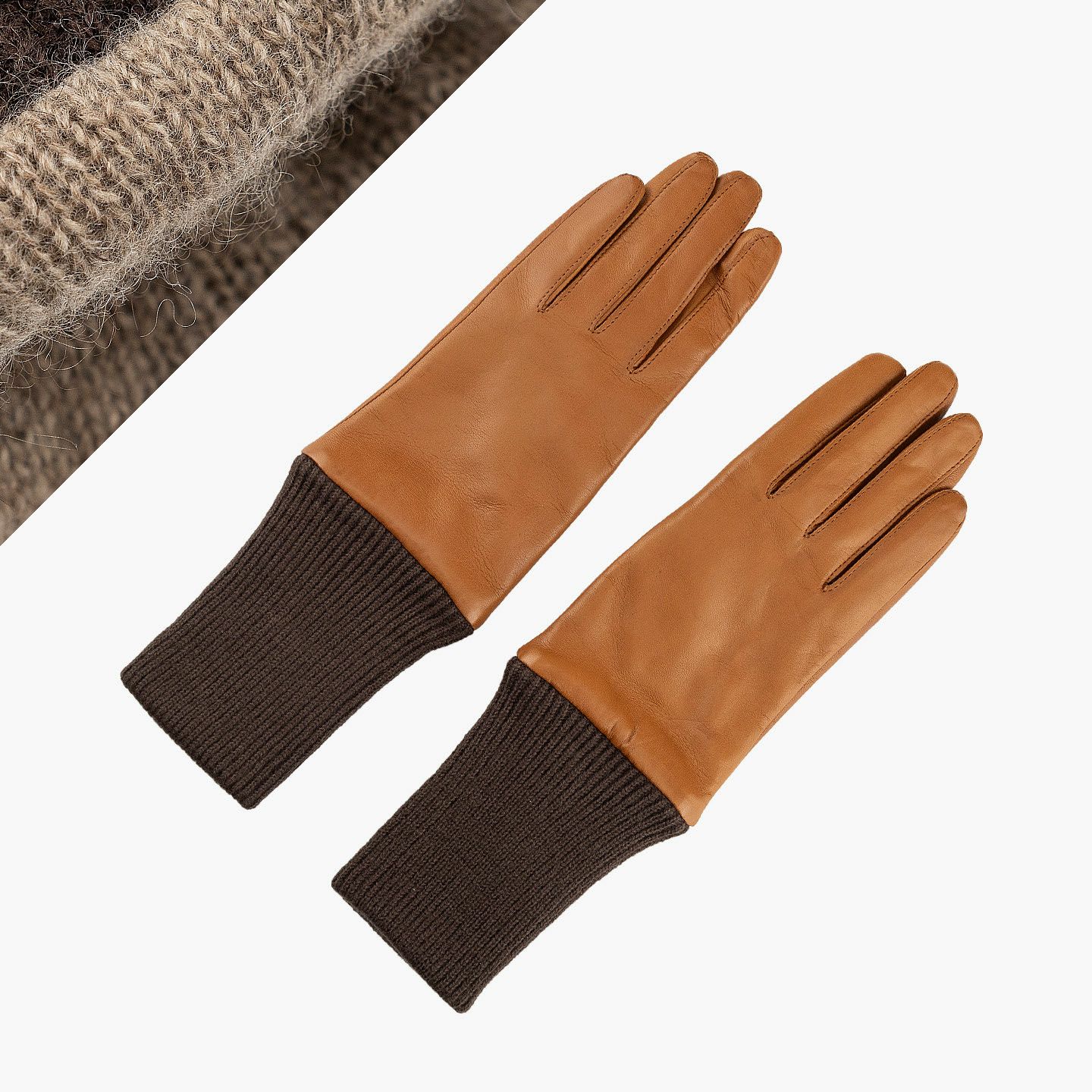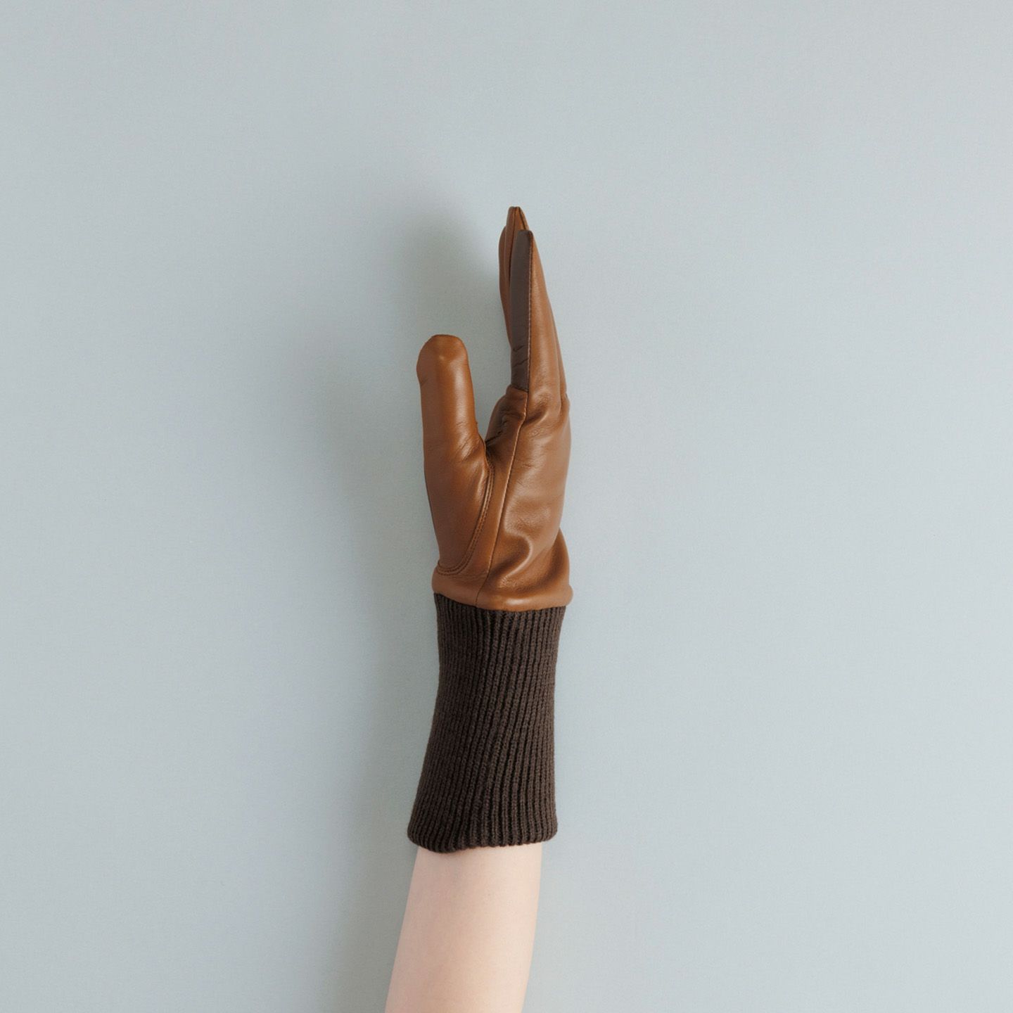 イタリア・ポルトラーノ社の「イタリアンラムレザー」に、手首まで隠れて温かい長めのニットカフスを付けた、カジュアルでリッチなイタリアンシープ手袋 “Cuffs-Touch Panel”【WOMEN】。カフスは折り返して短くしても使え、手のひらサイドの親指・人差し指には導電革が施され、装着したままスマートフォンなどのタッチパネル操作をすることも。Black・Luggage・Hematiteの3色から2サイズと併せてセレクトオーダーでき、肌触りがよく温かなカシミア100%のニットを裏地に採用。“ピケ縫い”という指先を長くキレイに見せる、こだわりの縫製を用いて日本で丁寧に一双一双を仕立て、細身でスッキリとした女性らしいルックスへと導いてくれる。