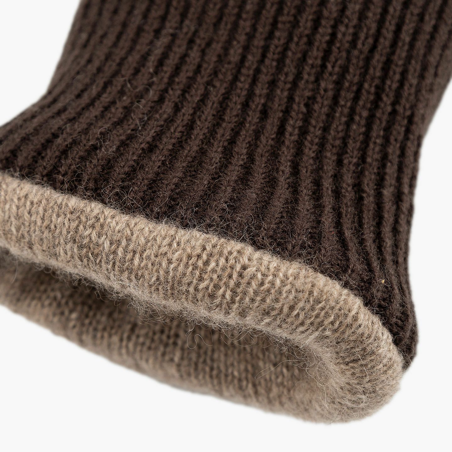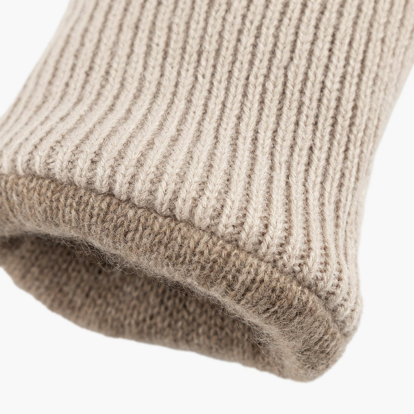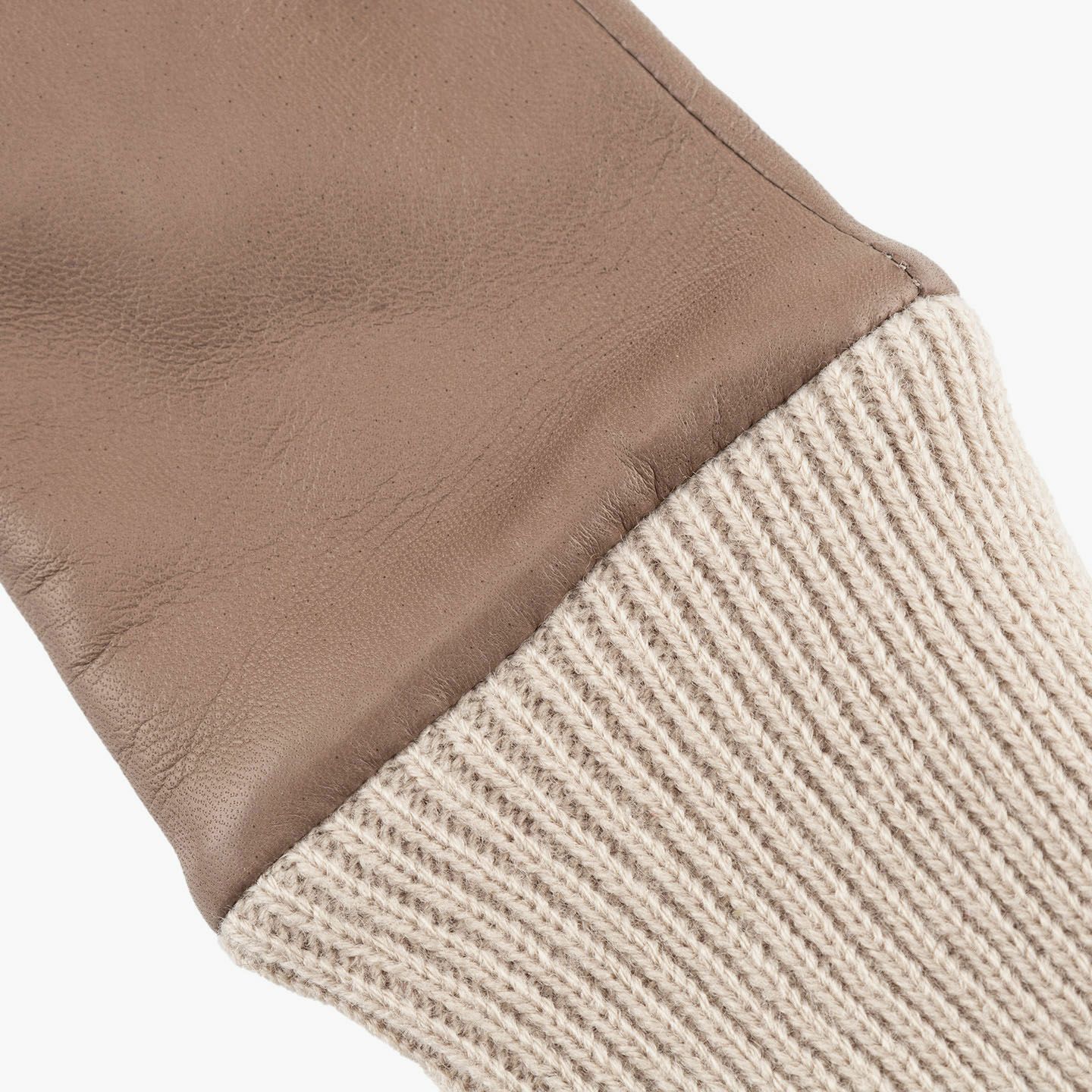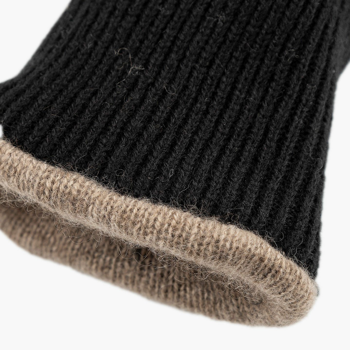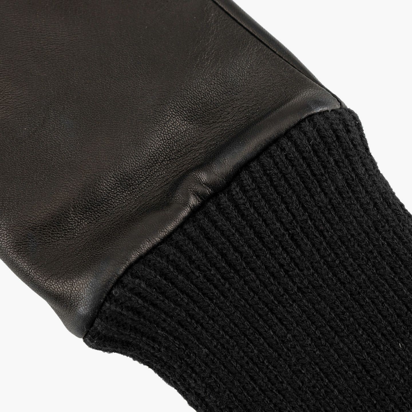 イタリア・ポルトラーノ社の「イタリアンラムレザー」に、手首まで隠れて温かい長めのニットカフスを付けた、カジュアルでリッチなイタリアンシープ手袋 “Cuffs-Touch Panel”【WOMEN】。カフスは折り返して短くしても使え、手のひらサイドの親指・人差し指には導電革が施され、装着したままスマートフォンなどのタッチパネル操作をすることも。Black・Luggage・Hematiteの3色から2サイズと併せてセレクトオーダーでき、肌触りがよく温かなカシミア100%のニットを裏地に採用。“ピケ縫い”という指先を長くキレイに見せる、こだわりの縫製を用いて日本で丁寧に一双一双を仕立て、細身でスッキリとした女性らしいルックスへと導いてくれる。