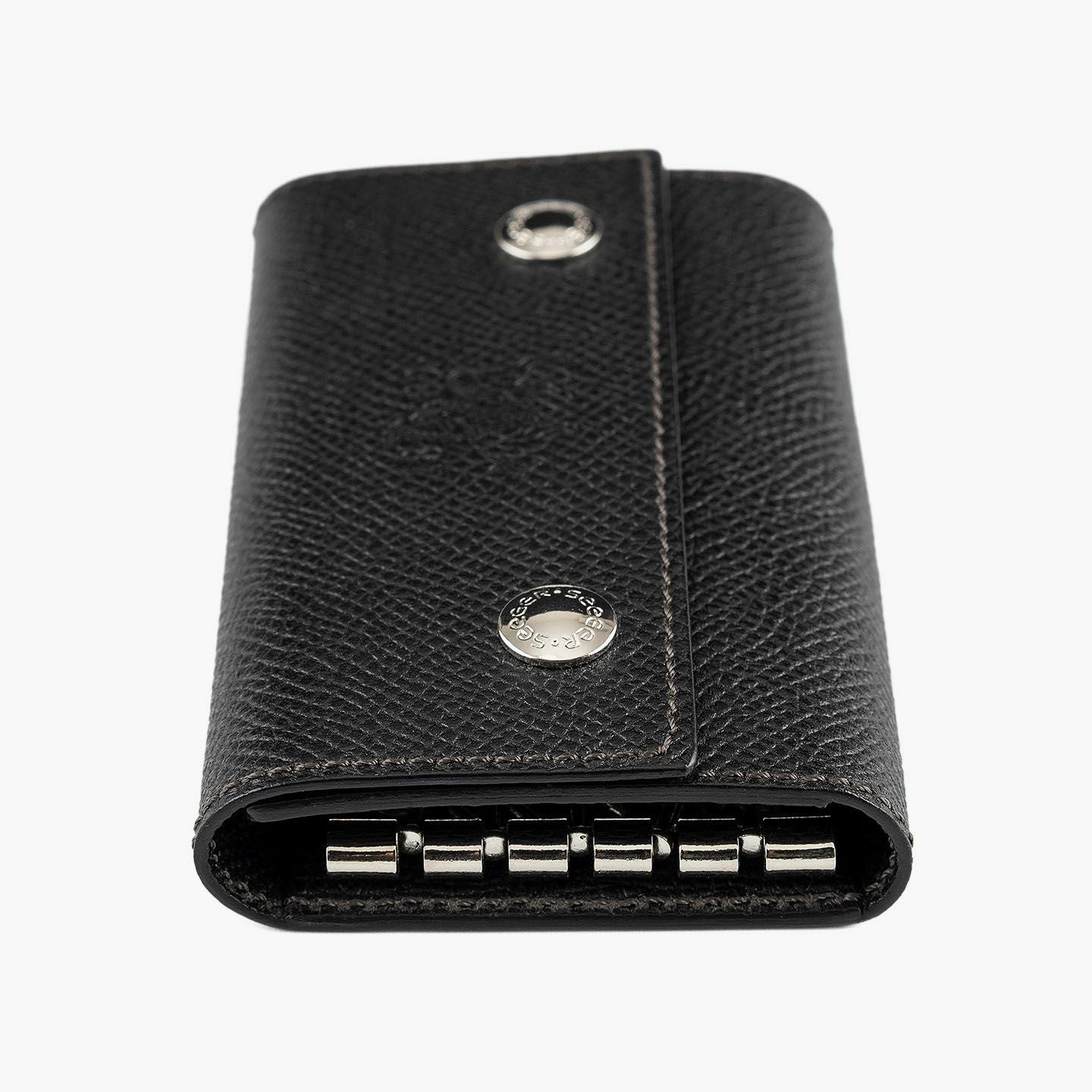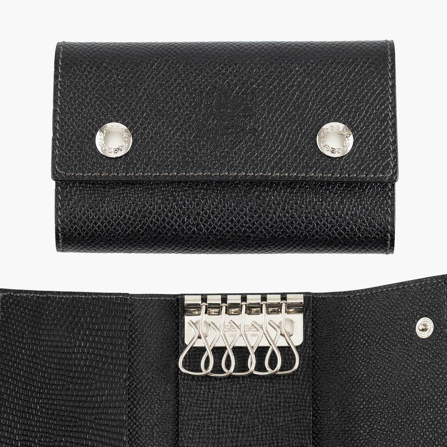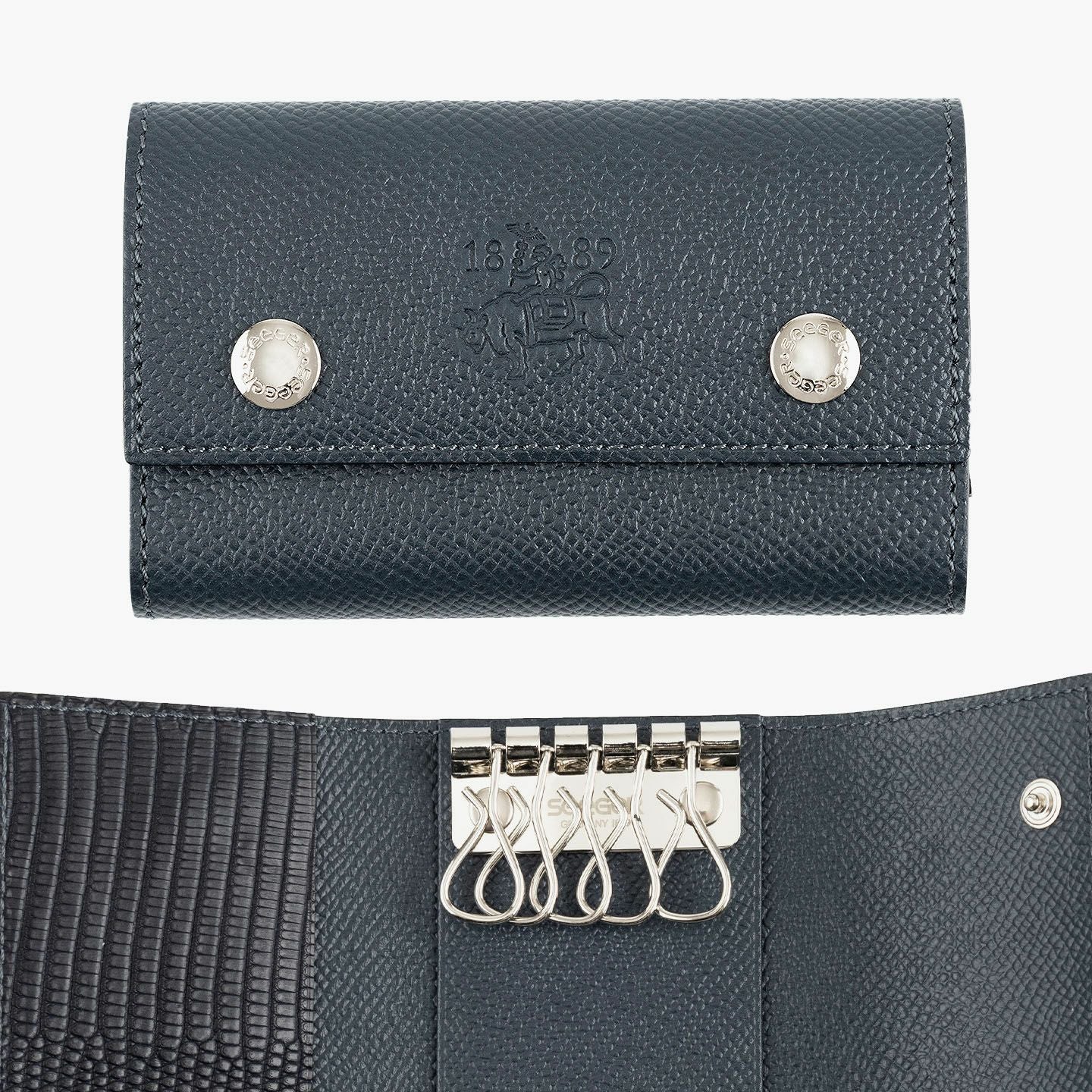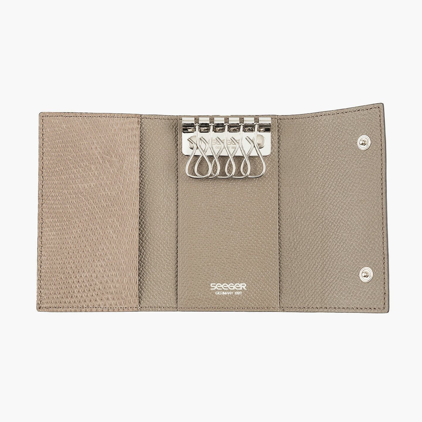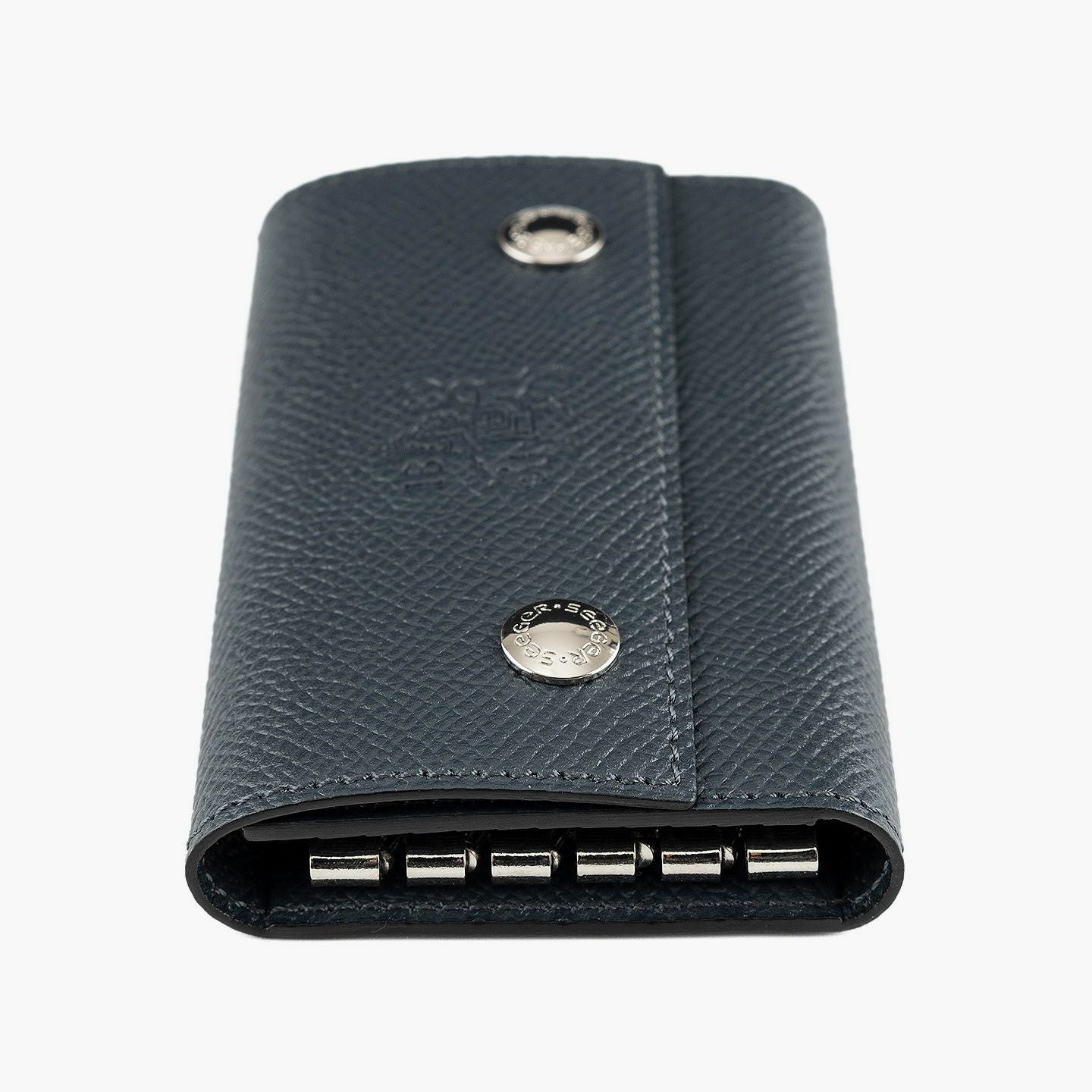 ドイツ・オッフェンバッハで1889年に創業し、「紳士にふさわしい品格と存在感を放つもの」をコンセプトに、日本の職人たちが蘇らせたブランド『SEEGER』のキーケース“Poseidon”。小キズに強くカジュアルに扱える型押し牛革「ボーダーハード」を採用し、高級感のある細かな型が表面の強度を高めていながらも、非常にしなやかな触り心地も魅力。内装装飾としてフリーポケットにあしらわれたトカゲ革「リザード」が、同じカラーでありながらも異なる質感・風合いで、遊び心のある洒落感を演出。5連キーフックは、硬度の高いリン青銅製を用いることで、シンプルな美しさと機能性を併せ持ち、普段使いにスマートさを創出してくれる。