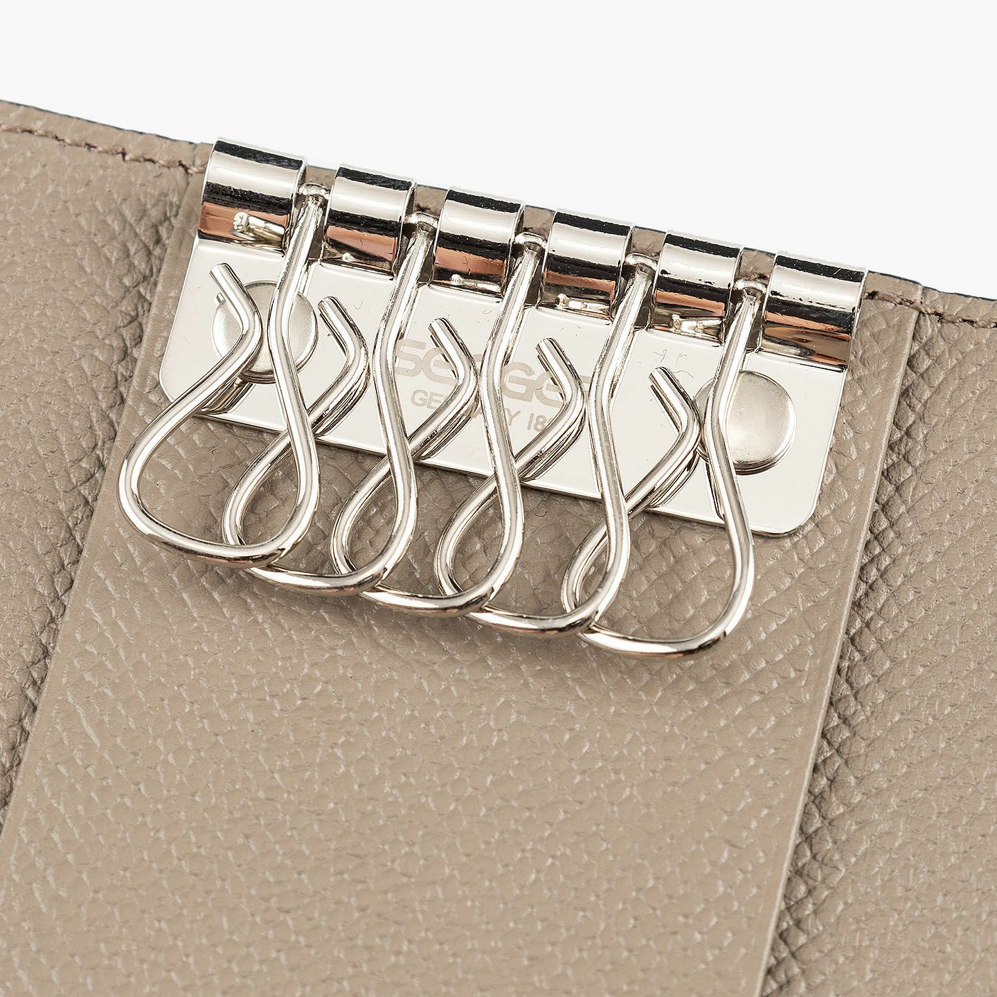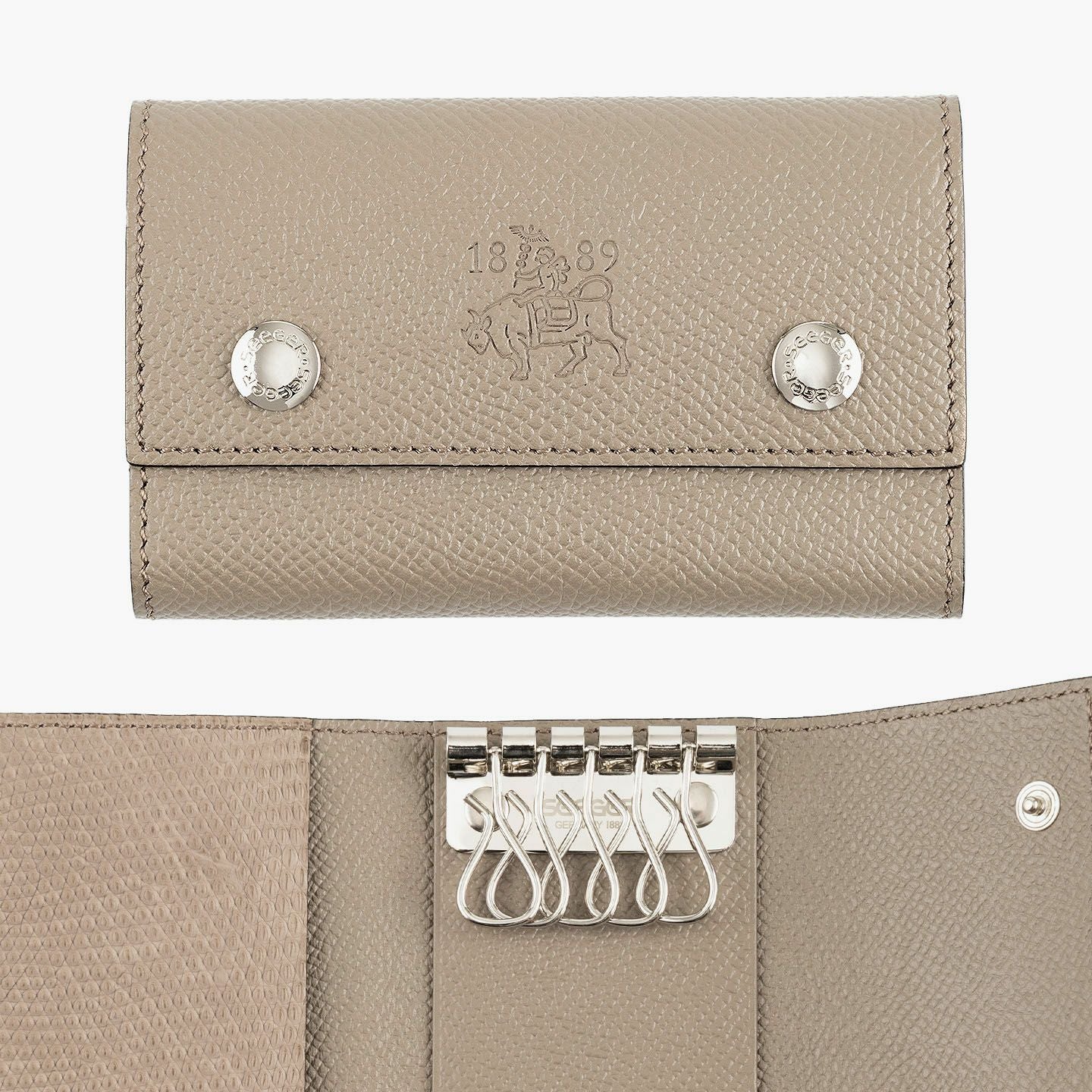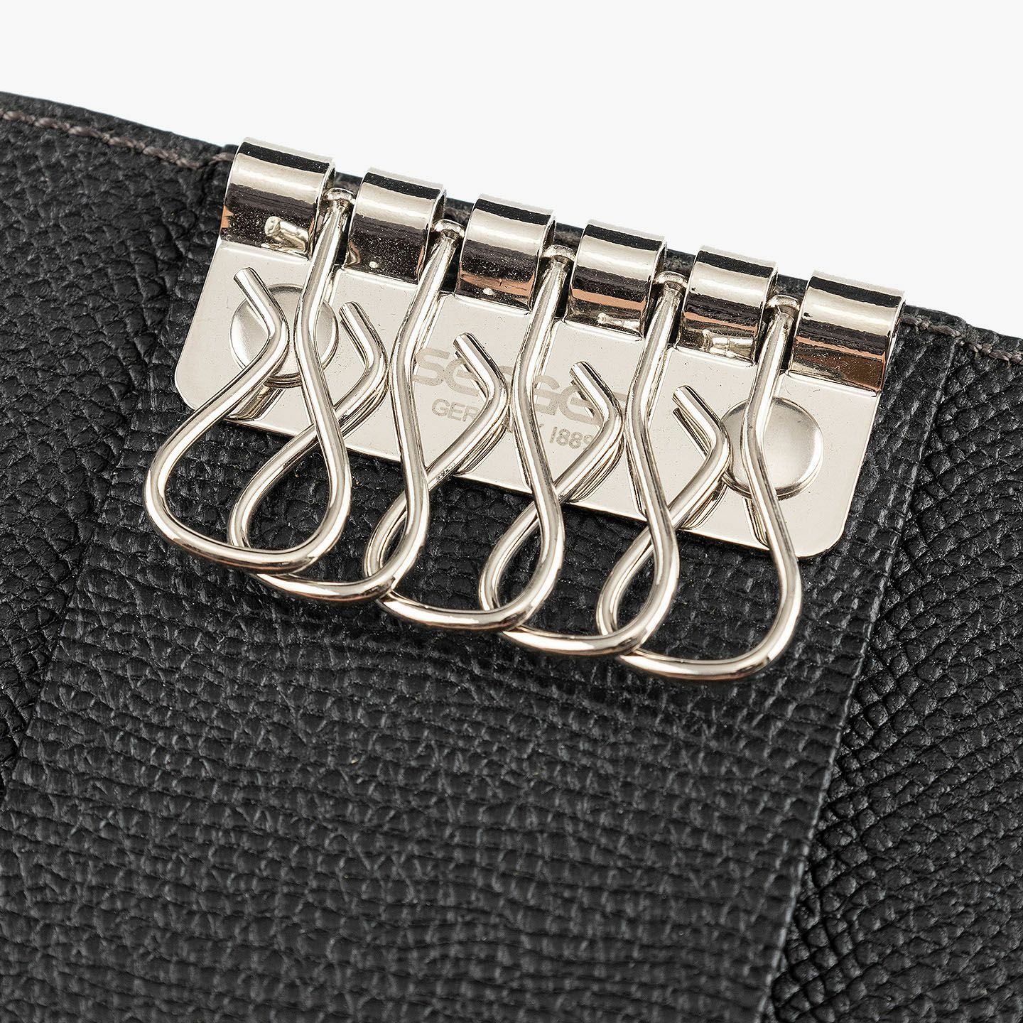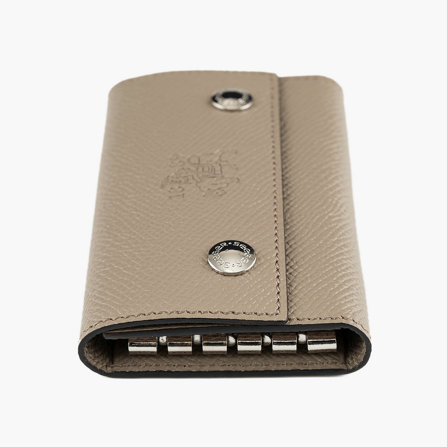 ドイツ・オッフェンバッハで1889年に創業し、「紳士にふさわしい品格と存在感を放つもの」をコンセプトに、日本の職人たちが蘇らせたブランド『SEEGER』のキーケース“Poseidon”。小キズに強くカジュアルに扱える型押し牛革「ボーダーハード」を採用し、高級感のある細かな型が表面の強度を高めていながらも、非常にしなやかな触り心地も魅力。内装装飾としてフリーポケットにあしらわれたトカゲ革「リザード」が、同じカラーでありながらも異なる質感・風合いで、遊び心のある洒落感を演出。5連キーフックは、硬度の高いリン青銅製を用いることで、シンプルな美しさと機能性を併せ持ち、普段使いにスマートさを創出してくれる。
