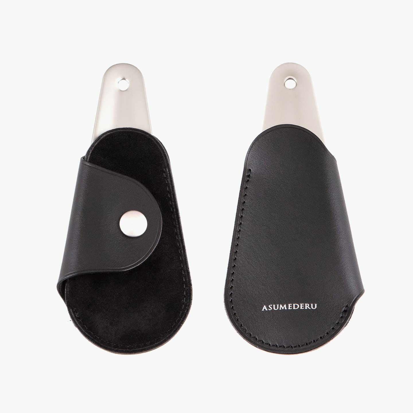 自由で独創的なアイデアを実践し、革製品の常識を変える挑戦を続けているブランド『ASUMEDERU』のシューホーン(No.3)。“牛革の王様”とも言われるカーフレザーの希少な最高級素材「ベビーカーフ」を、脱着式カバーとして付属した贅沢なアイテム。携帯にも最適なコンパクトなサイズ感で、洒落た佇まいが大人の小粋さも演出でき、5カラーから選んで自分用としても贈り物としても活躍してくれる。