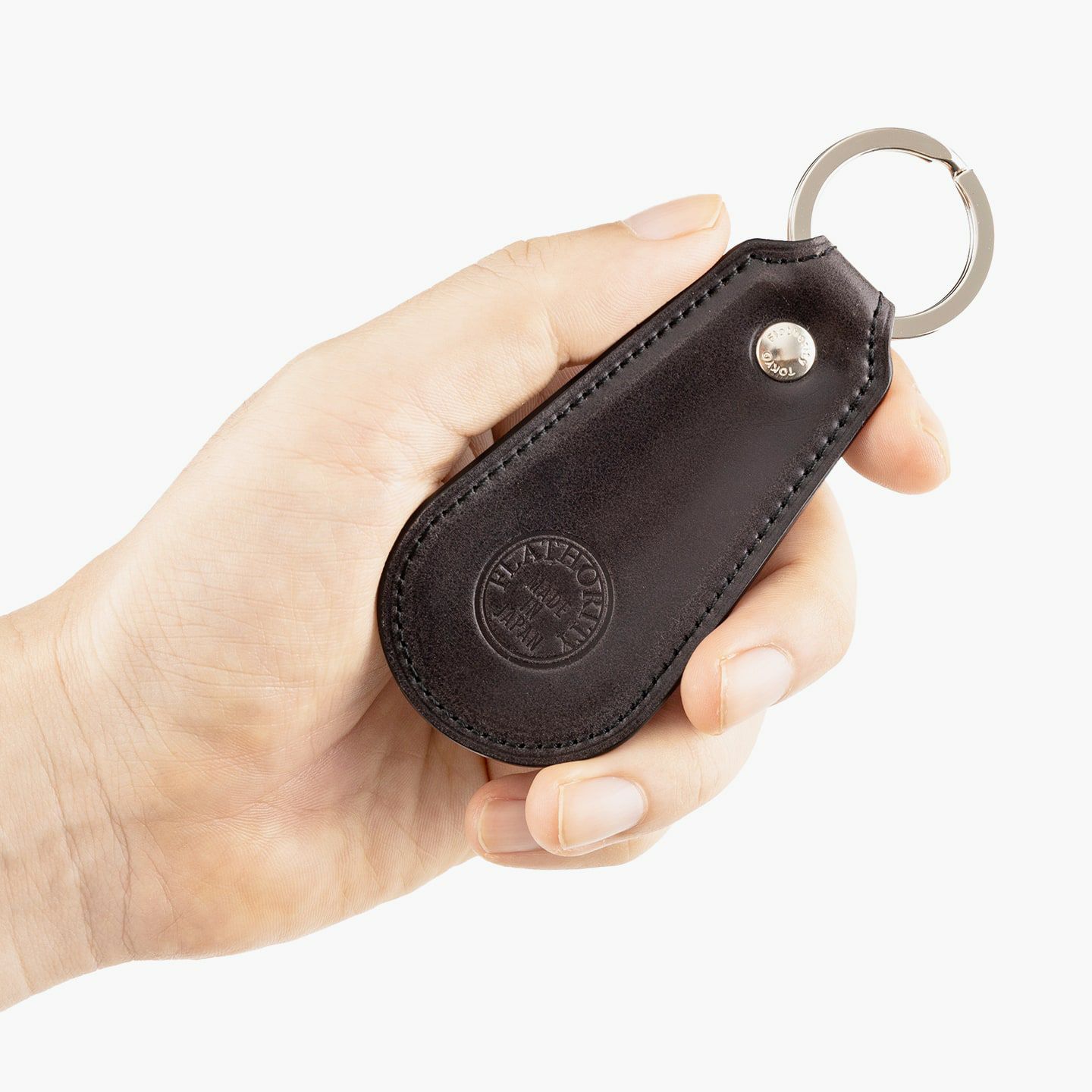 1952年創業の鞄メーカー猪瀬が、国内生産・高品質にこだわり続け、企画・製作すべてを一貫して行うファクトリーブランド『Flathority』のシューホーン型キーホルダー。ブランドオリジナルを追求して、世界三大コードバンタンナーのひとつに数えられる長野県・宮内産業の「水染めオイルコードバン」に辿り着き、王道のBlackとともにポップなオリジナルカラーのBlue・Greenもライアンナップ。スタイリッシュ感あふれるアイテムとして、大切な人へのプレゼントにも最適で、贈る相手の個性やキャラクターを想像しながら、カラーのセレクトオーダーを楽しませてくれる。