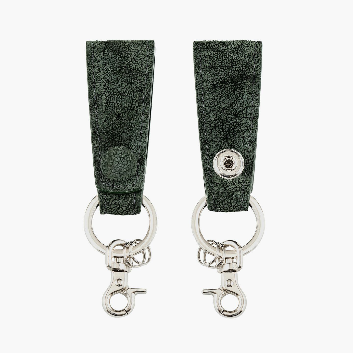 厳格な条件のもと国際取引が認められている、ジンバブエに生息するアフリカゾウの鼻・喉の部分のみを使用した、とても希少な「エレファントレザー」。エキゾチックレザーのひとつでもあるゾウ革は、非常に丈夫であるとともに、キズに対する耐性や撥水性に優れ、厚みがありながらも柔軟性にも富んでいます。また、表面には、細かい粒状の凹凸が広がっていて、部位により不規則なシワが入った表情が、惹きつけられる魅力にもなっています。さらに、ゾウ革においては、表皮を擦り取って起毛させた、ヌバック調に仕立てているのが一般的。細かい粒状隆起や大ぶりなシボ・トラ(スジ状のシワ)などが、複雑に絡み合って織り成すワイルドな風合いも特長的です。そして、それらの表情は、不規則なので同じように見えるものがなく、オンリーワンの個性を創出。使い込むほどにツヤ・色味が増していく、魅力的なエイジングも楽しめます。