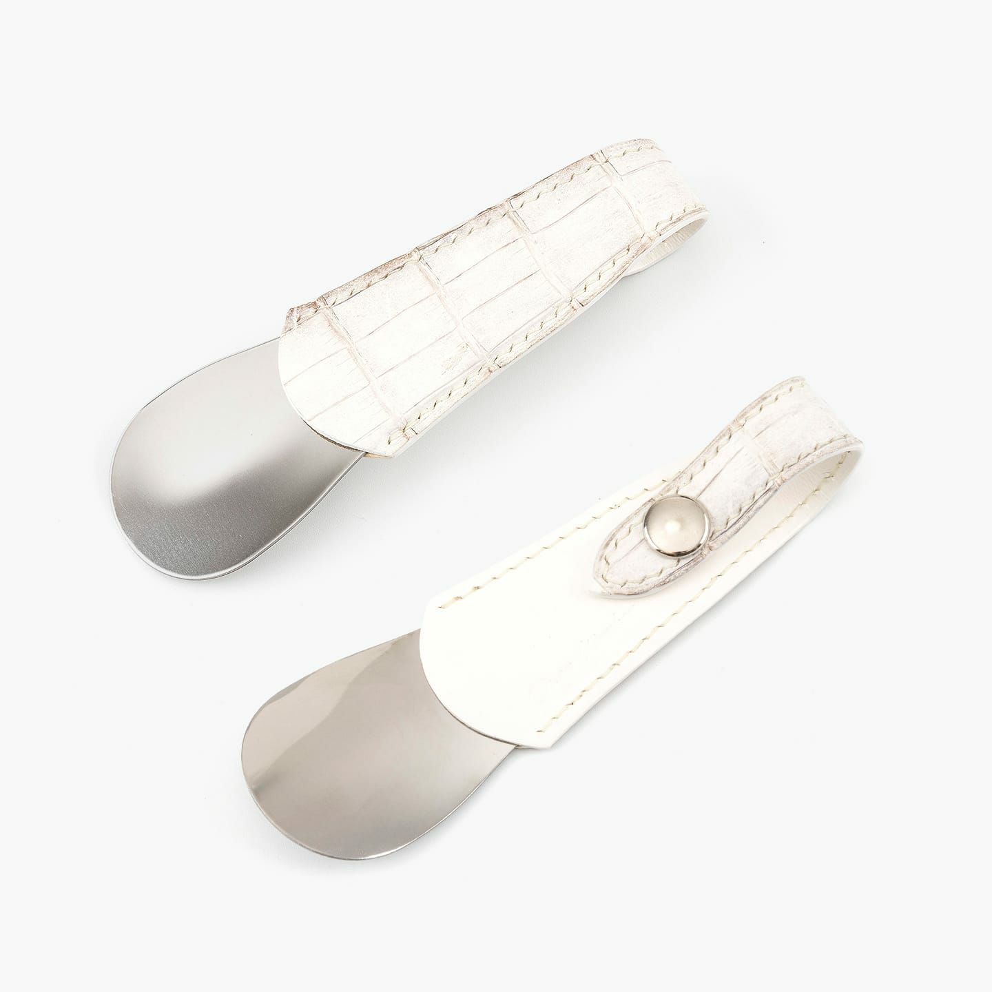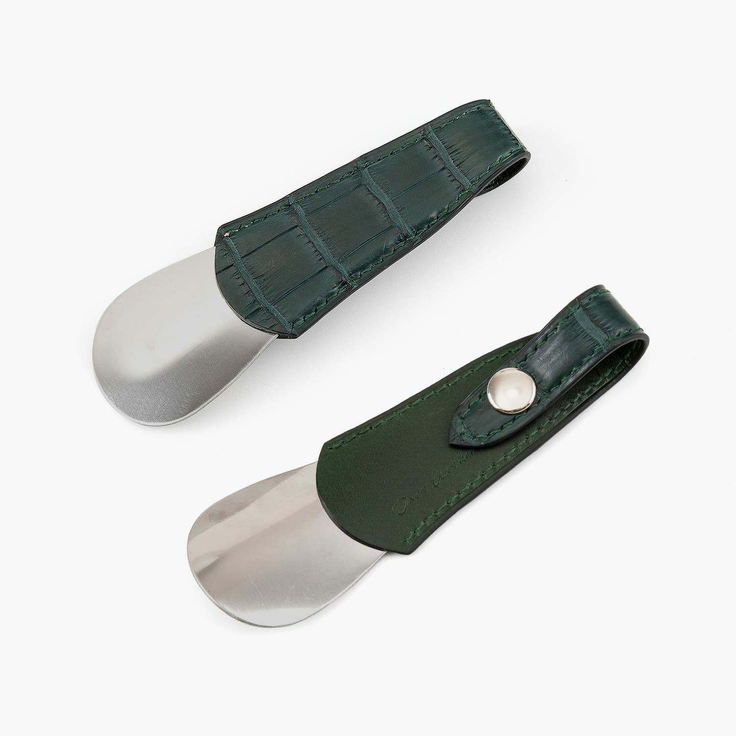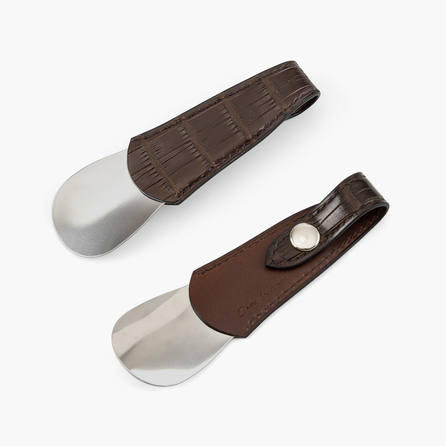 高度な職人技の少量生産にこだわり、皮革から金具まで最高の材料を使うことで、所有する歓びが感じられる作品へと導く、『ONES WORKER』のシューホーン。最高級マテリアルである皮革の宝石「クロコダイル ポロサス」の表革と、最高級ヌメ革「ブッテーロ」の裏革による、贅沢を尽くしたマテリアルの共演が、表裏を同系色で統一させた5色から、カラーオーダーできることも魅力。高級感あふれるアクセサリーのような佇まいと、アイテムとしての気軽さが、相反する独創性を高品位に纏いながら、比類なき上質感を醸し出させてくれる。
