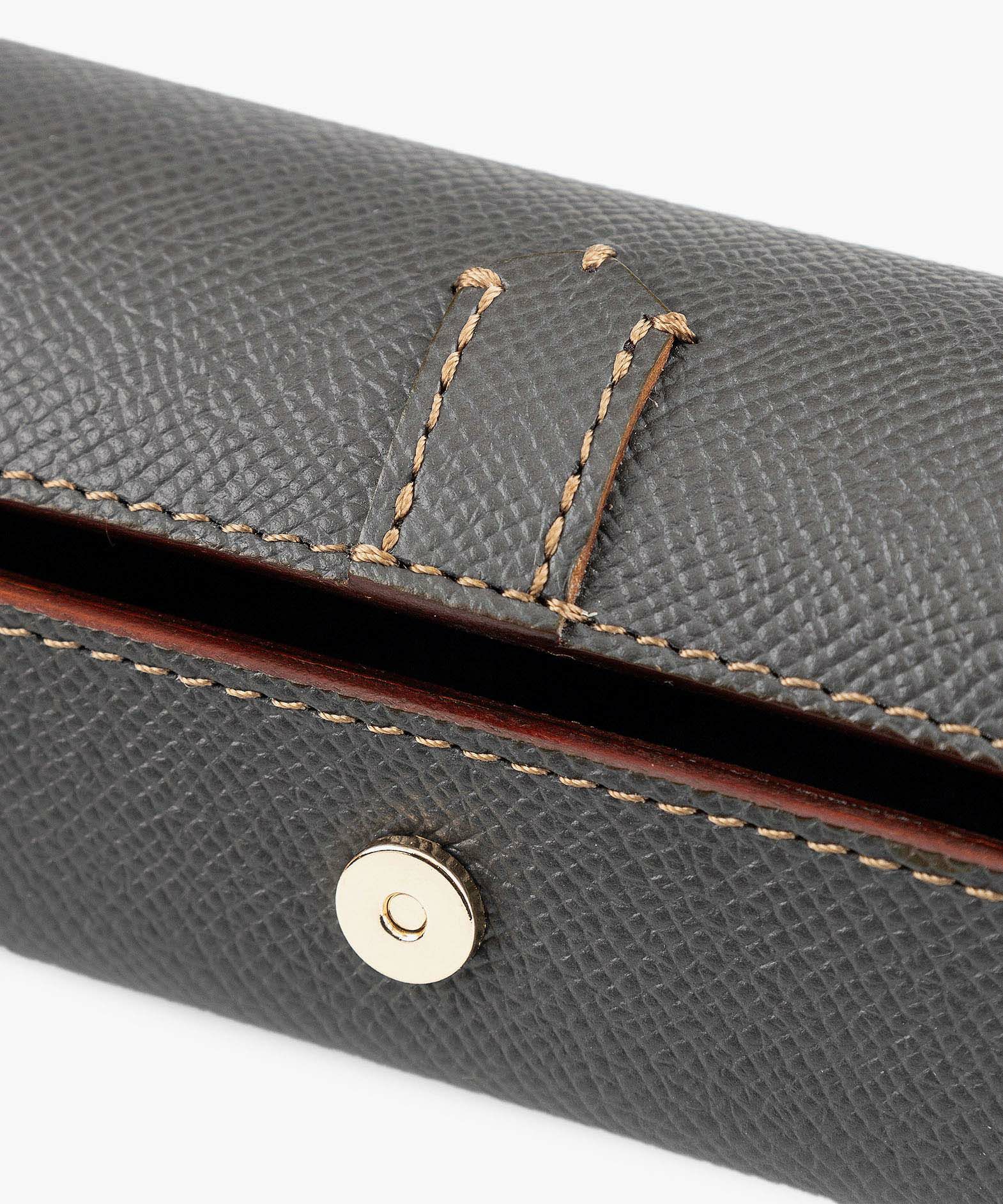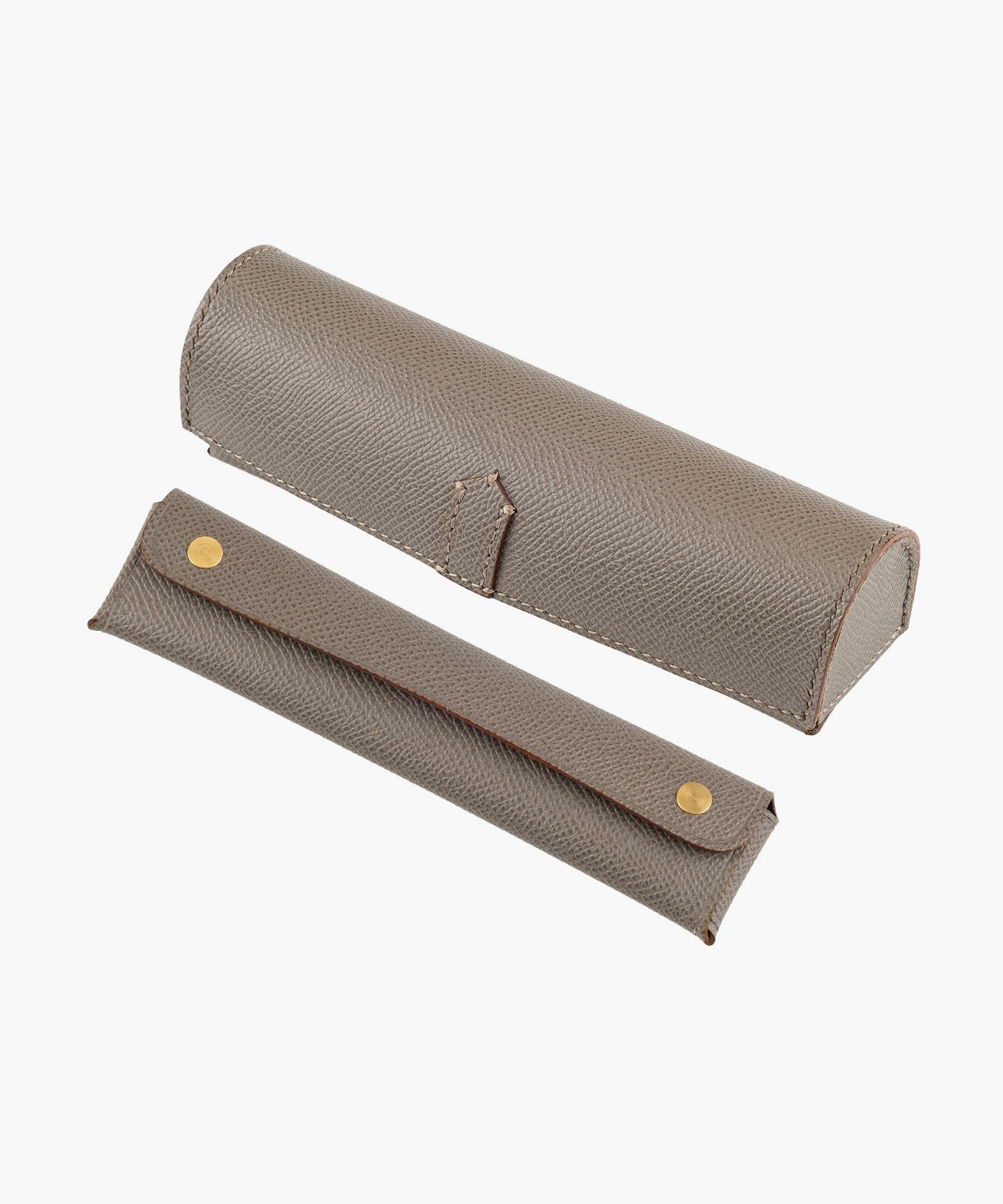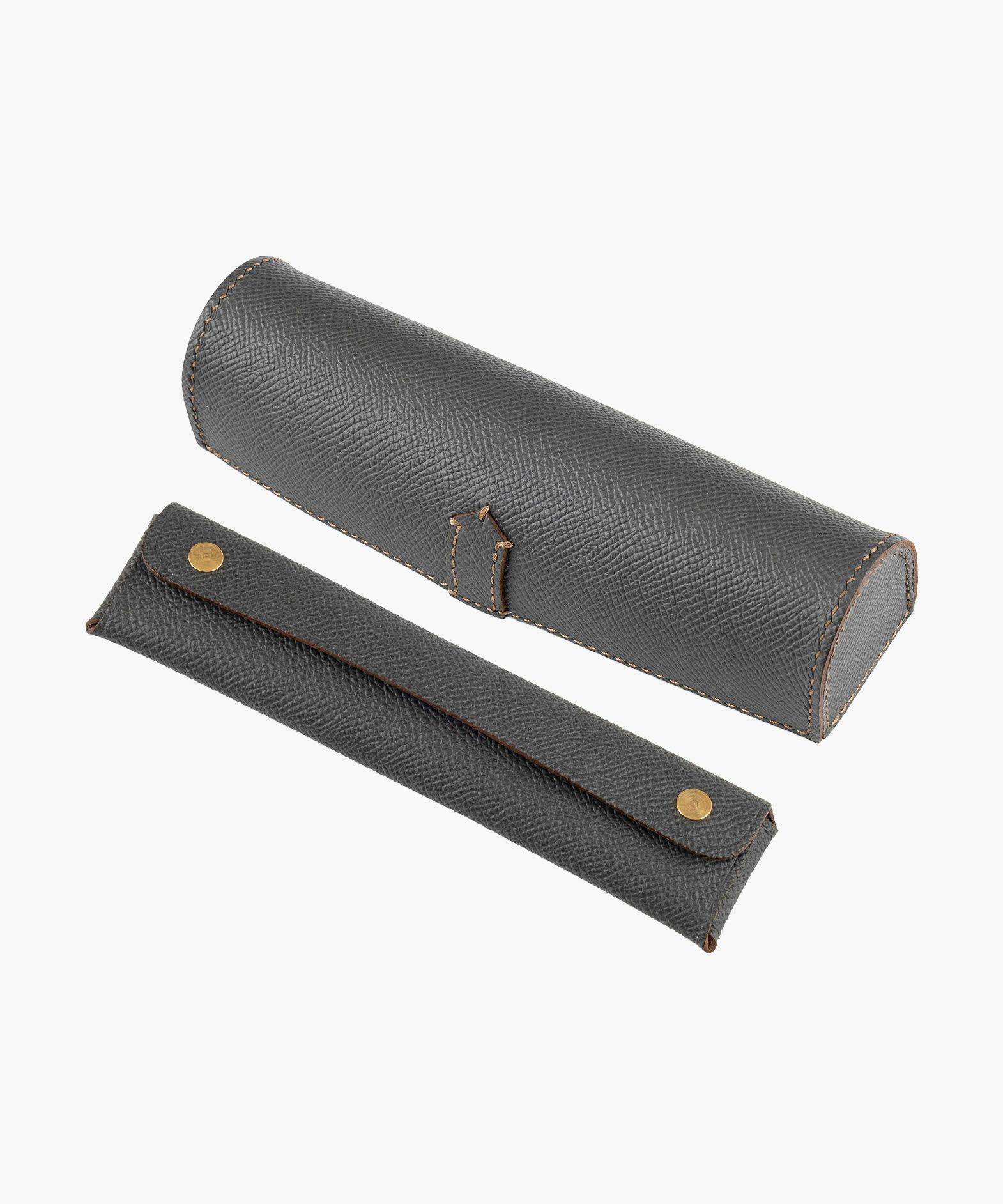 開いたまま置いておくとペントレーにもなり、外部からの衝撃を抑えるドーム状のフォルムが印象的な、ペンケース“HANGAR-M”。簡易ミニペンケースも付属し、単体として別で携えたり、中に入れてペンなどの仕分けをしたり、便利に使えるのも魅力。本体・付属品の外装には、有名老舗メゾンでも愛用されているフランス・アース社製「ダービー」を纏わせ、小キズ・汚れ・水分に強くてキレイに使い続けることも。内装には、ともに「ピッグスエード」を採用し、筆記具を保護するクッション性と手触りの良さが特長。ワンタッチで開閉できるマグネットホック式の開口部は、大きく開いて視認性と利便性を両立。1つの商品でありながら、2つのペンケースを扱え、ハイセンスな大人感をオンオフ問わず演出してくれる。