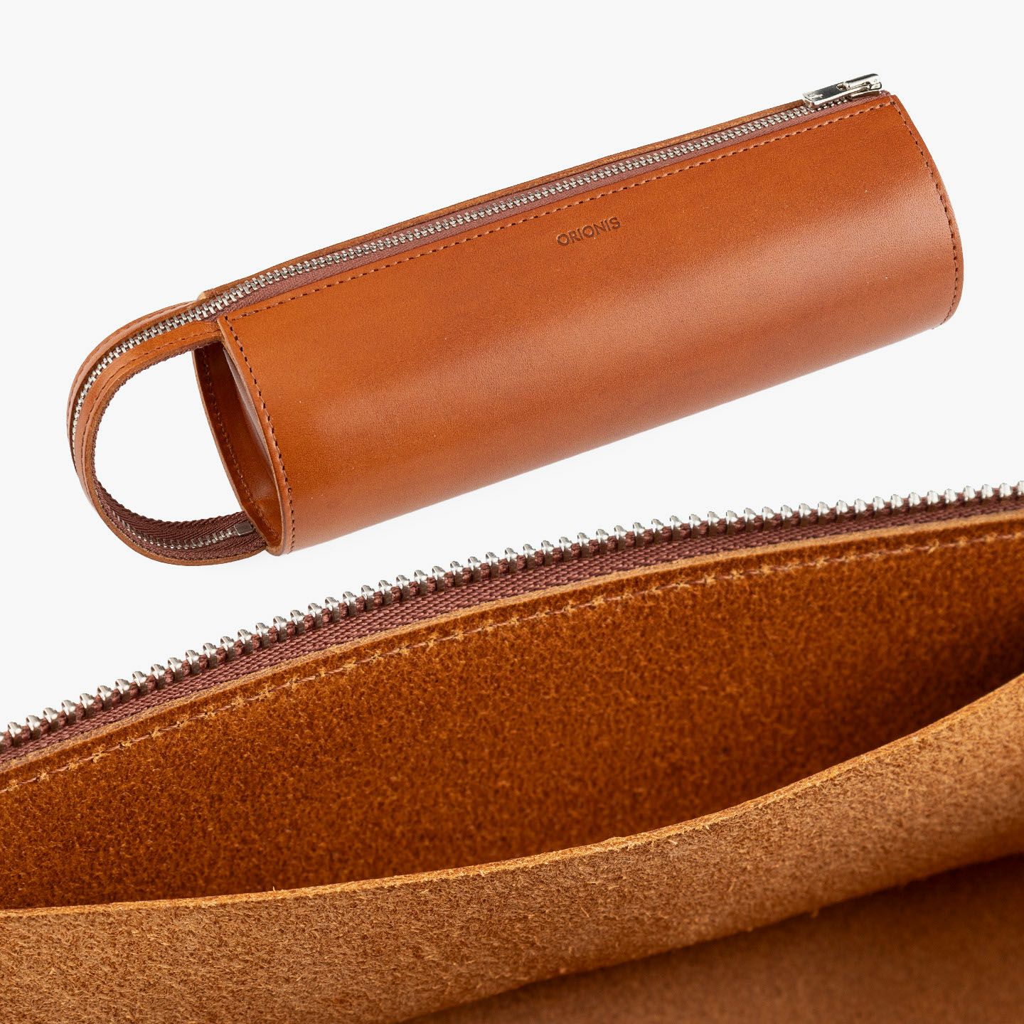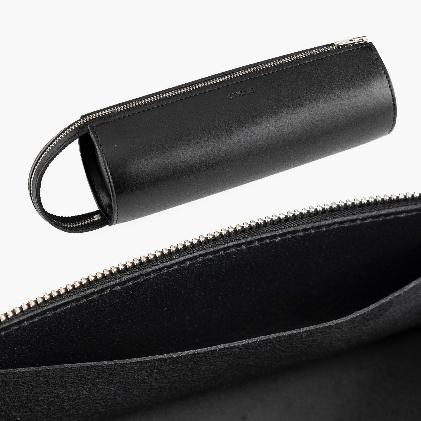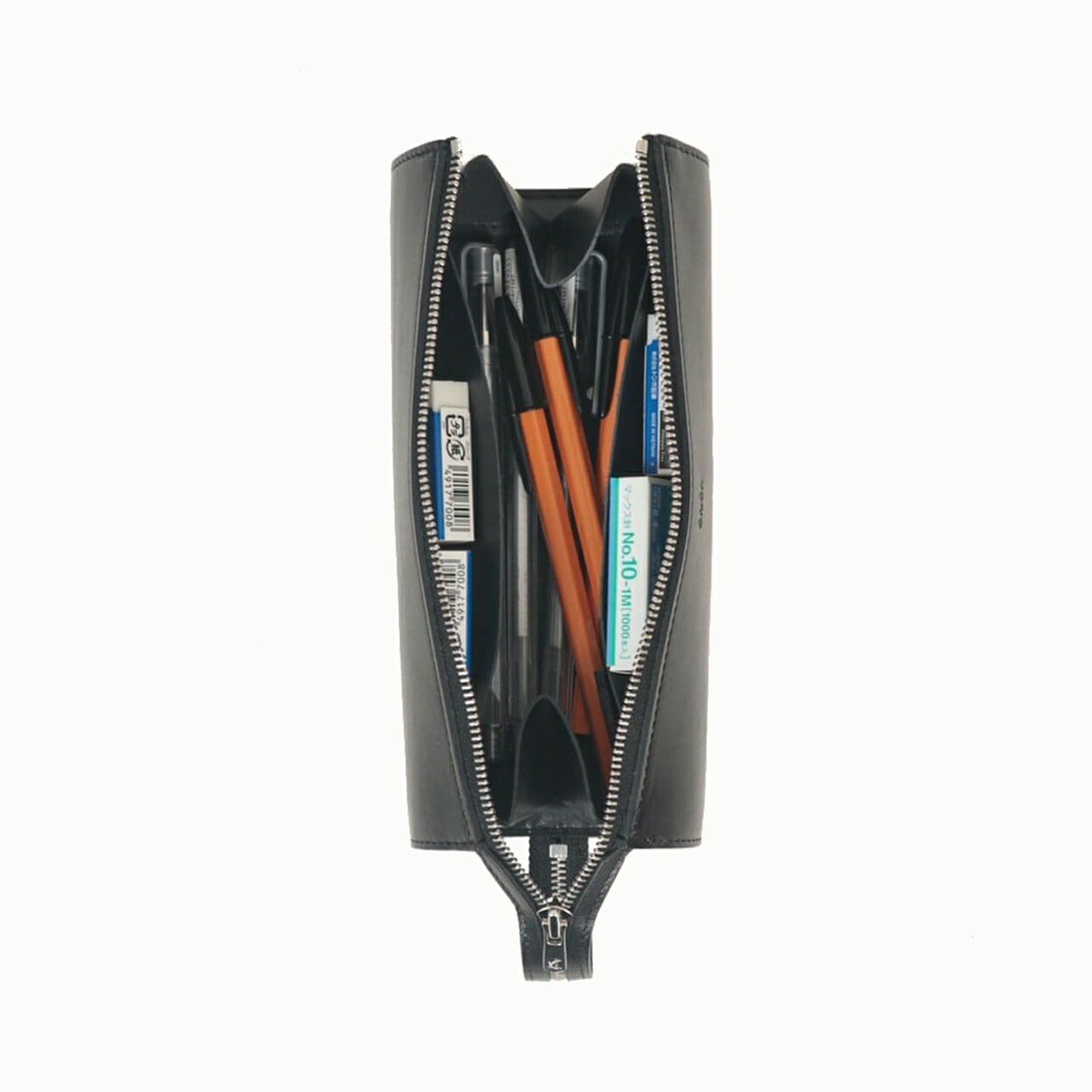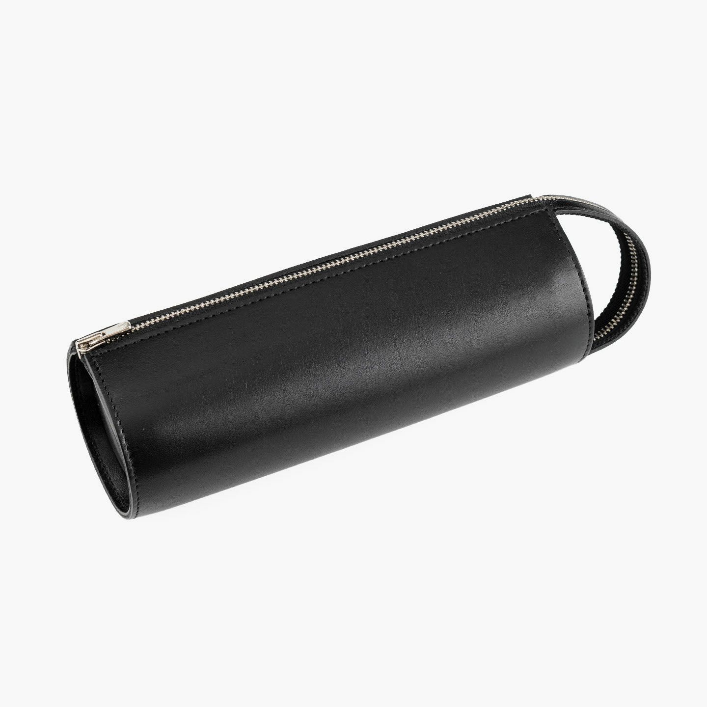 ペントレイとしても使えるように、YKKエクセラジップをハンドル部分まで大きく開いて置くことができる、直径約70mmの円柱型ペンケース。ファッションへの感度が高いイタリア・M.P.G.社による、透明感のある風合いと独特のツヤ感が美しい「イングラサットLUX」を採用し、イタリアンレザーならではの発色の良いBlack/Camelのいずれかから選べるのも魅力。ハンドルを掴んで気軽に持ち運べるとともに、内ポケットを左右サイドに2つ備え、大切なペンを保護できる配慮も。立てて置くことでデスク周りのスペースを取らず、お洒落なインテリアとしても飾れるので、大切な人へのプレゼントなどにも個性を発揮させてくれる。
