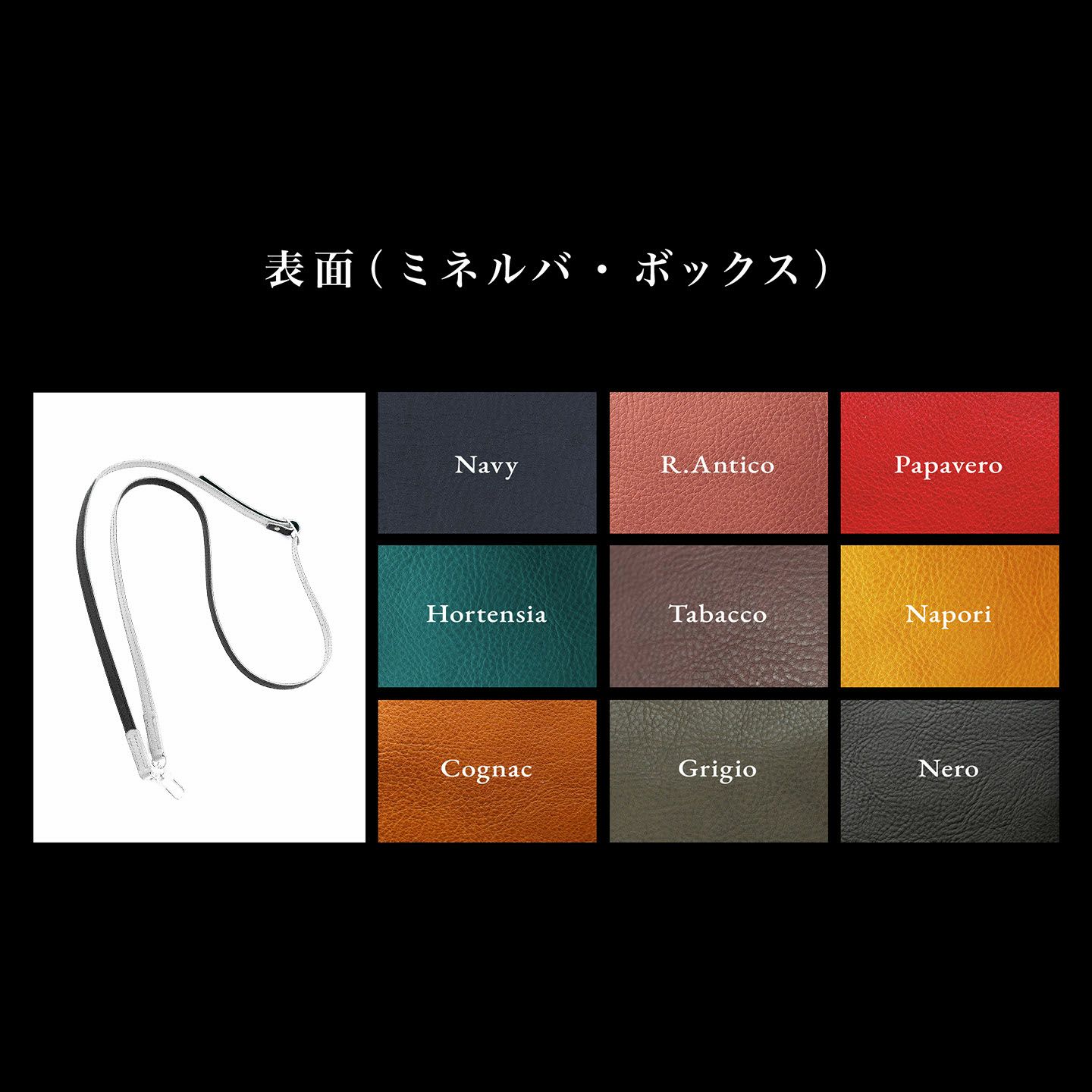 ハイレベルな技術を誇る職人たちが、少量生産にこだわって1点1点すべて手作業で製作している、アトリエ『ONES WORKER』のスマートフォンストラップ(ロング)。12mm幅の「ミネルバ・ボックス」は、柔らかく風合い豊かなシュリンクレザーで、表面と裏面・先端をそれぞれ9色からセレクトでき、ツヤっぽく色が深まっていくエイジングも魅力。長さもS/M/Lの3サイズから選べ、クラシカルなバックルで多少のサイズ調整(多少)もできるので、自分に合う程よいサイズ感に。金具には、簡単にスマートフォン・ミニ財布・カードホルダーなどに着脱でき、安心感のあるスナップフックカラビナを採用。スタイリッシュな佇まいで、普段使いに洒落感を漂わせてくれる。