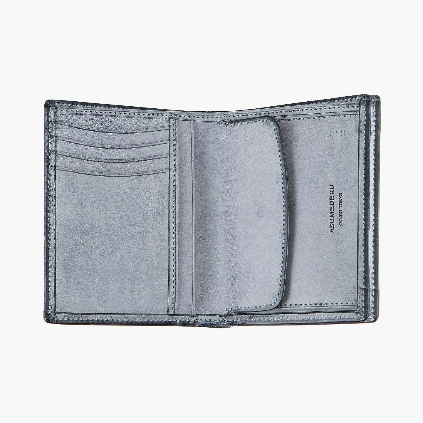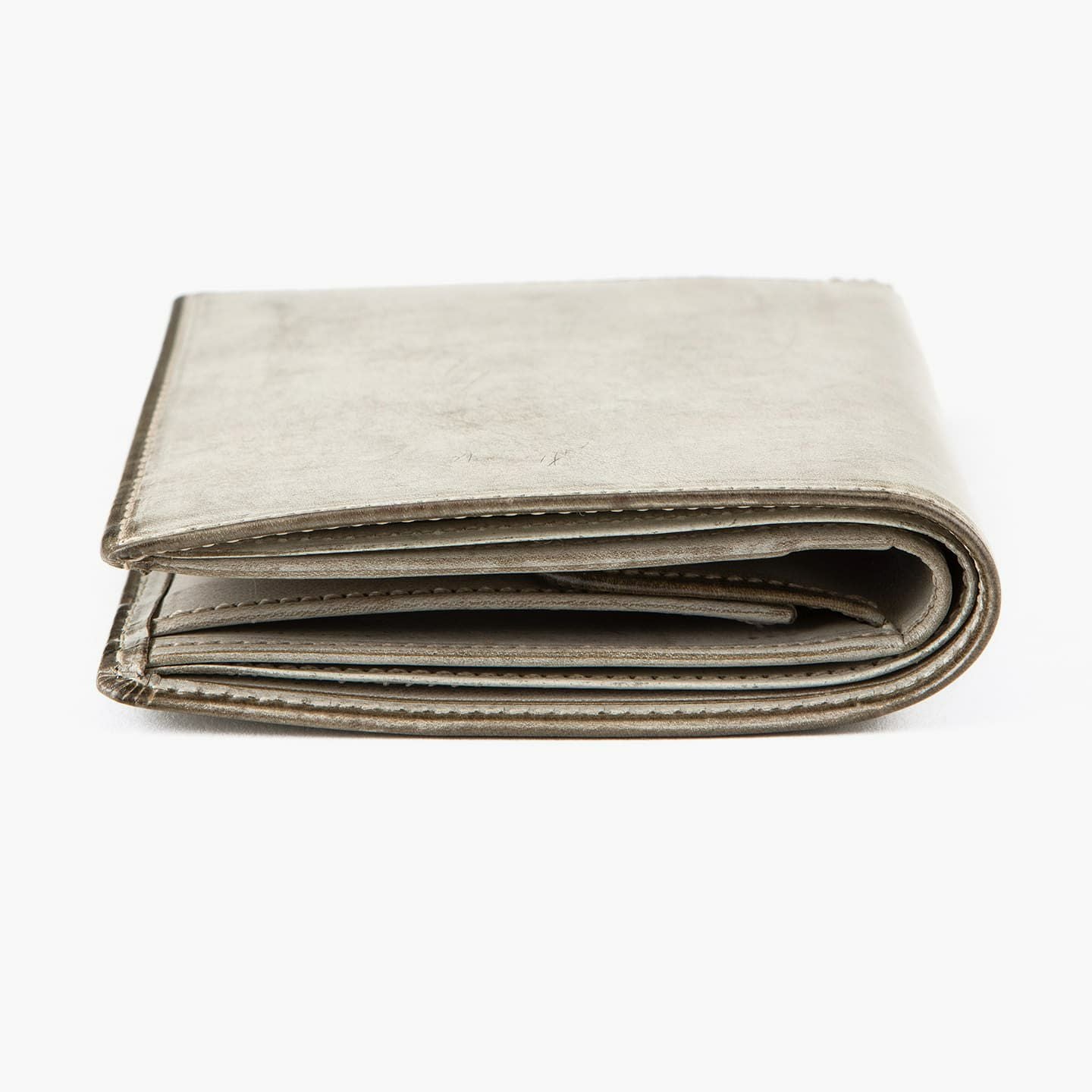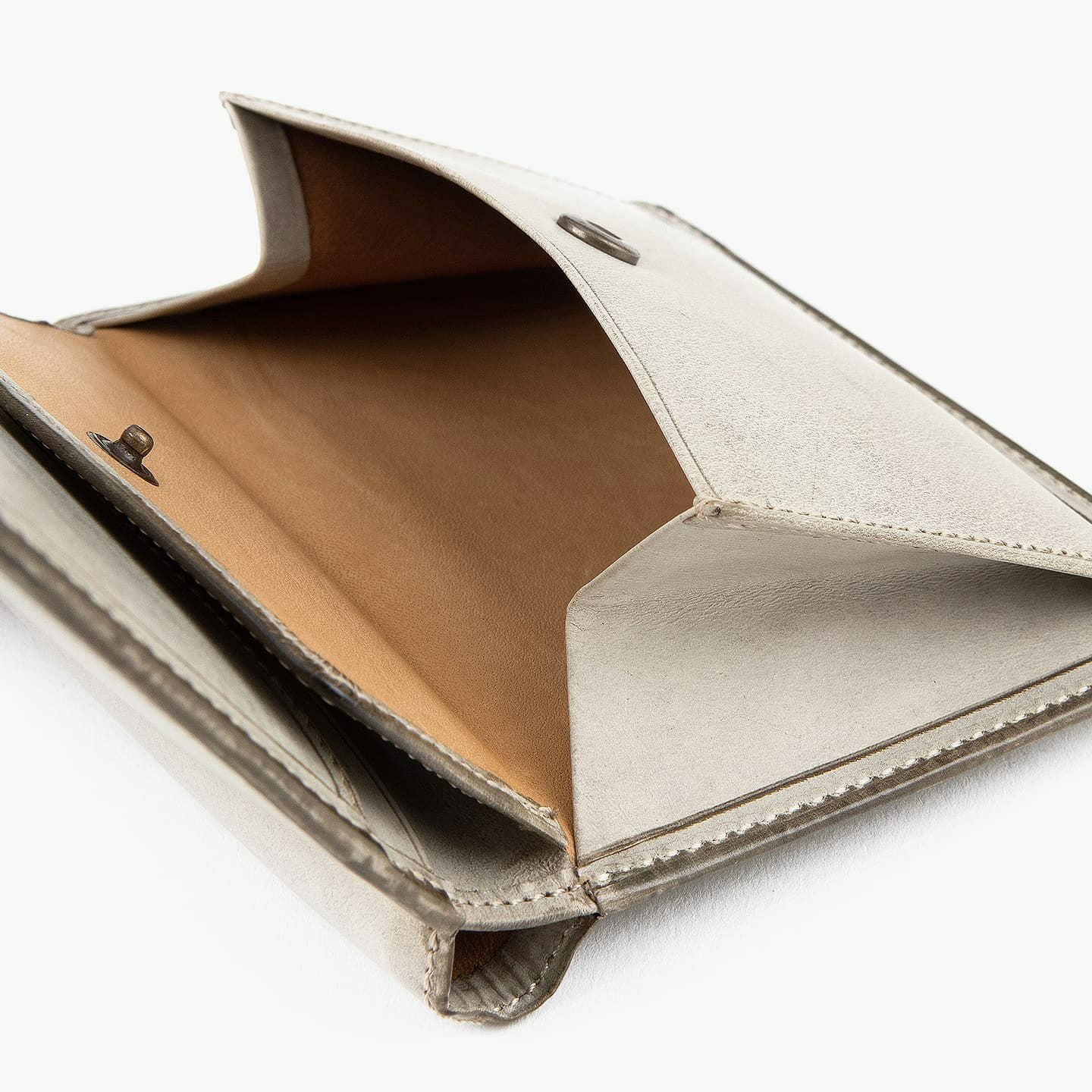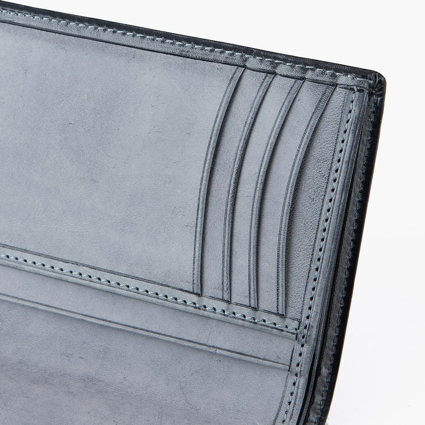 イタリア・トスカーナ地方サンタクローチェ地区のタンナー、イタルペル社製の「トゥクソン・ワックス」。繊維密度が高く丈夫なダブルショルダー(成牛の肩部)を用い、伝統的なバケッタ製法で作られたフルベジタブルタンニン鞣し牛革の表皮に、時間をかけてパラフィンワックスを垂らしながら仕上げています。バームクーヘンの作り方のように、ロールにして回しながら上からワックスを滴下していく技法で、回転させる加減により常温時に白くなるワックスが白い濃淡が生まれて、個性的な表情を創出。使用前の淡白い風合いと、使い込んで革色の浮き出てきた風合いが、劇的に変化する個性的な素材で、ワックスが革の内部に溶け込んで、革だけでは表現できない独特なツヤが魅力です。また、ダブルショルダーは首に近い部位でもあるので、“トラ目”と呼ばれる原皮のシワも味として残ることがあり、アイテムとして新たな楽しみ方も見つけられます。