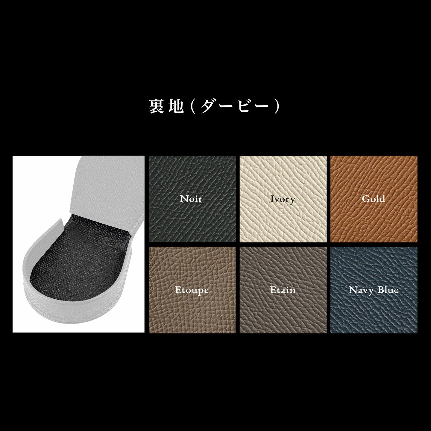 オーダーメイドで培った独自の技術を存分に駆使して、シェイプの効いた本格的な美しい馬蹄型のデザインを追求したコインケース。幸運をもたらすお守りとして親しまれてきた造形を、曲線と直線をバランス良く組み合わせることで、甘くなり過ぎないエレガントなシルエットへと昇華。マチと底部を直角に縫い合わせる特殊な駒合わせは、熟練の職人技による高度な総手縫いが求められるため、世界的に希少なアイテムながらも、本体とフタとの密閉性を最適化させ、留め具を一切使わずに摩擦のみで留める構造を実現。マットな型押しの表情が美しく、軽くて小キズ・水分に強い「ダービー」が、ちょっとした近所への買い物や、現金しか使えないお店などで、小粋なこなれ感をさらに引き立ててくれる。