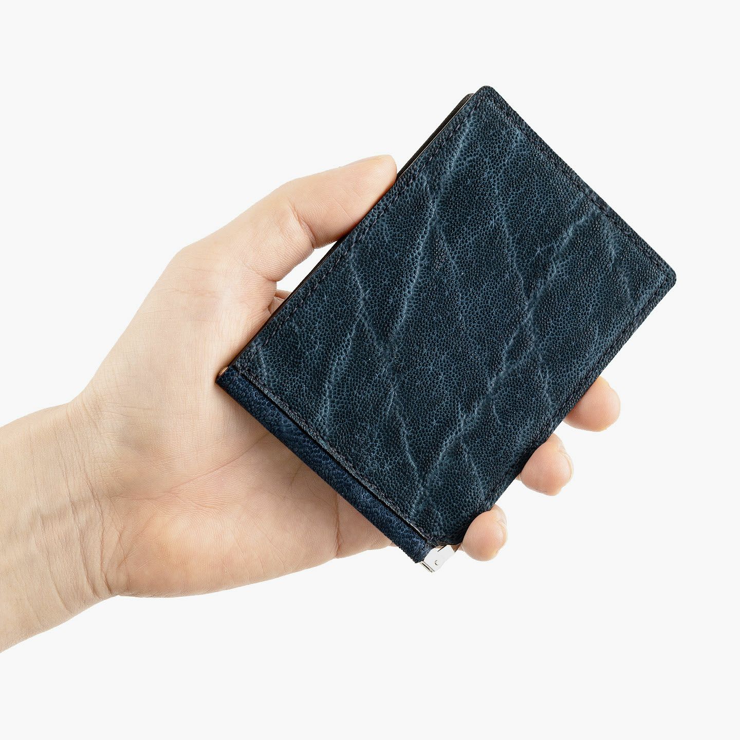 すべてにおいて独自の価値基準を設けることで、希少価値の高い最高級の革を用いるなど、真の絶対価値を追求している、エキゾチックレザー専業ブランド『LE’SAC』のマネークリップ。紙幣とカード類のみを収納するスリムなフォルムや、手軽に使いこなせるスマートなデザインと相反するように、希少で特別なゾウ革の外装「オイルエレファント」が、自然なシワ・凹凸模様による独特の存在感を放つとともに、しっとり感とザラザラ感による味わいのある質感も魅力。4色ラインナップした外装との相性も良いシルバーの金具と、落ち着いたマットな風合いで大人感のあるダークブラウンの牛革による内装が、大人の小粋さを引き立ててくれる。