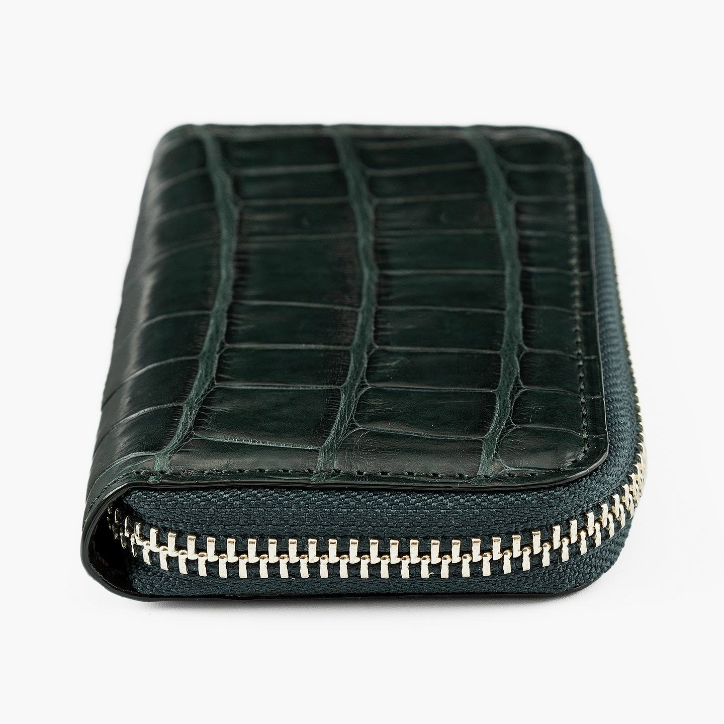 原価・サイズ・等級・鞣し・染色・デザイン・仕立てのすべてにおいて、独自の価値基準を設けている、エキゾチックレザー専業ブランド『LE’SAC』のミニラウンドジップ財布。高級皮革のワニ革「アリゲーター」を贅沢に纏った外装による、美しく連なった斑模様と人気カラーのGreen・Navyとのバランスが、使うほどに光沢感を漂わせながら味わい深くなっていき、唯一無二の存在感へと昇華。全体のアクセントとして引き立てているシルバーのファスナー&オリジナル引き手に、同じ「アリゲーター」による剣先の引き手をあしらった洒落感と、内装の牛革による落ち着いた色合いと実用的な使用感が、上質な大人感を高めてくれる。