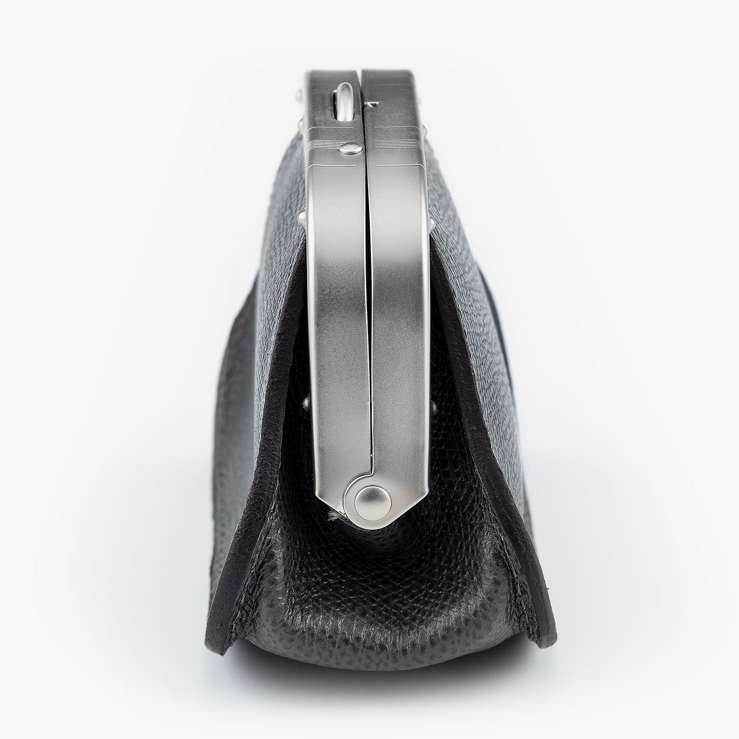 未来のスタンダードとして、独自のデザイン性を取り入れながら日常に彩りを与えていく、ユニークなファクトリーブランド『SOPO』による、がま口ミニウォレット。最高級カーフレザー「ドーフィン」の上質感を、コンパクトな愛らしいフォルムで印象的に引き立てながら、ダイキャスト成型のフレームによる個性的な形状と、ツヤ消しのシルバーによる洗練されたセミマット感で、現代的な“がま口”へとアップデート。上部のボタンで開く内部には、可動する仕切りによりマルチポケット2つを備え、小銭と紙幣(四つ折り)を分けられるなどの実用性も感じさせてくれる。