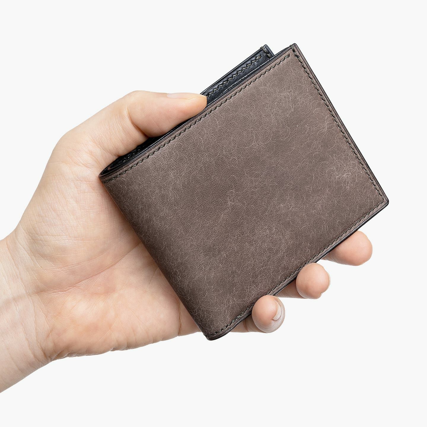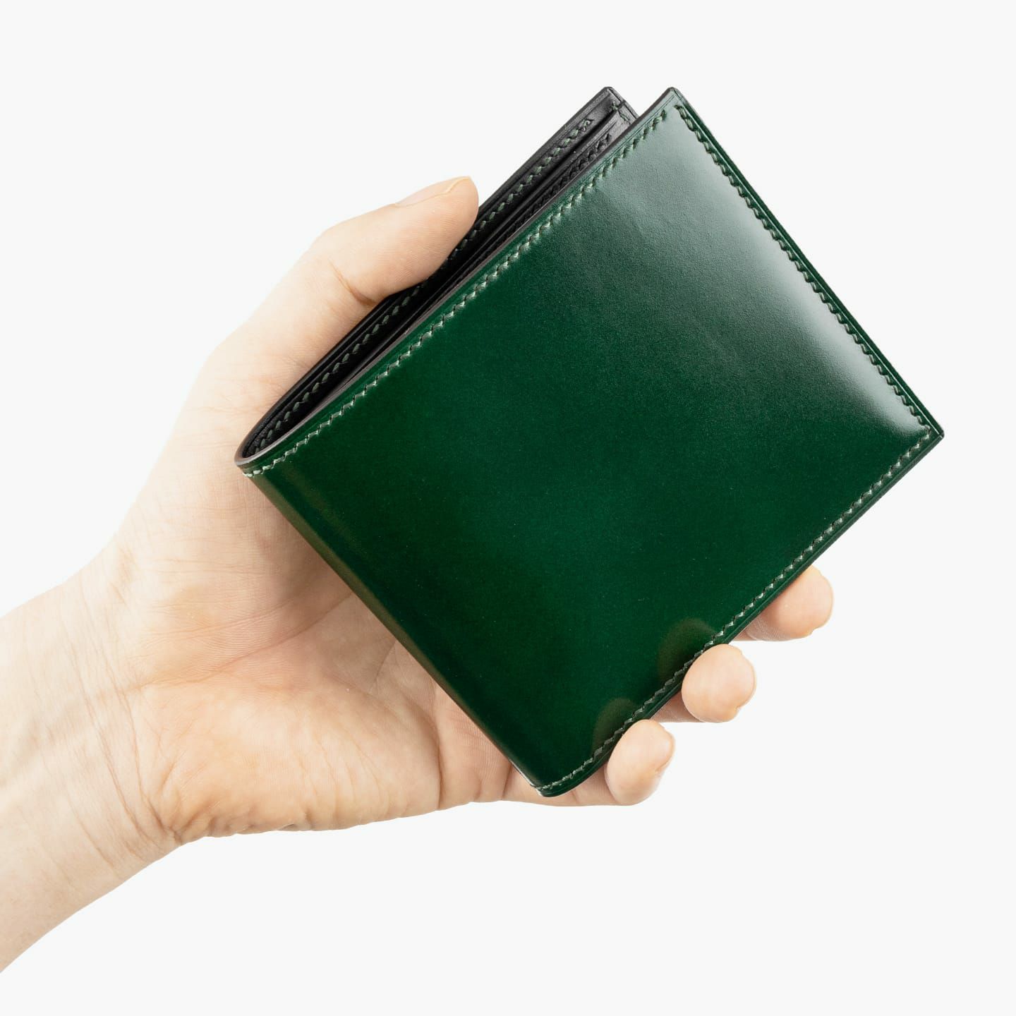 アニリン染めコードバン & ブライドル 薄型二つ折り財布(小銭入れ付き)
